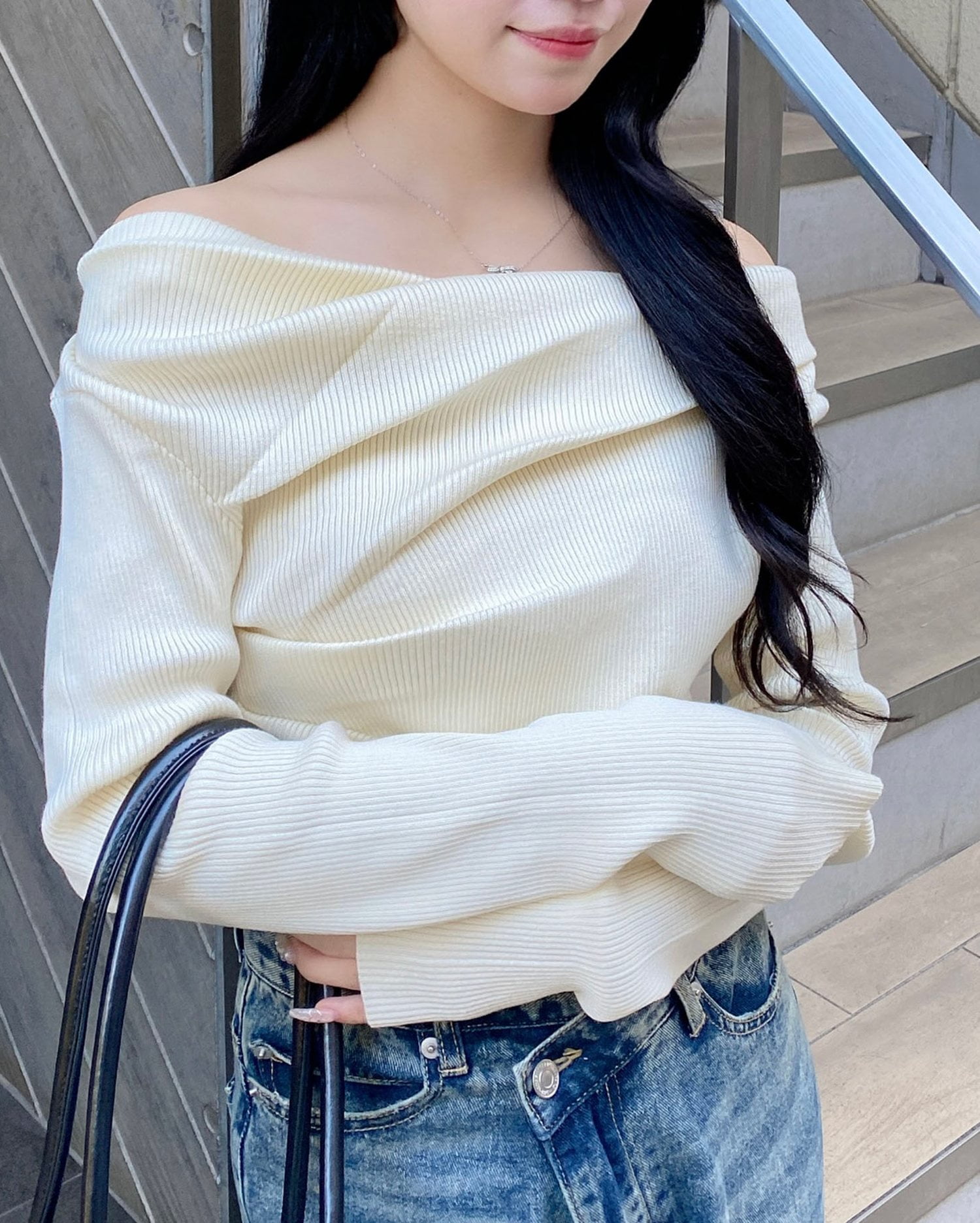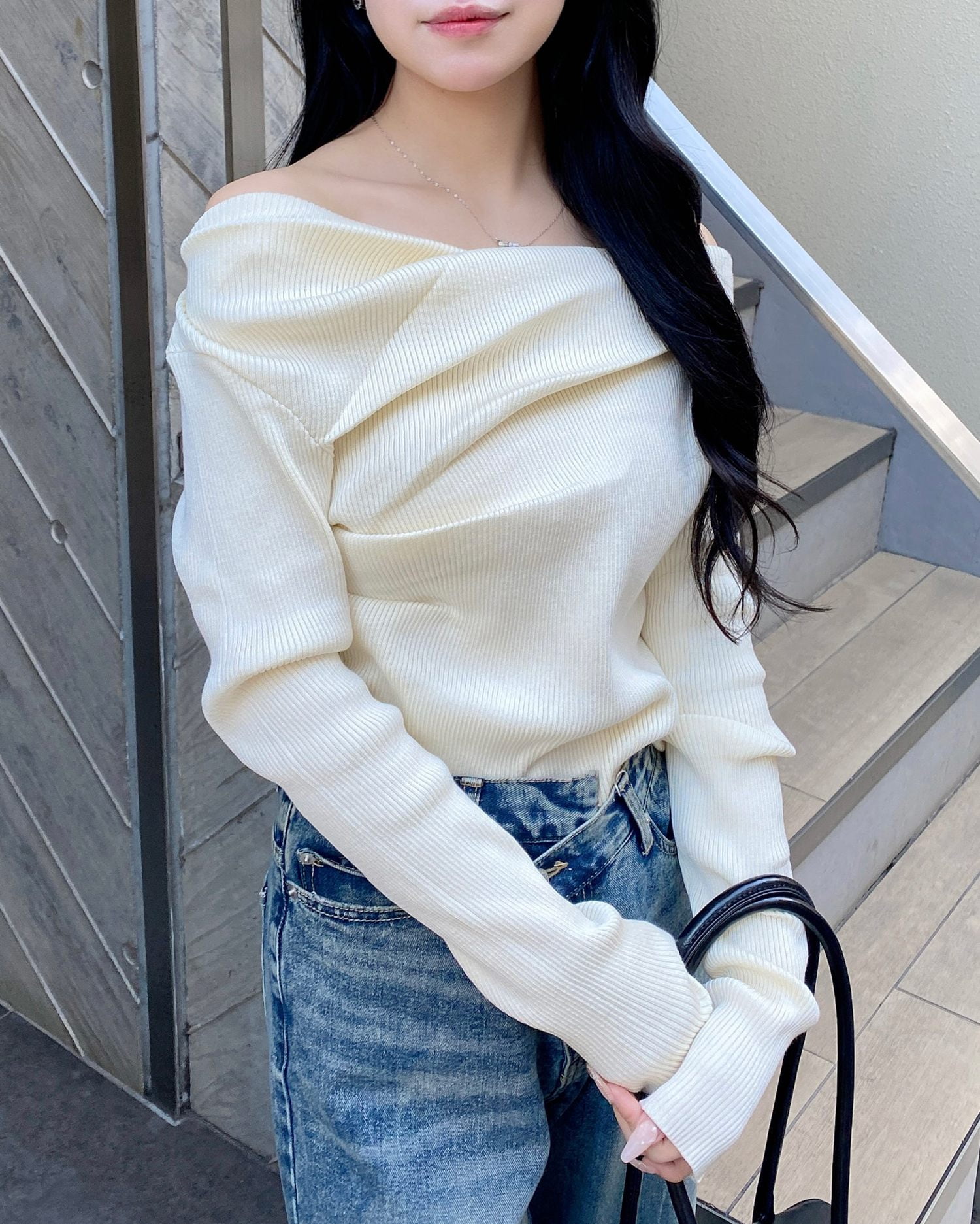 【シンプルながら大人のムード漂うインパクトあるデザインニット】