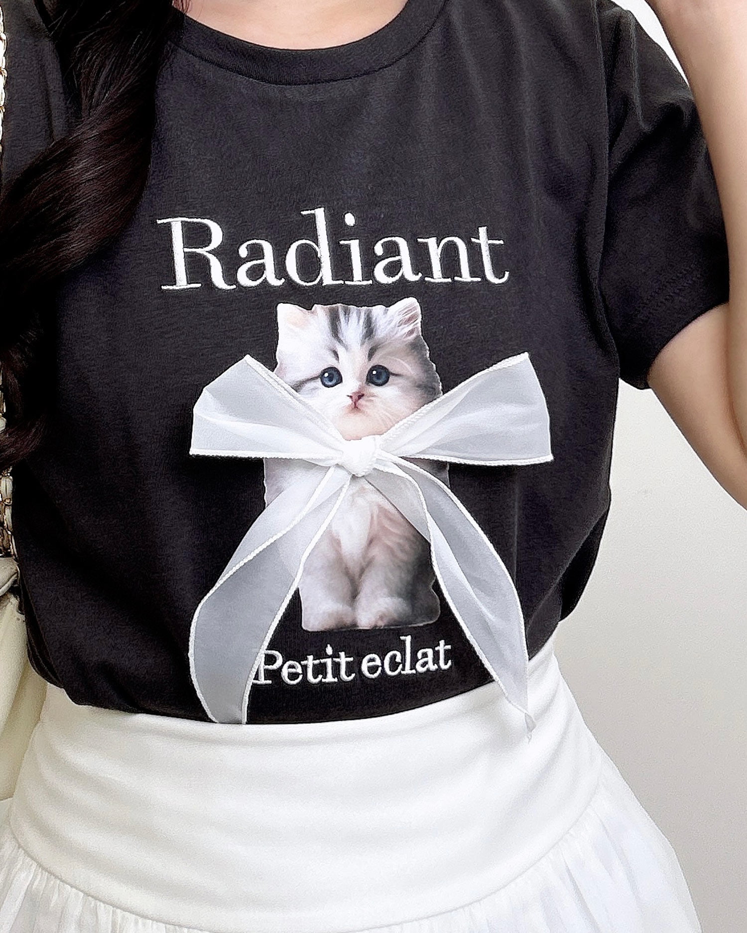 キュートなネコプリントに立体リボンがインパクト抜群。
