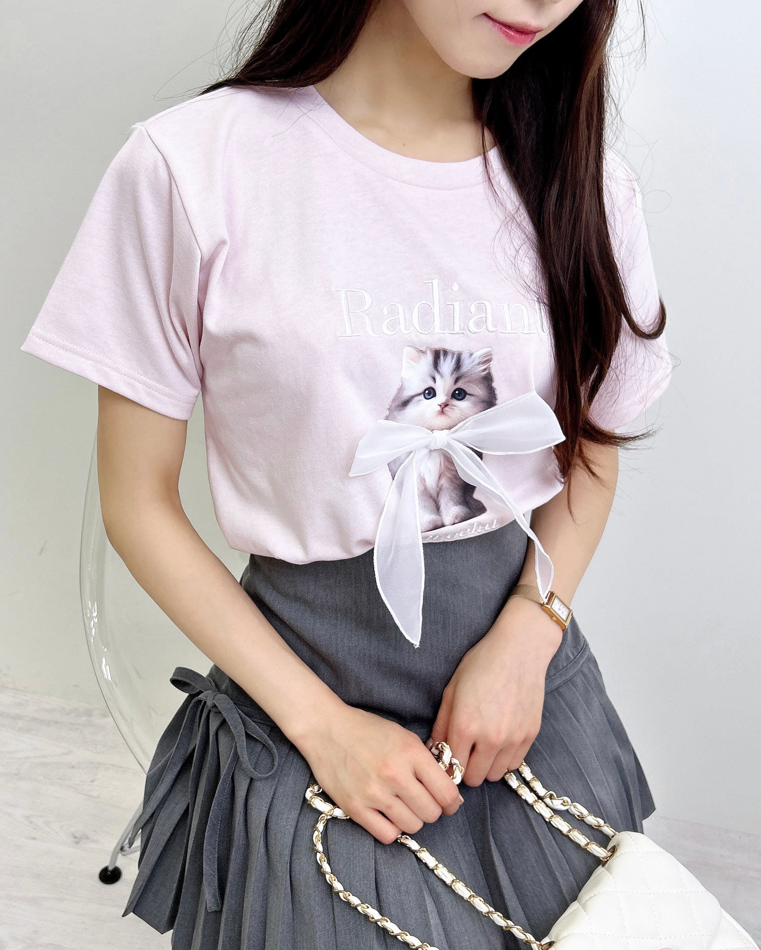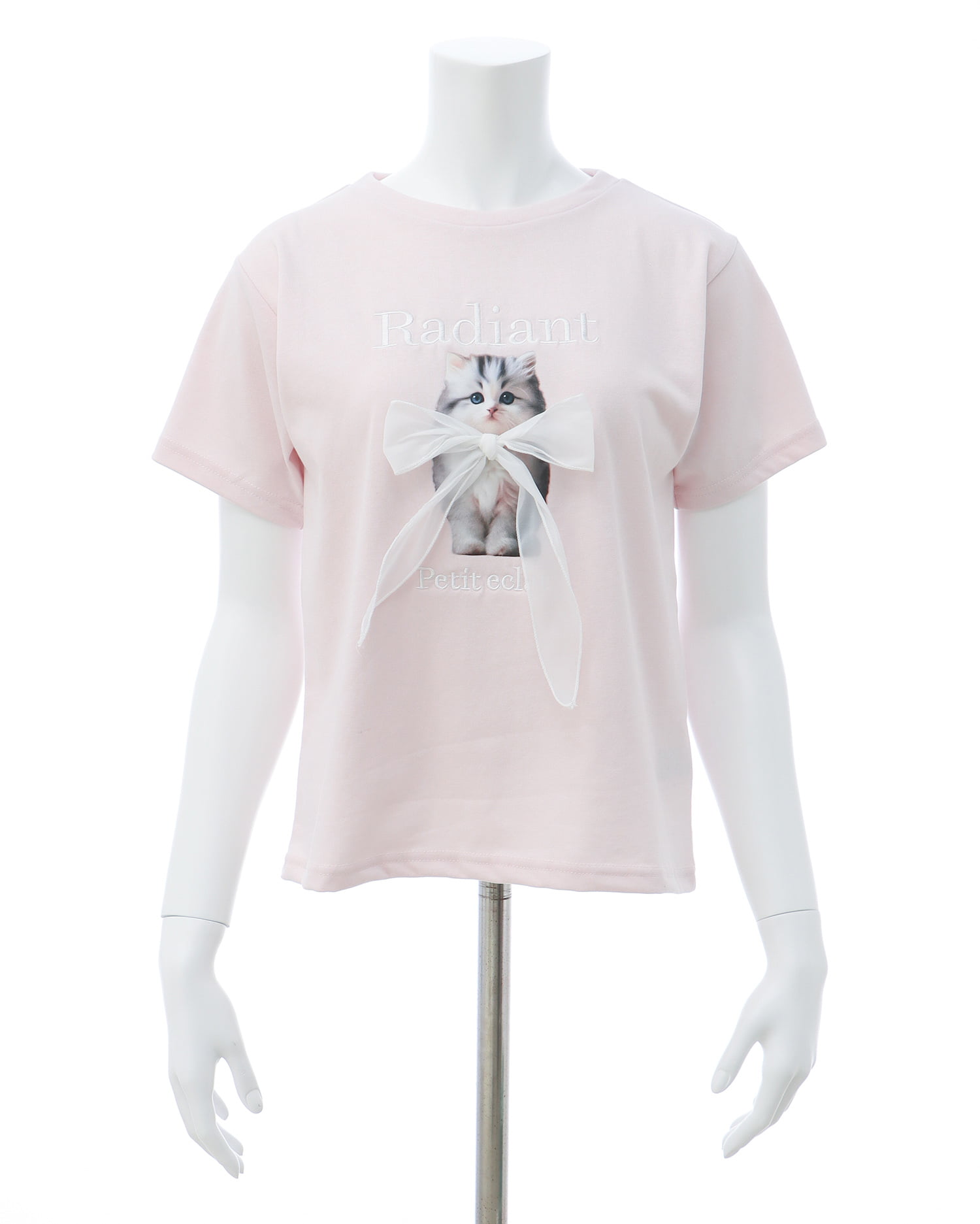 • INGNI(イング) 装飾リボン付ねこTシャツ ライトピンク