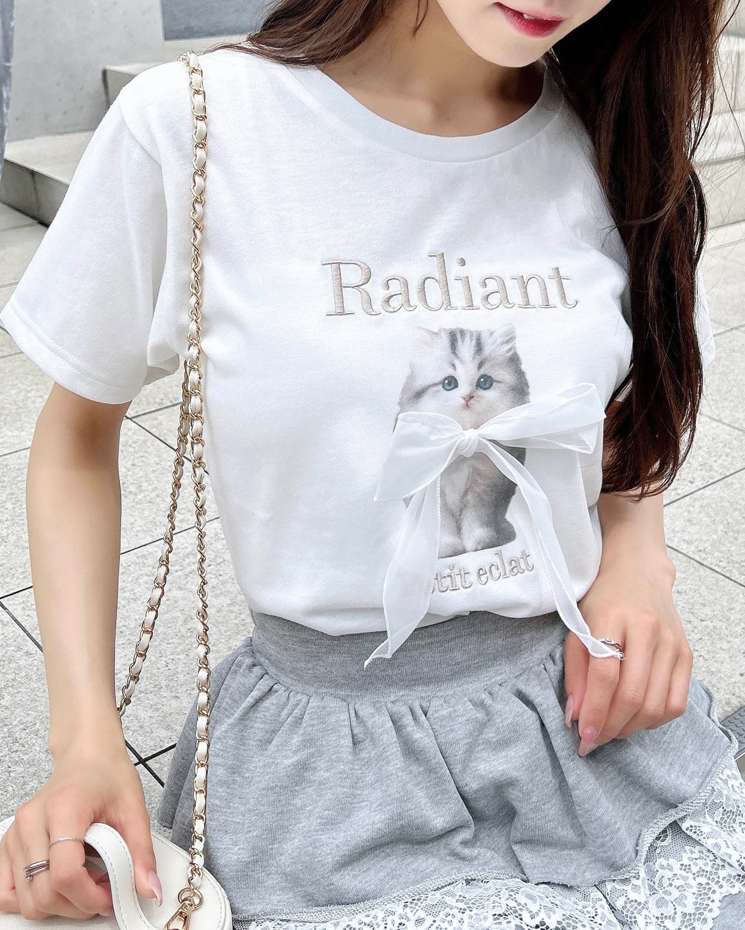 • INGNI(イング) 装飾リボン付ねこTシャツ オフホワイト