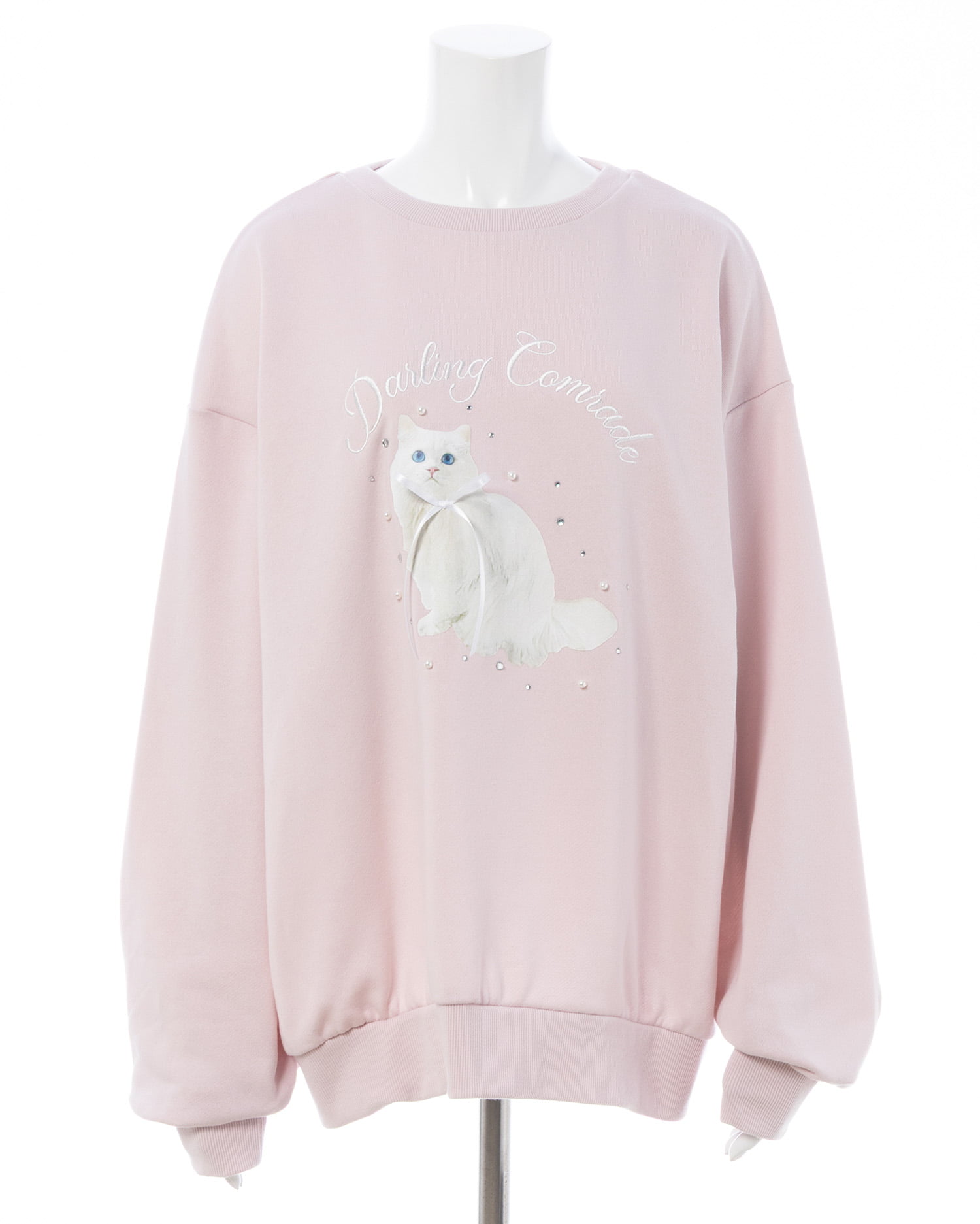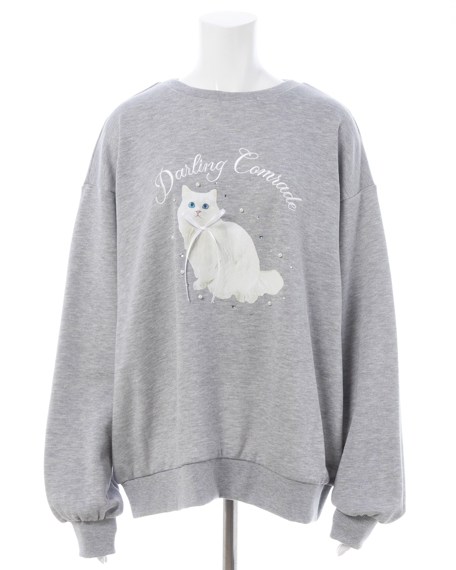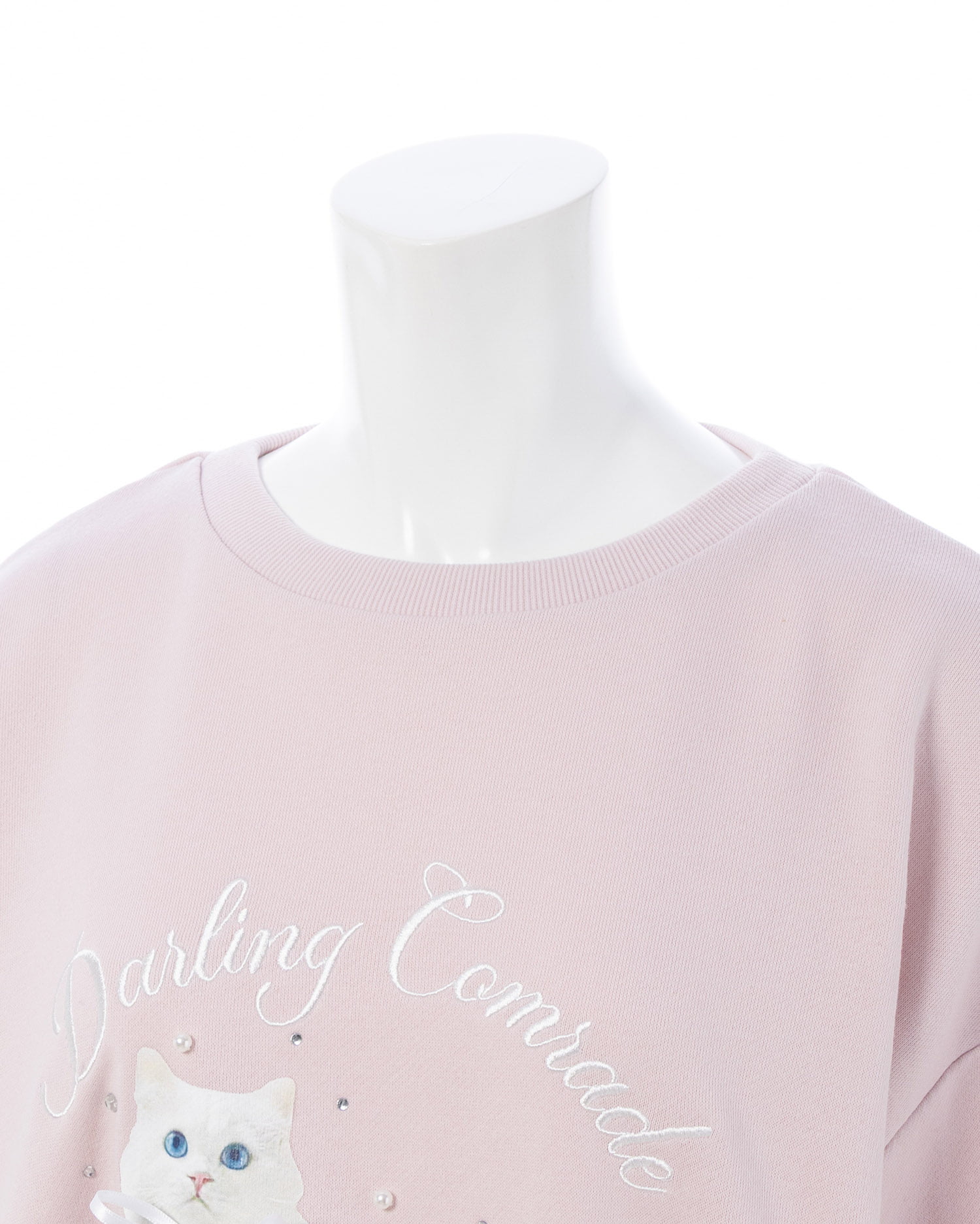 【ねこのプリントがかわいすぎる♡リボン付きトップス】
