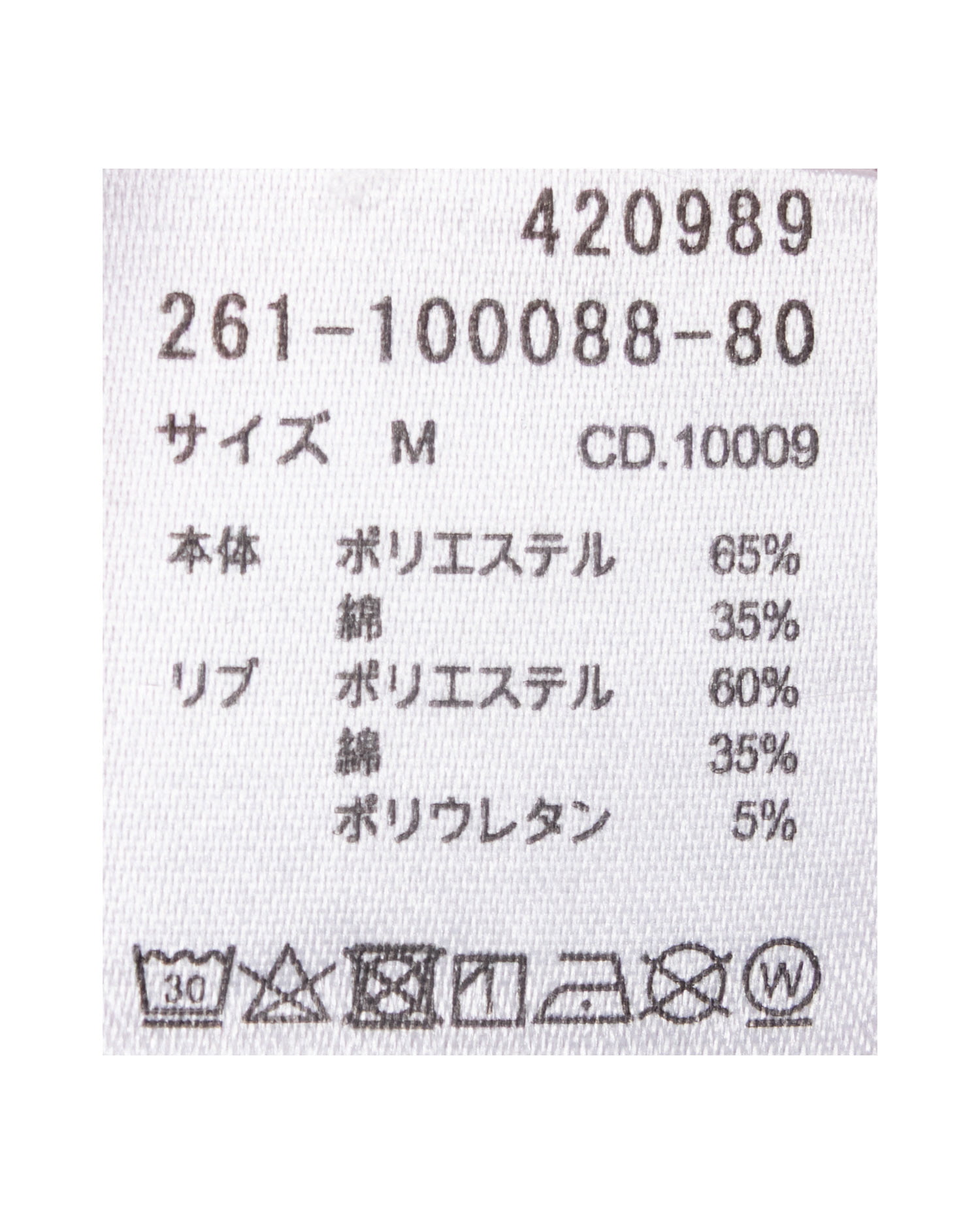 原産国 中国 本体 ポリエステル65% 本体 綿35% リブ ポリエステル60% リブ 綿35% リブ ポリウレタン5%