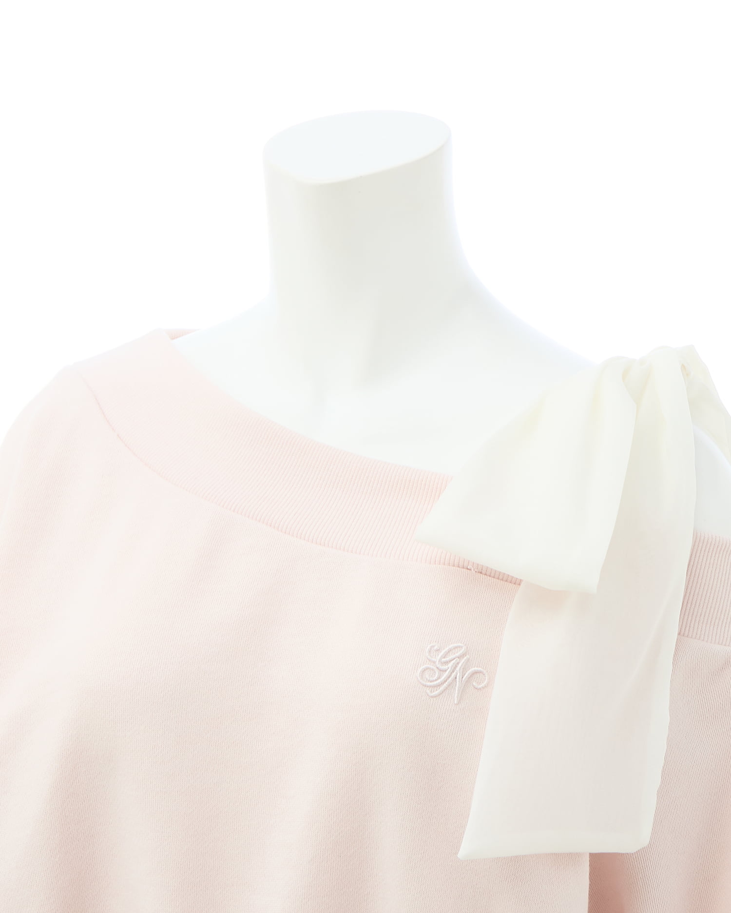 肩紐部分は大きめのリボンを添えたガーリーなデザインで、
