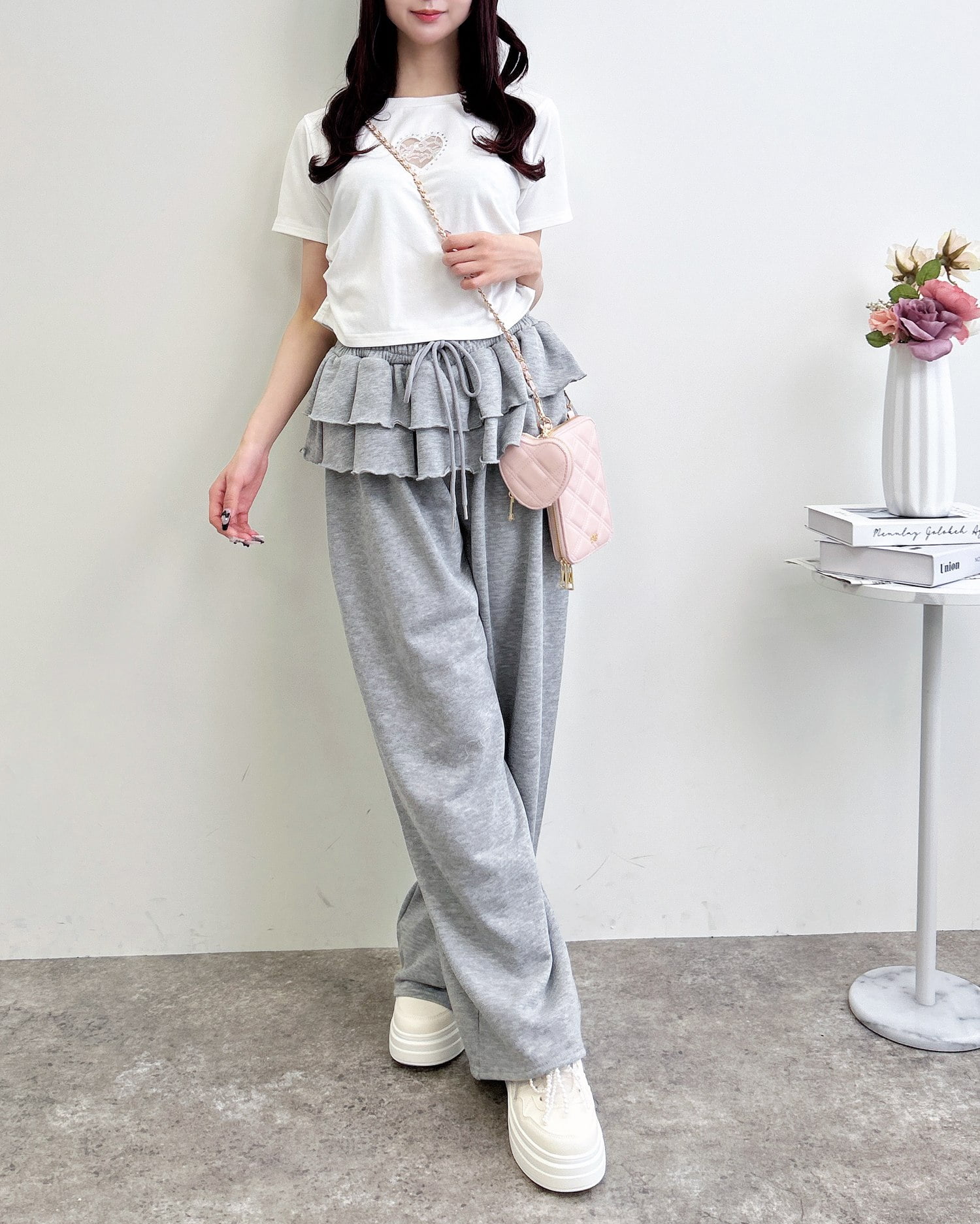 フロントにあしらったハートのレースがアクセントのアイテム。