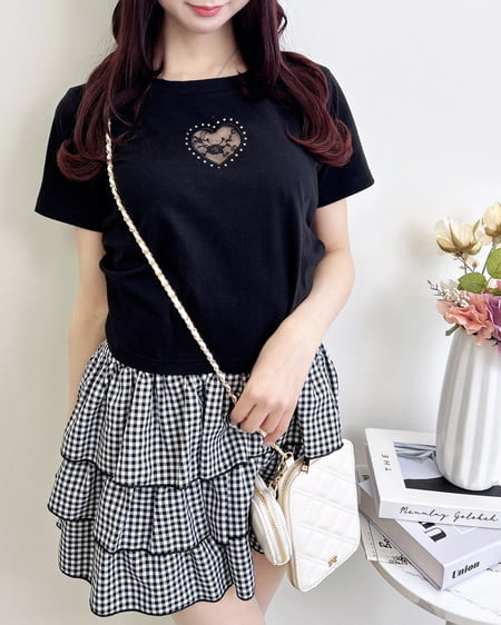 【フロントのハート型レースがかわいすぎる♡サイドギャザーTシャツ】