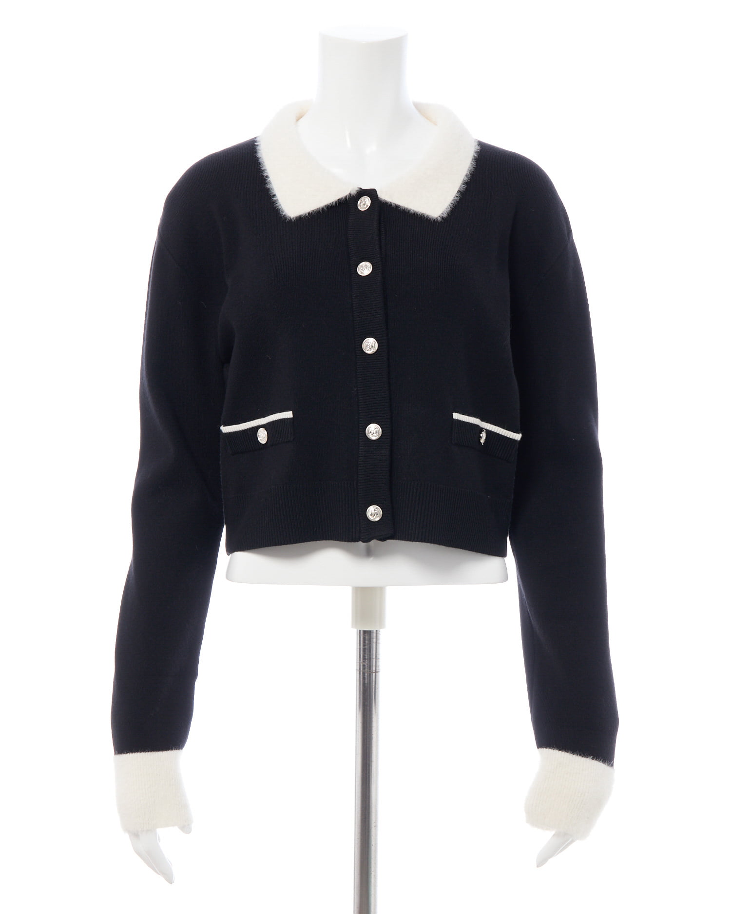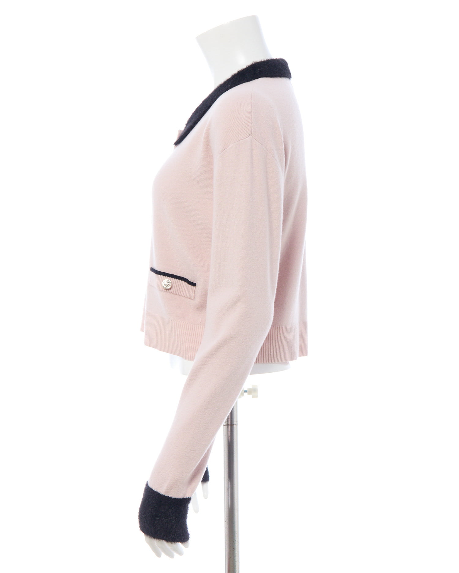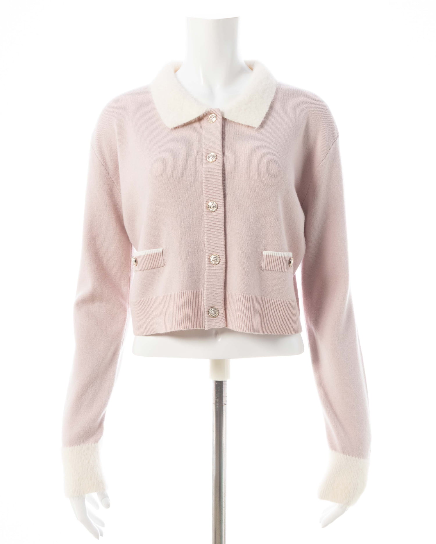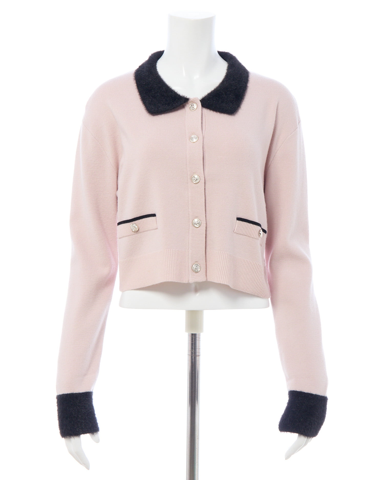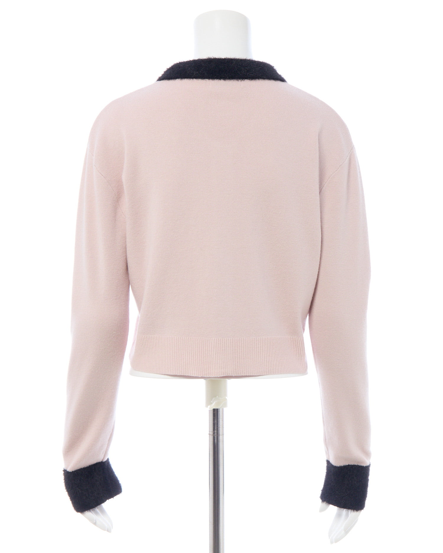 トレンドの配色襟カーディガンが、ふわふわのフェザー素材のニットで登場!