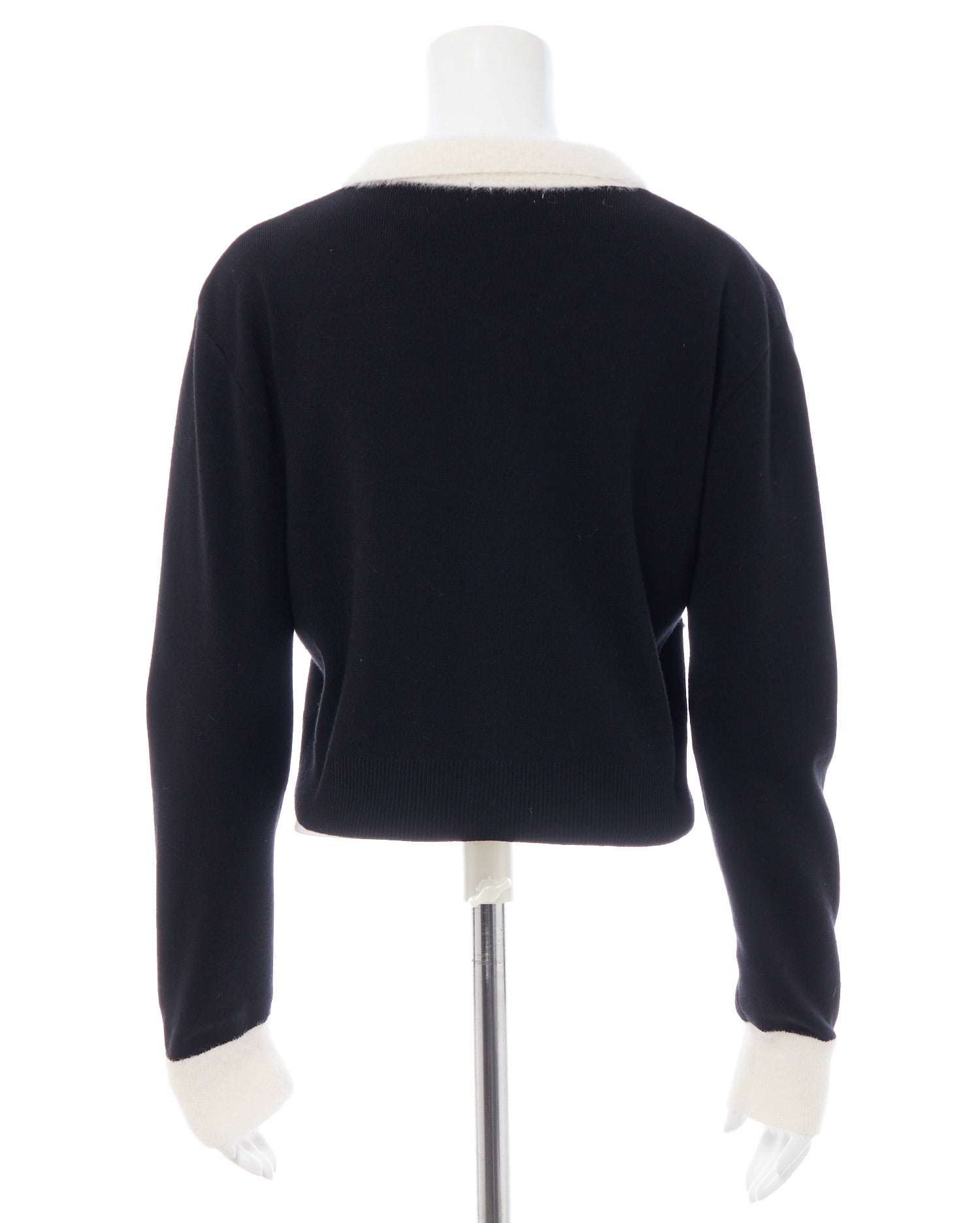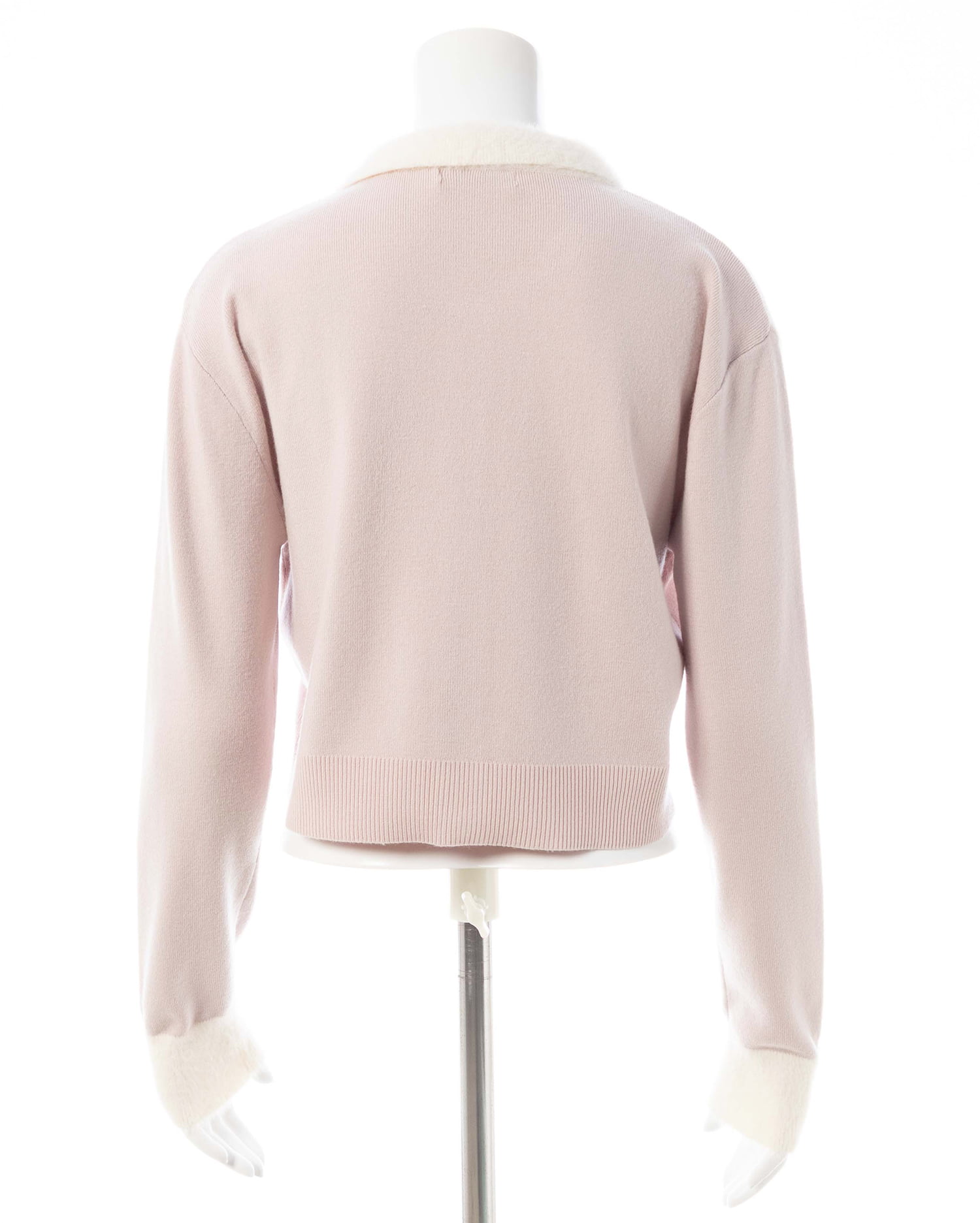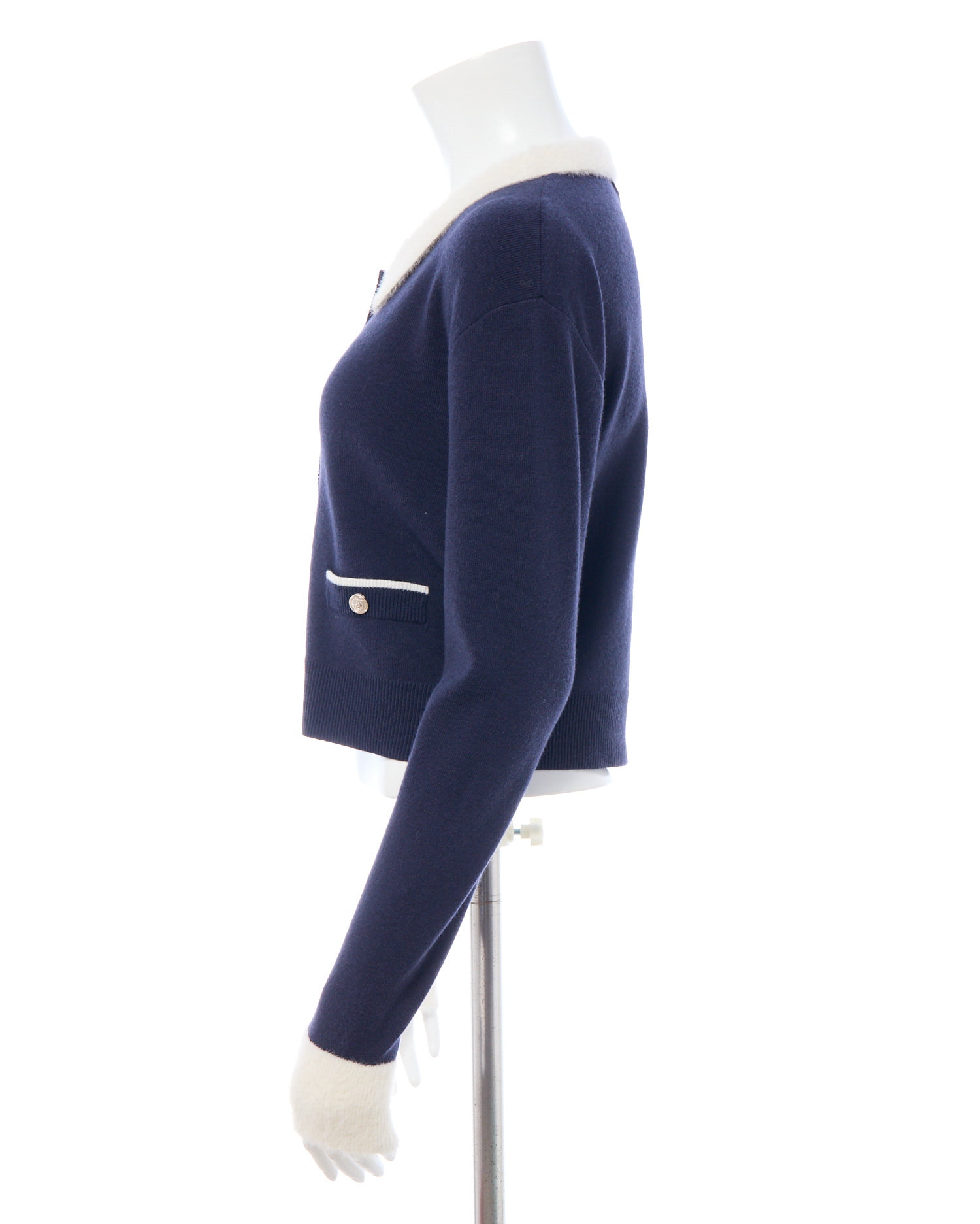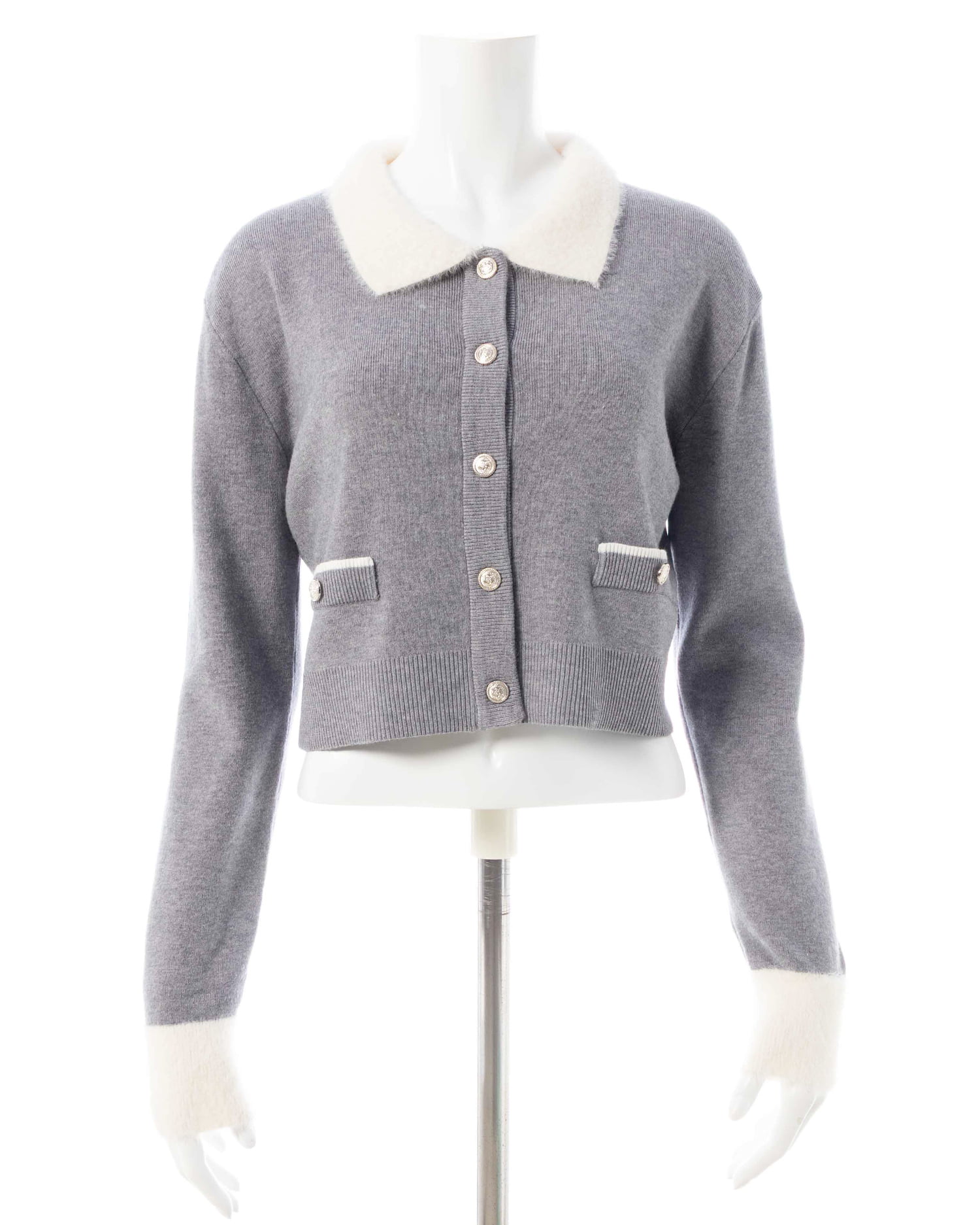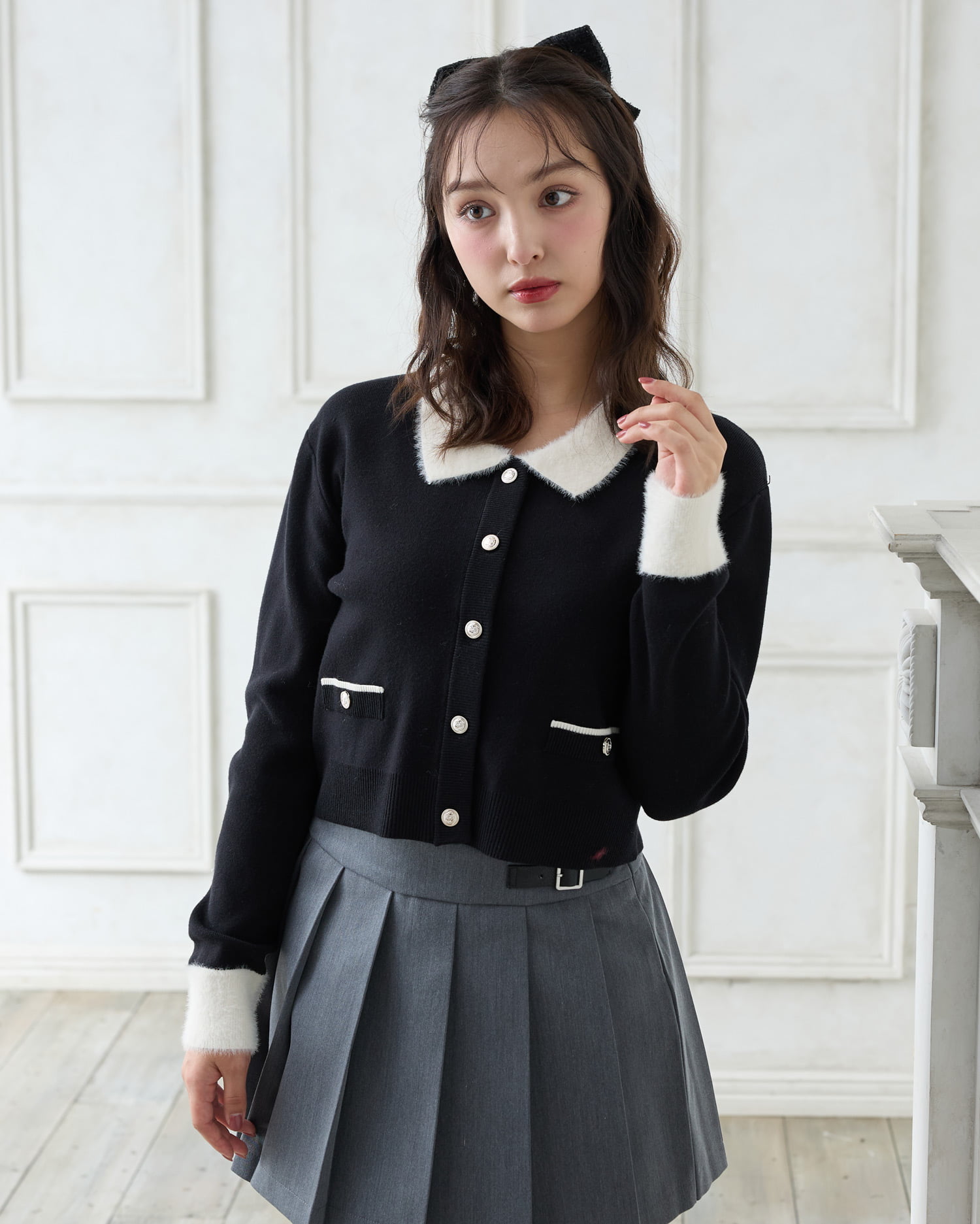 トレンドの配色襟カーディガンが、ふわふわのフェザー素材のニットで登場!