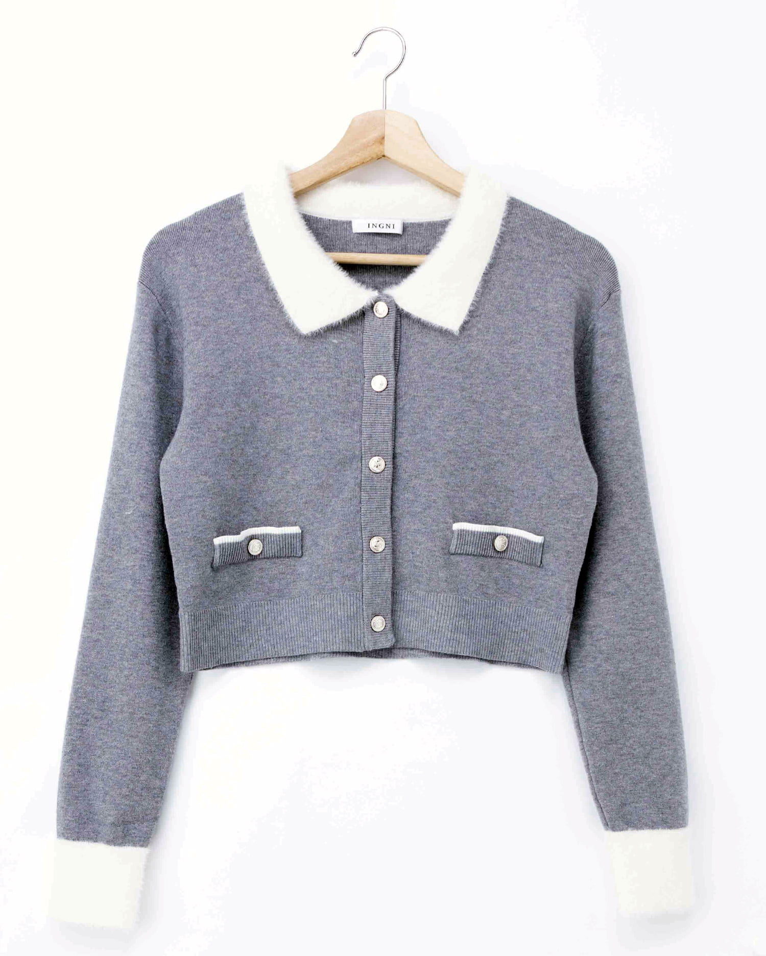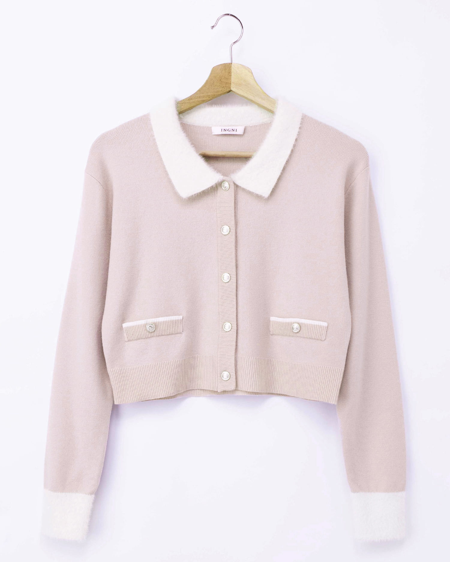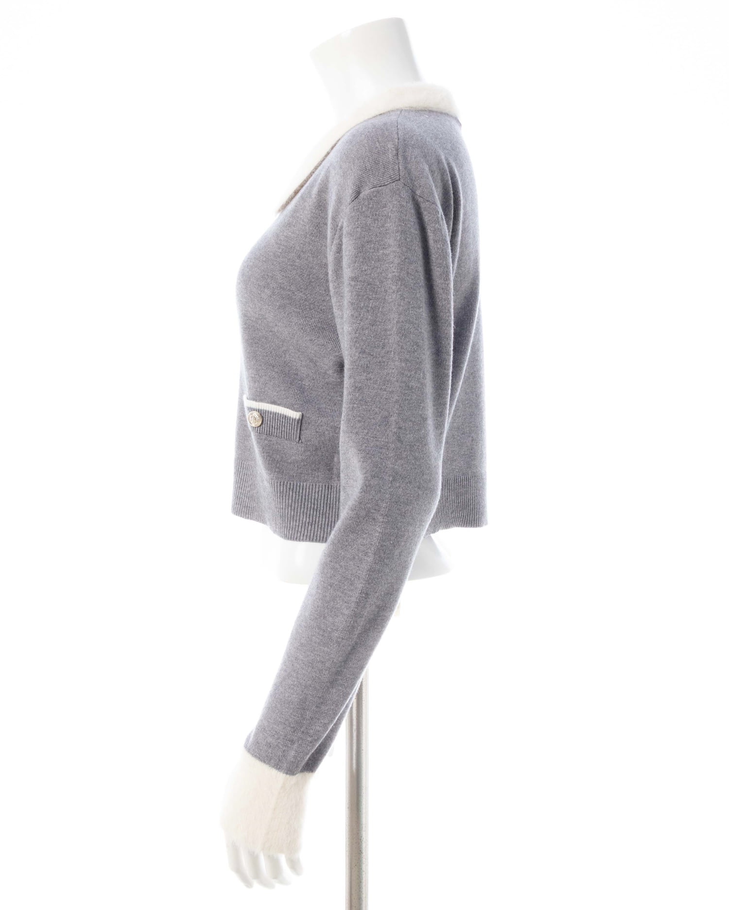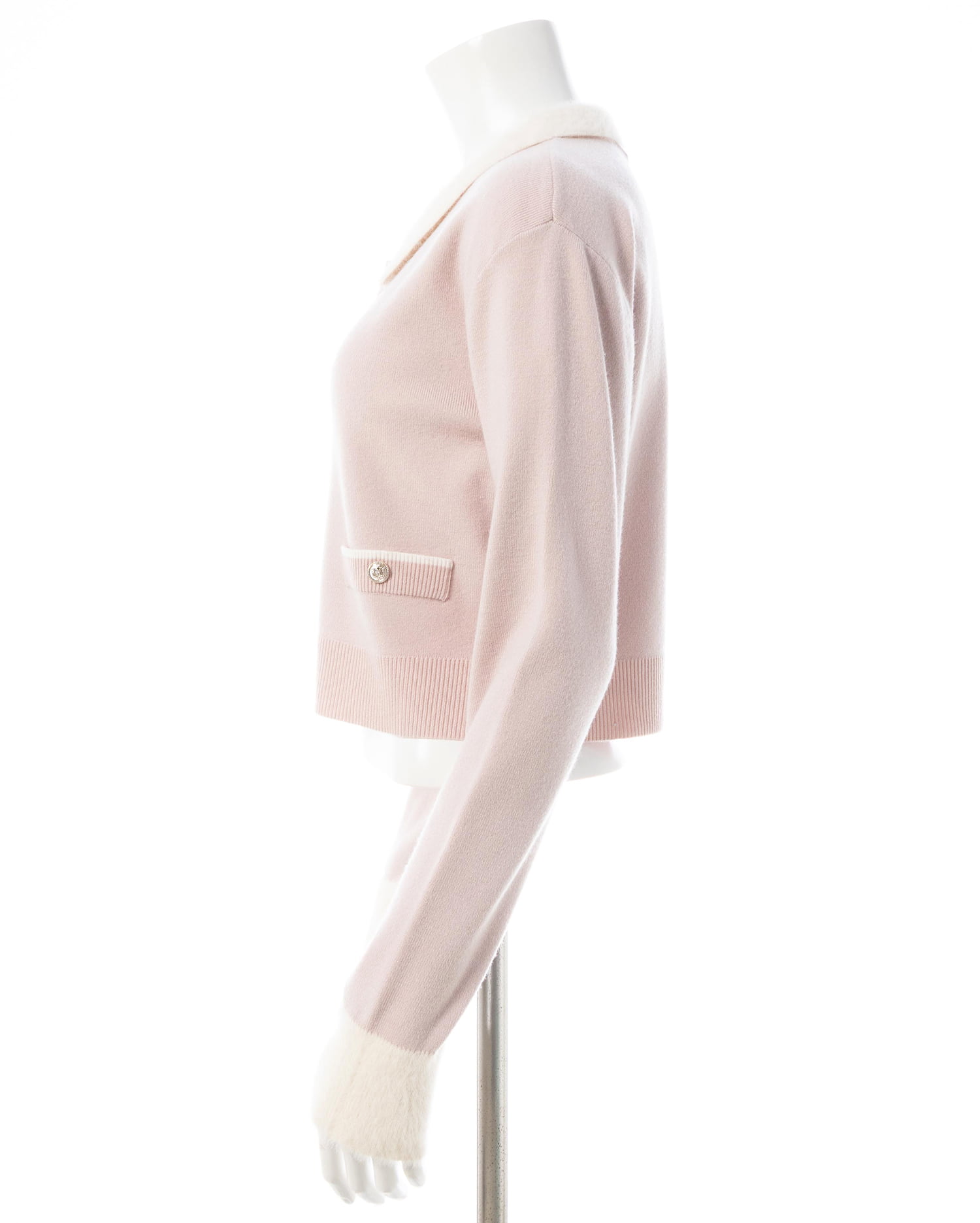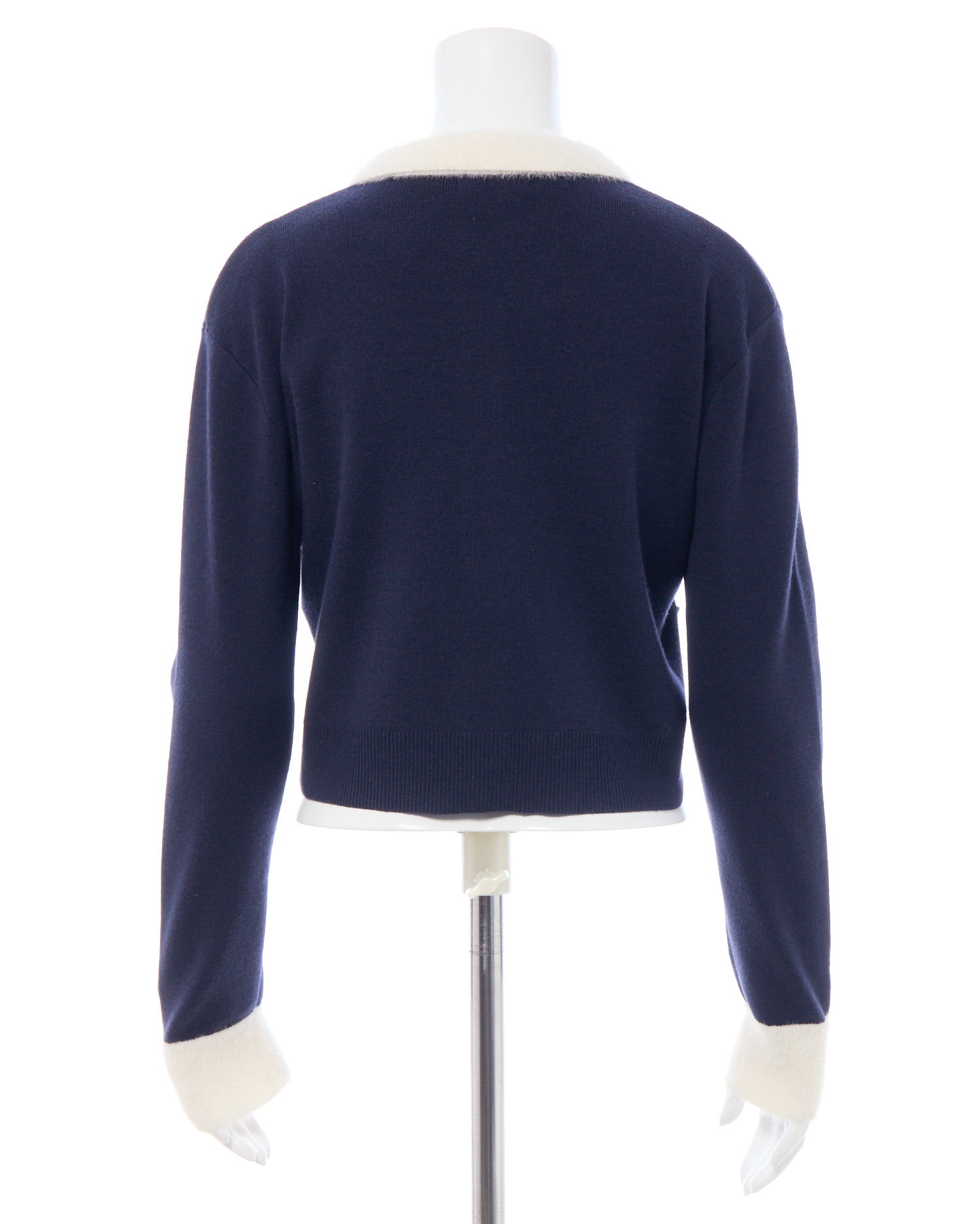 トレンドの配色襟カーディガンが、ふわふわのフェザー素材のニットで登場!