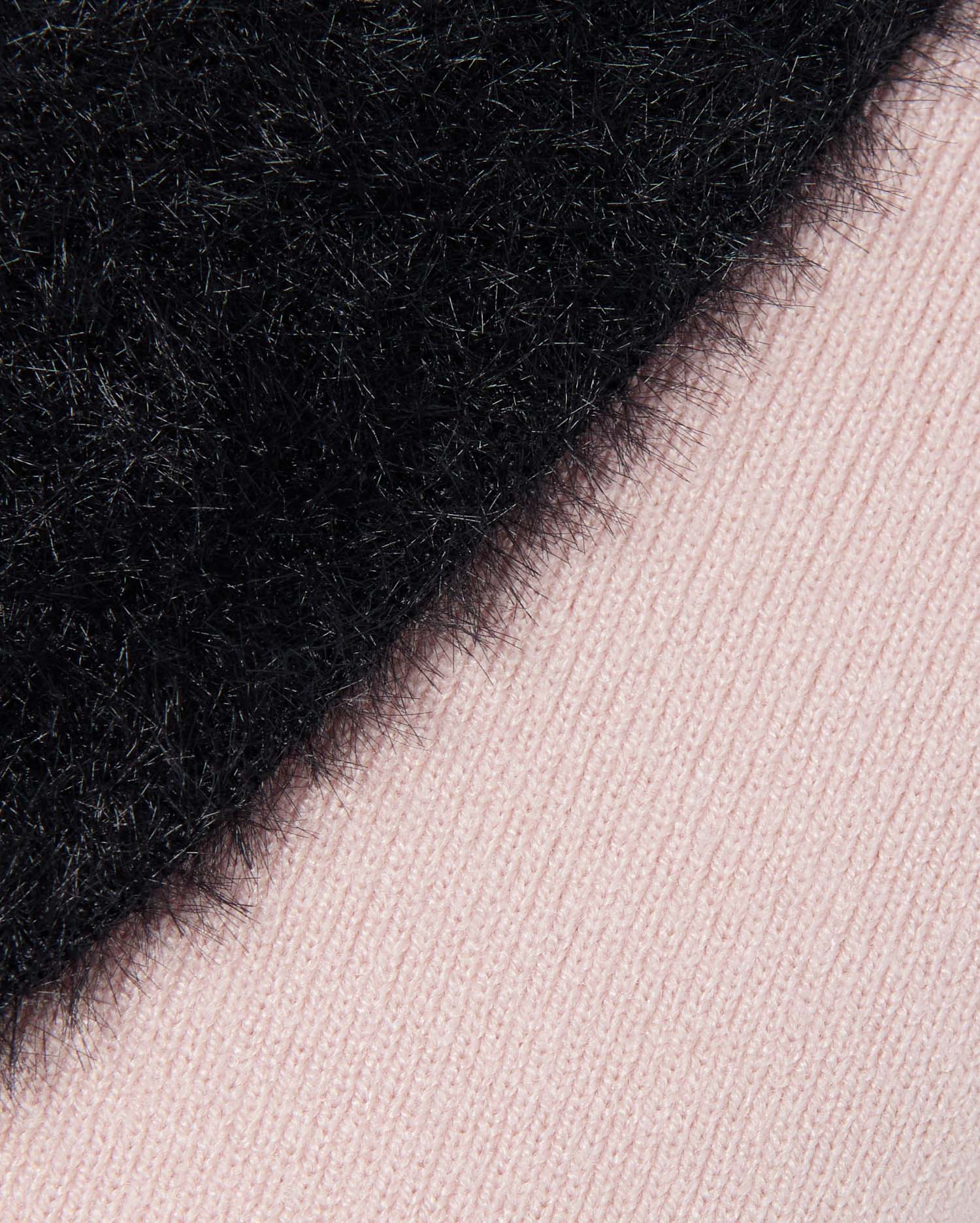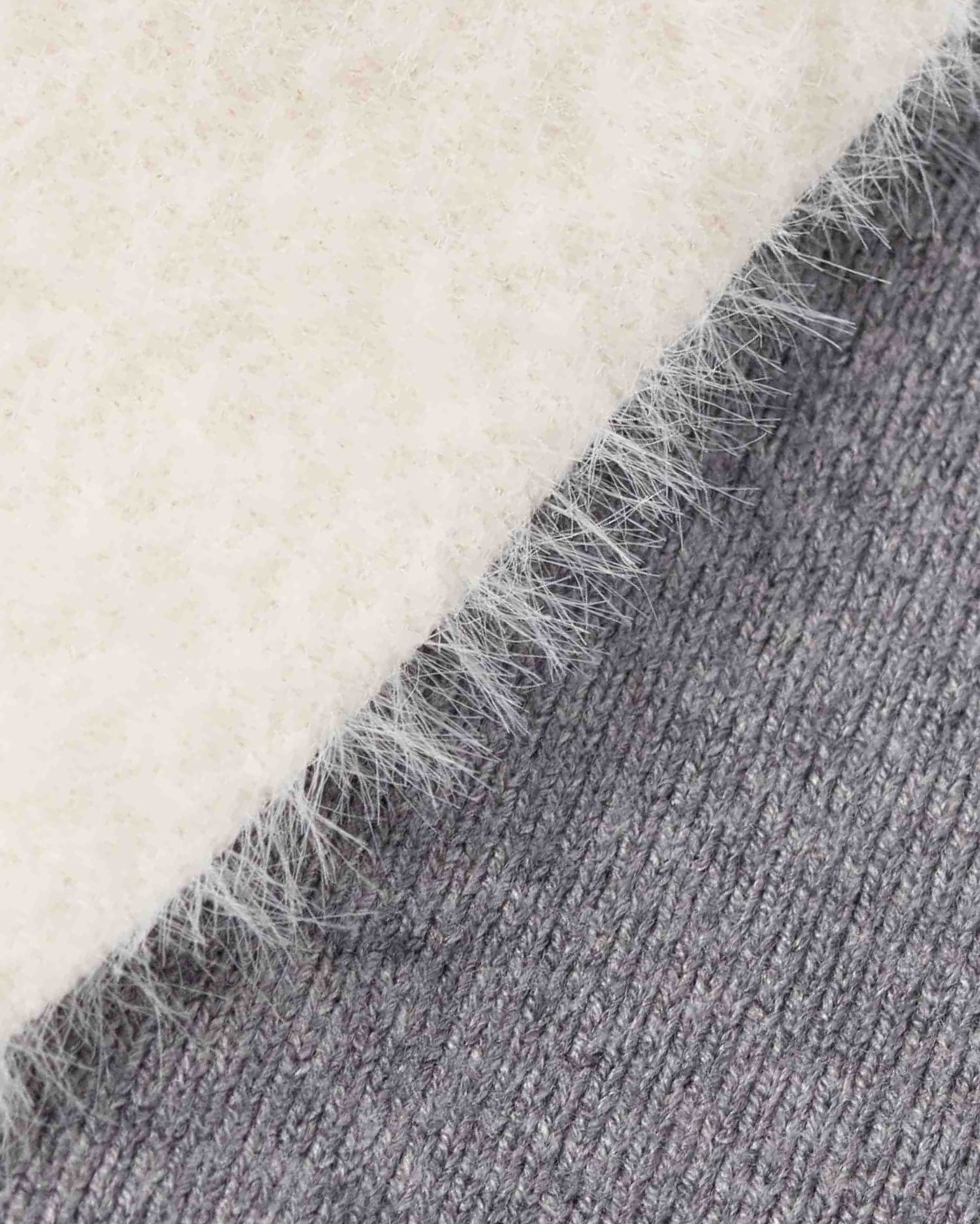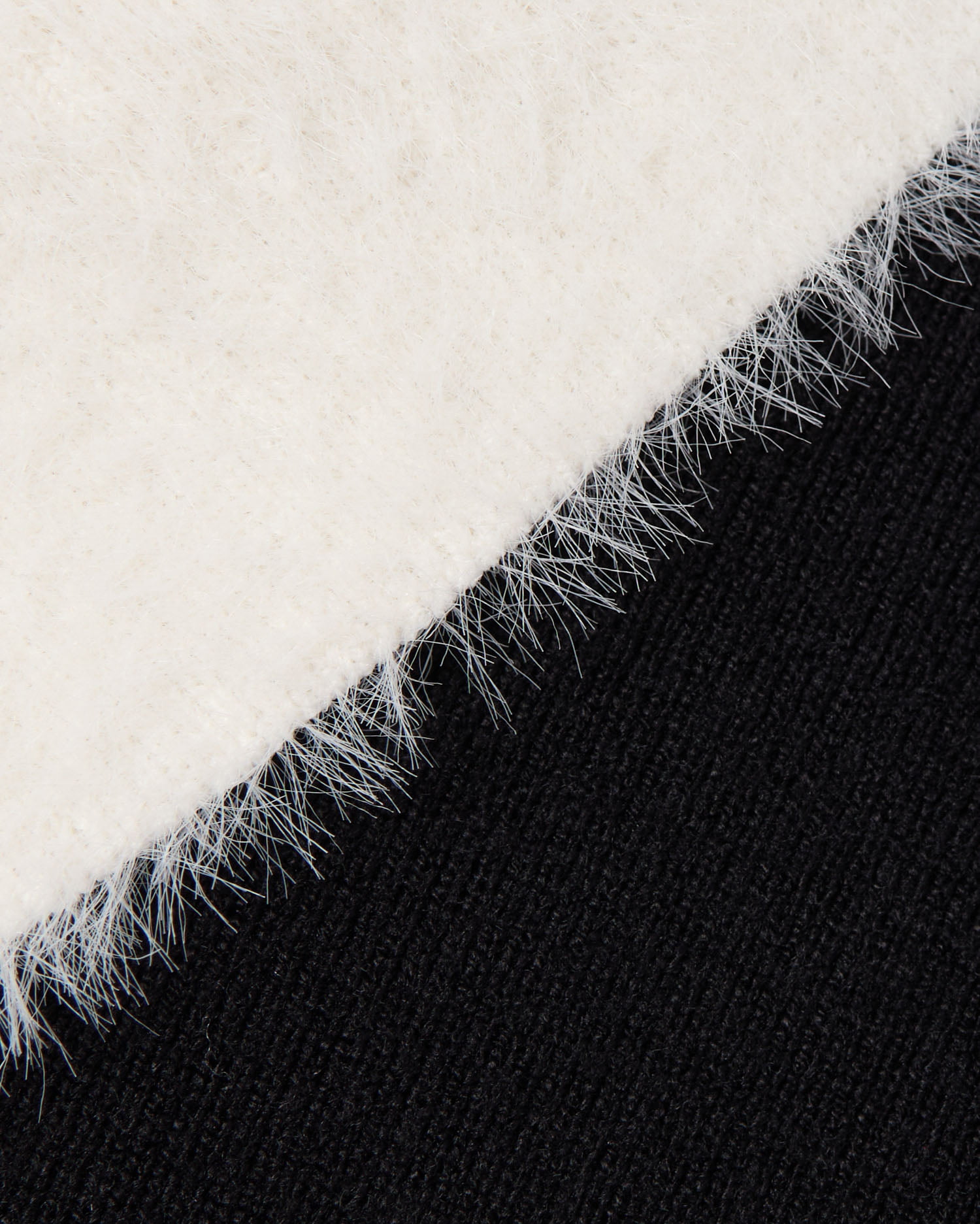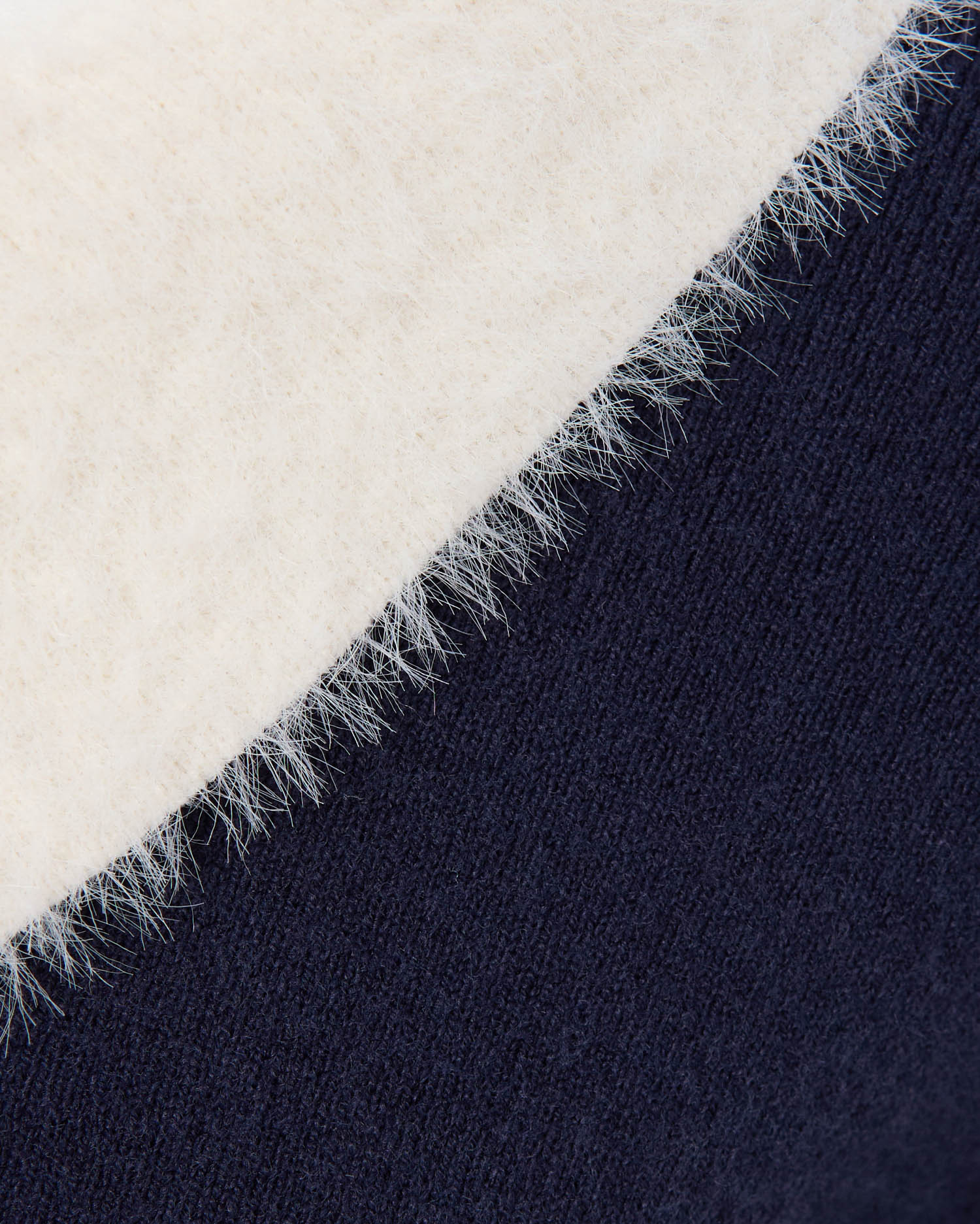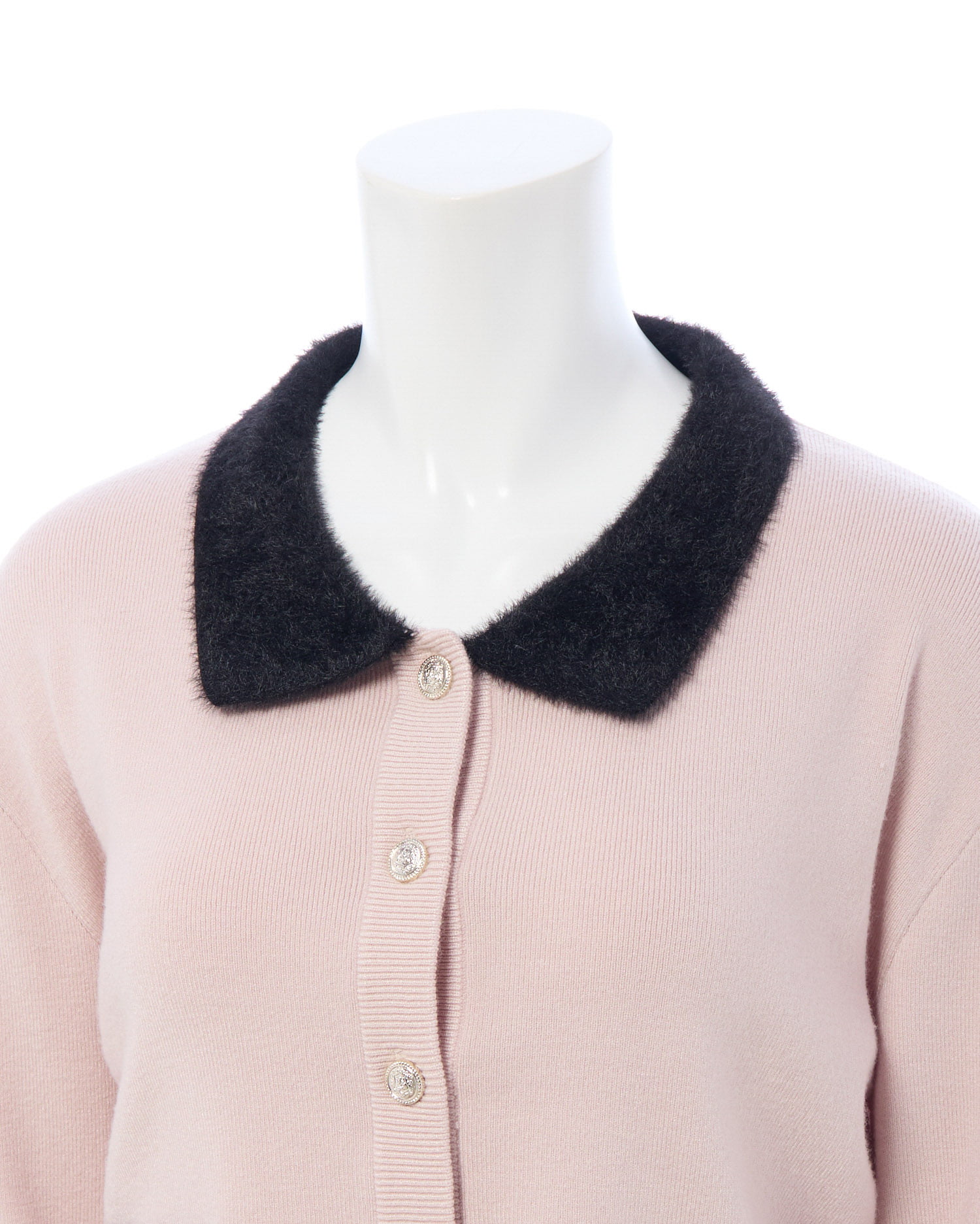 トレンドの配色襟カーディガンが、ふわふわのフェザー素材のニットで登場!