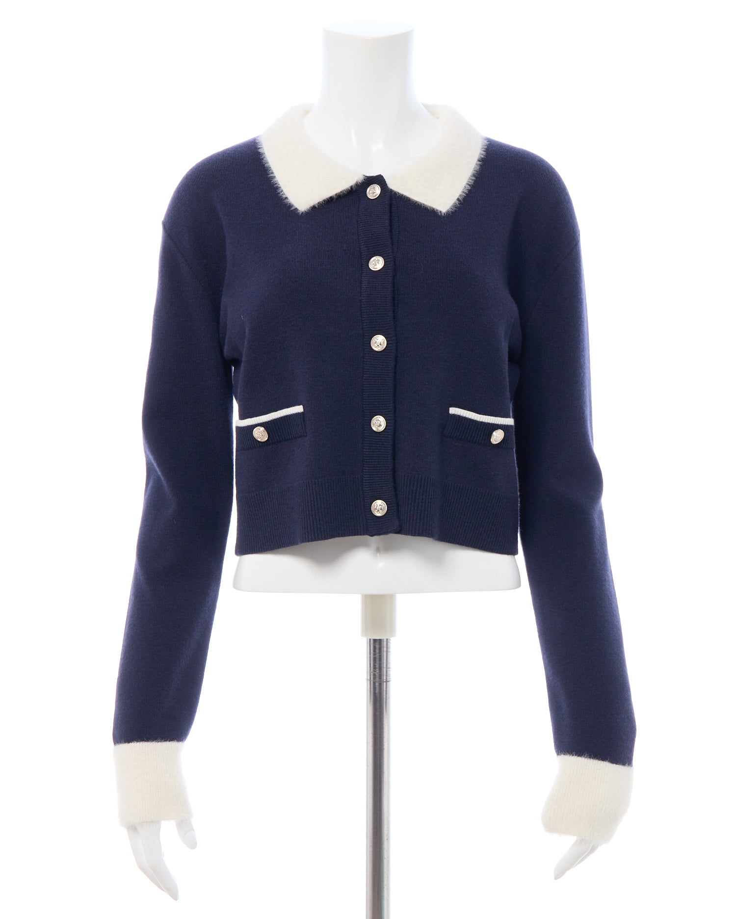 襟と袖が配色になっていてかわいい♡高級感のあるボタンもポイント!