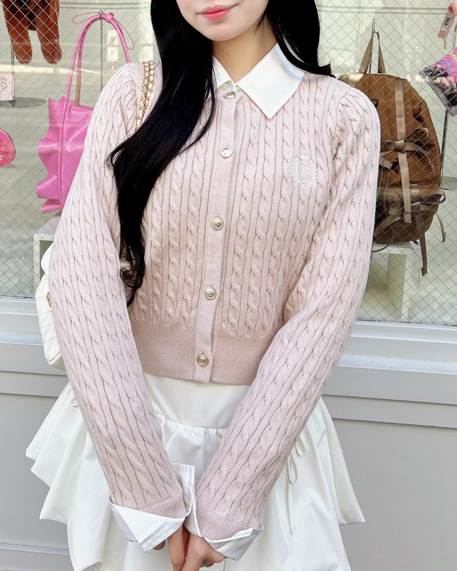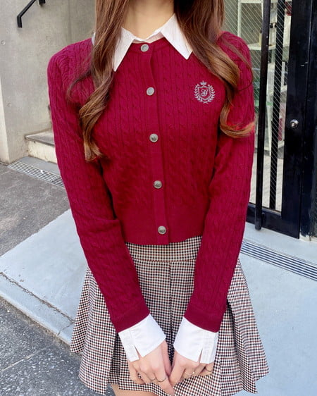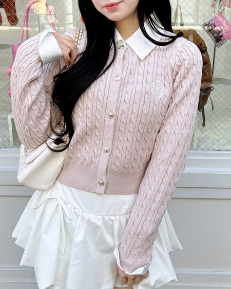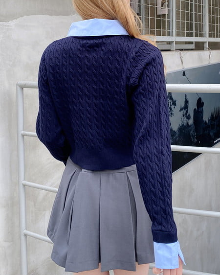シャツにカーディガンを合わせたかのようなドッキングデザインで、1枚ですっきり着られます。