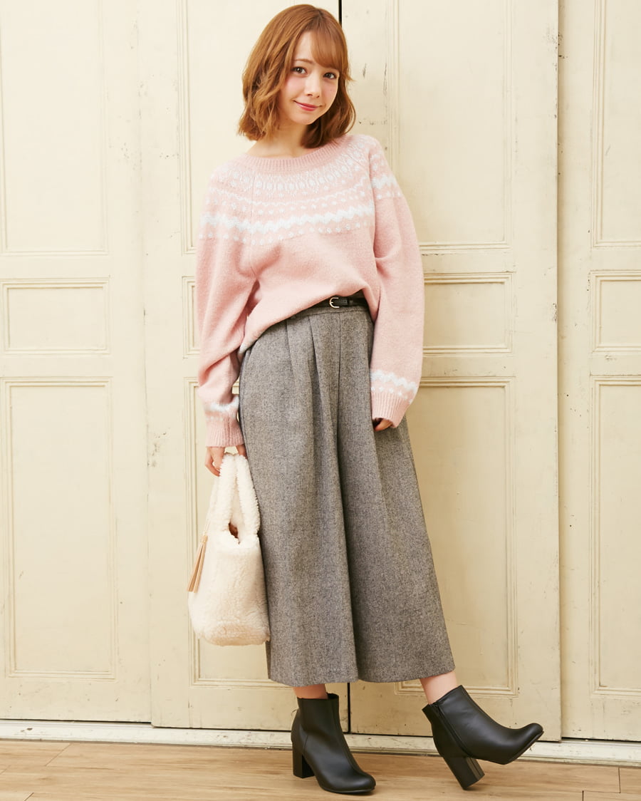 求心柄ラメ/ニットとベルト付ホームスパンガウチョ/パンツのSET☆