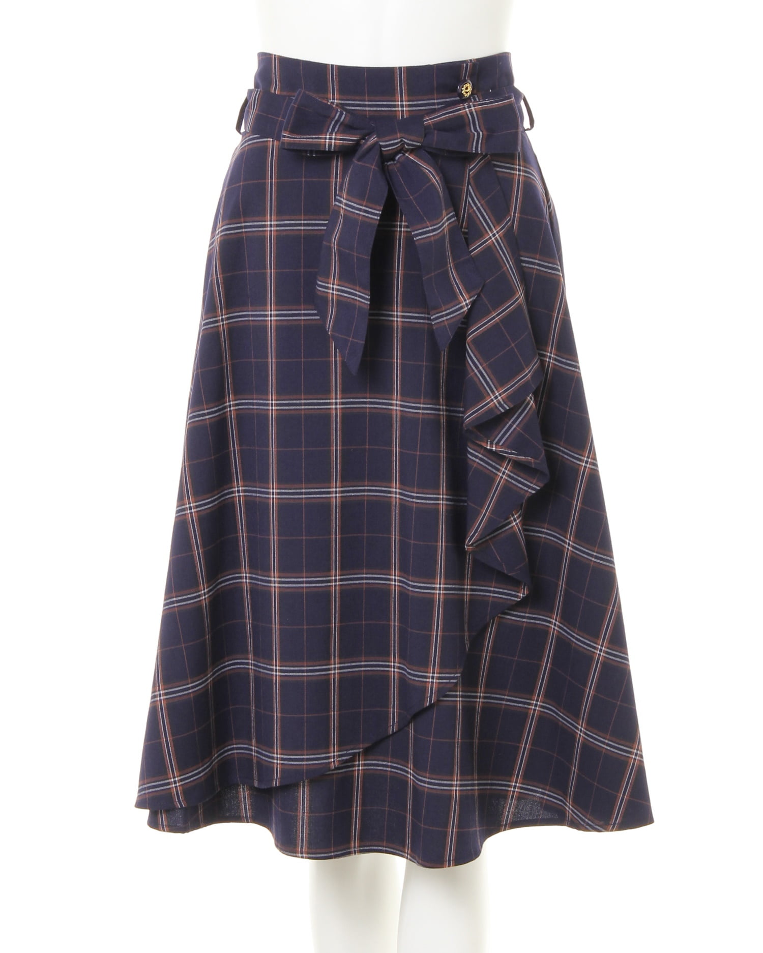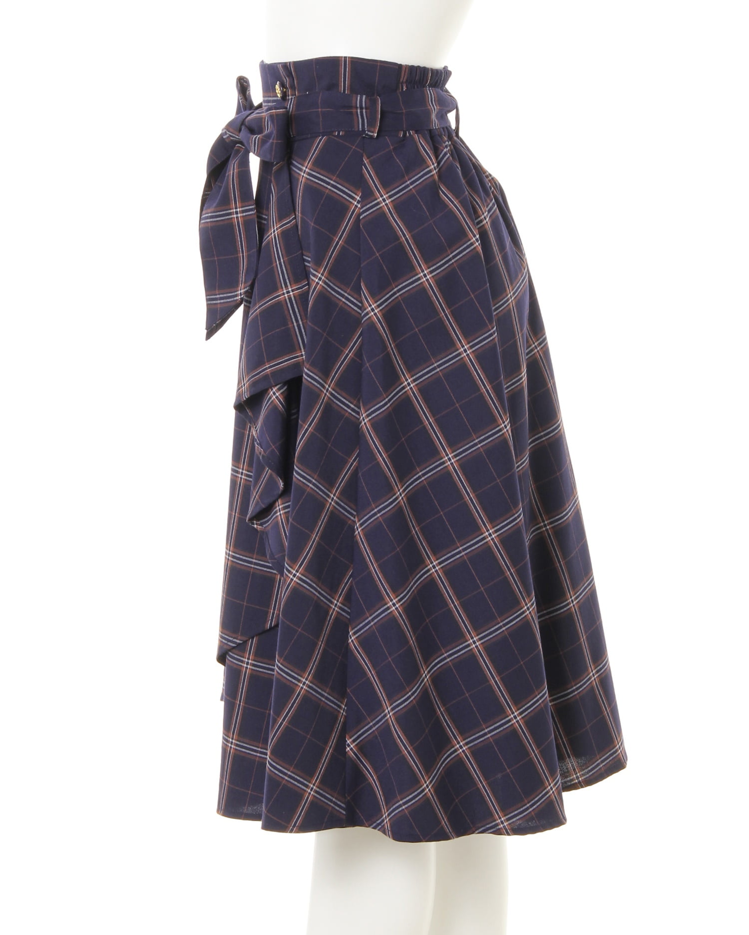 6194-882870 肩パールレースニット+チェック柄ミディスカート/SET