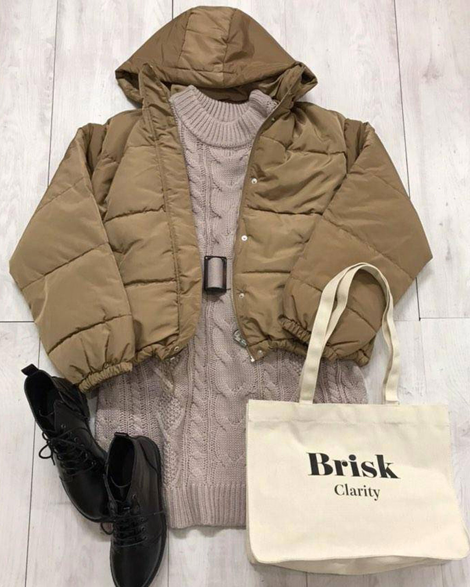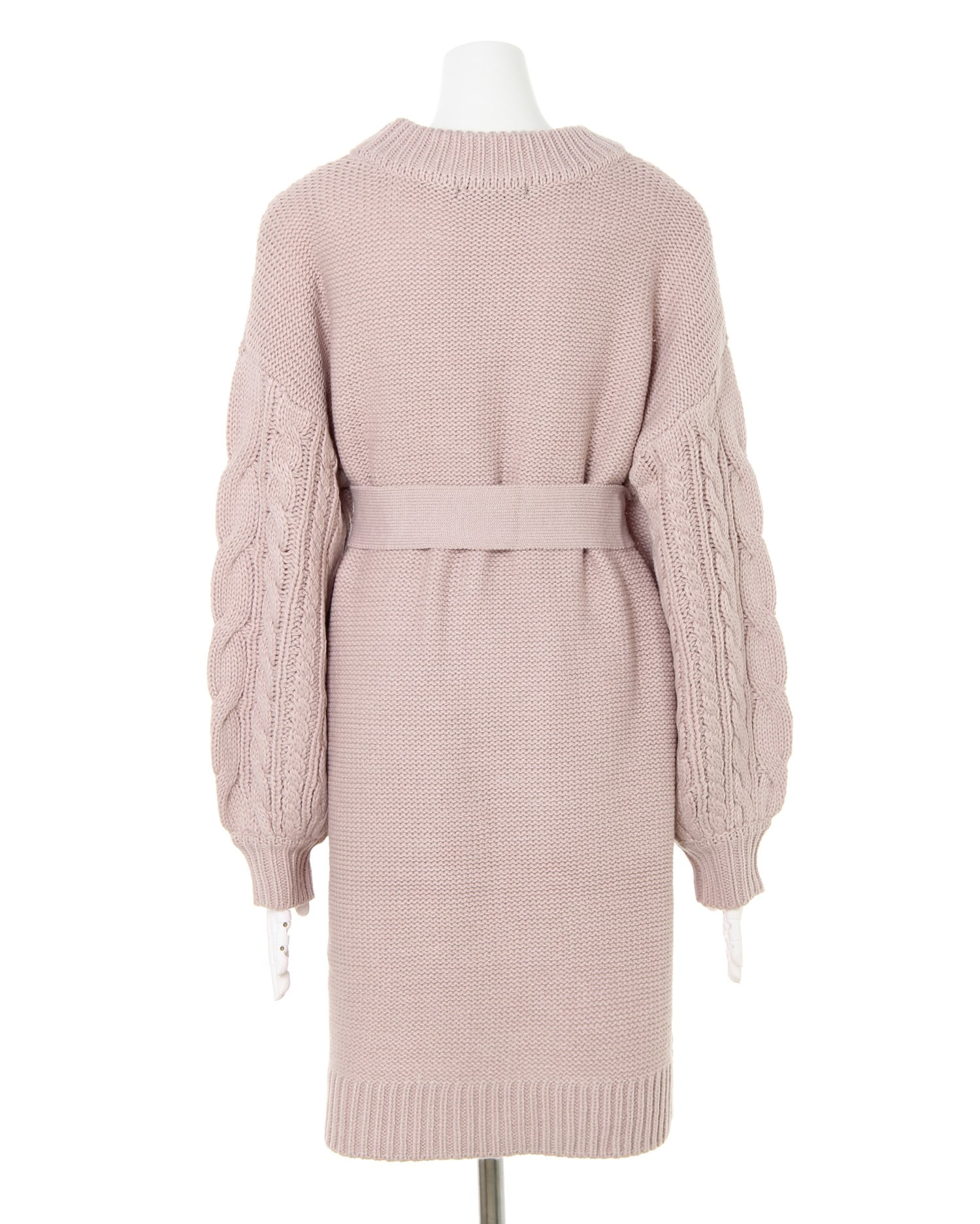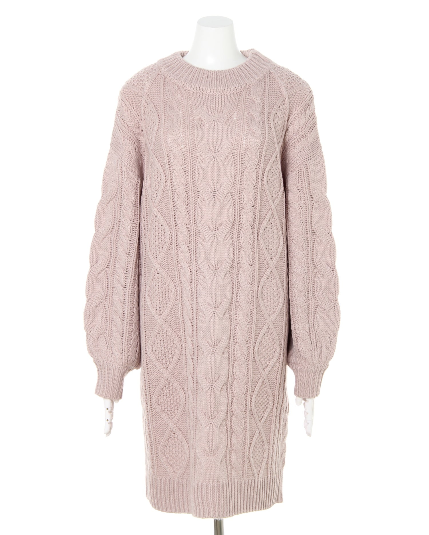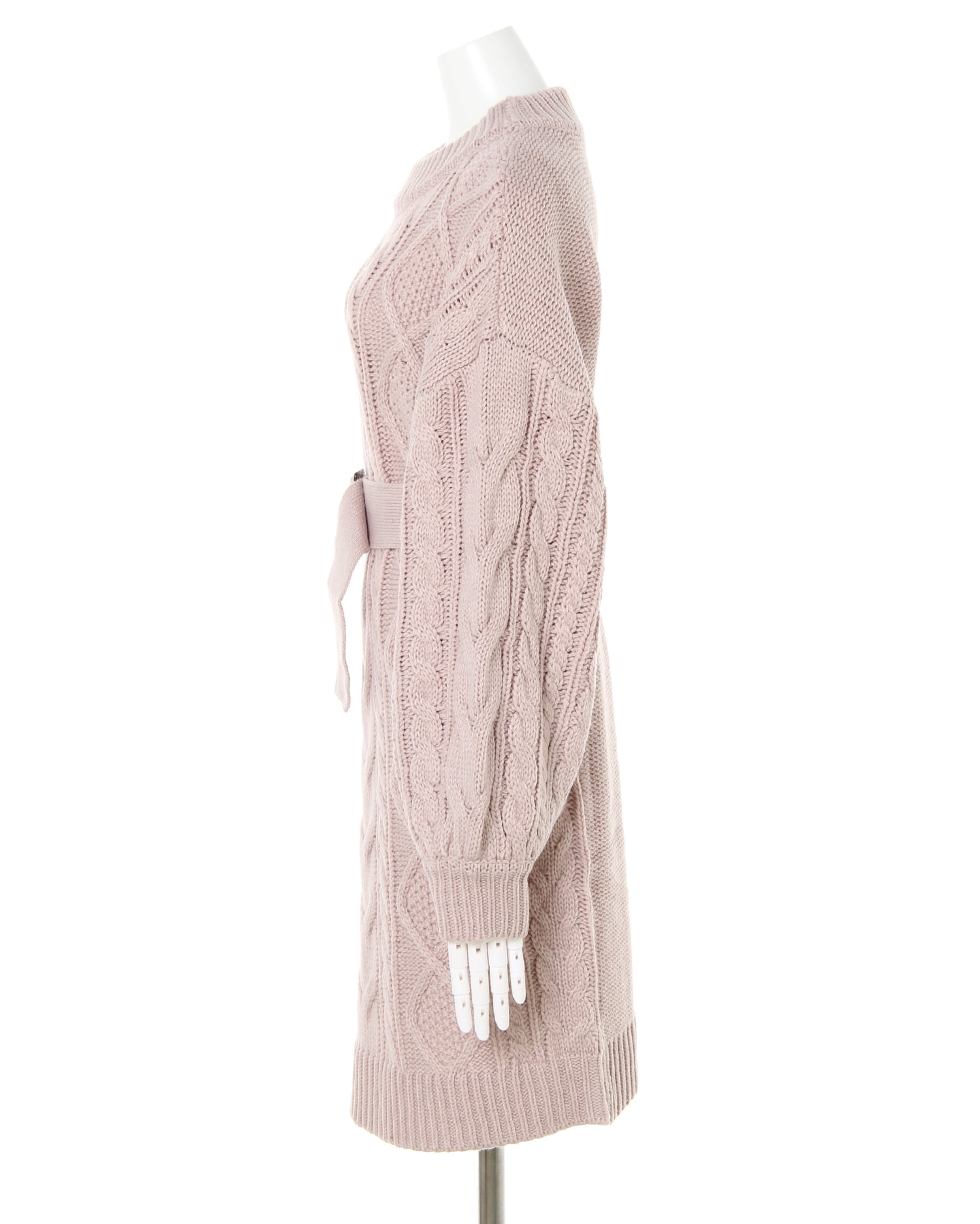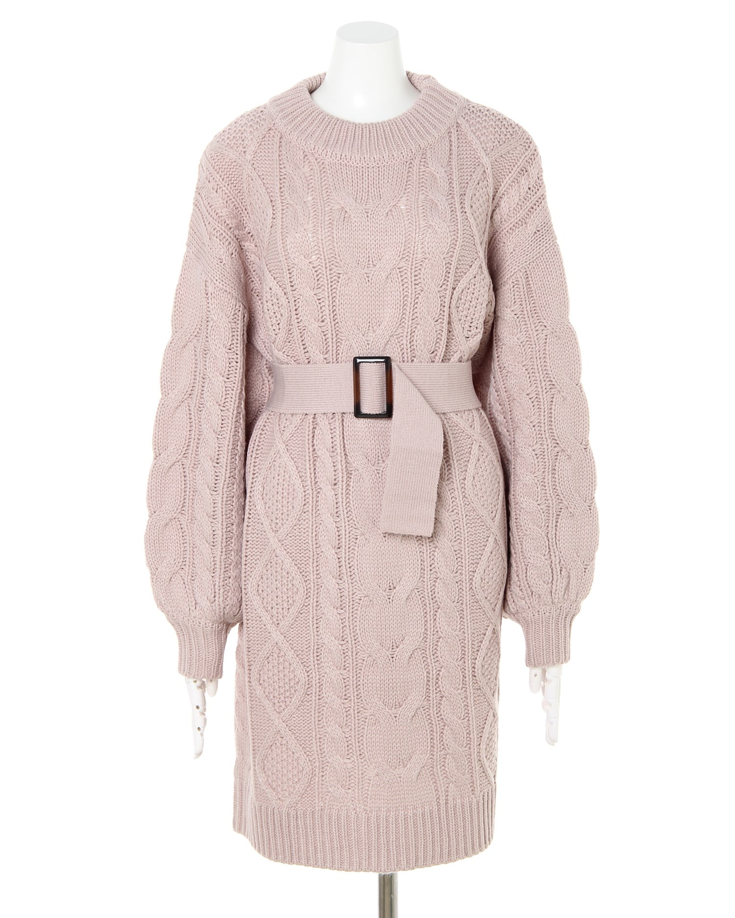 ベルト付モックネック/ケーブルニットワンピースとBIGフードショートエコダウンのSET☆