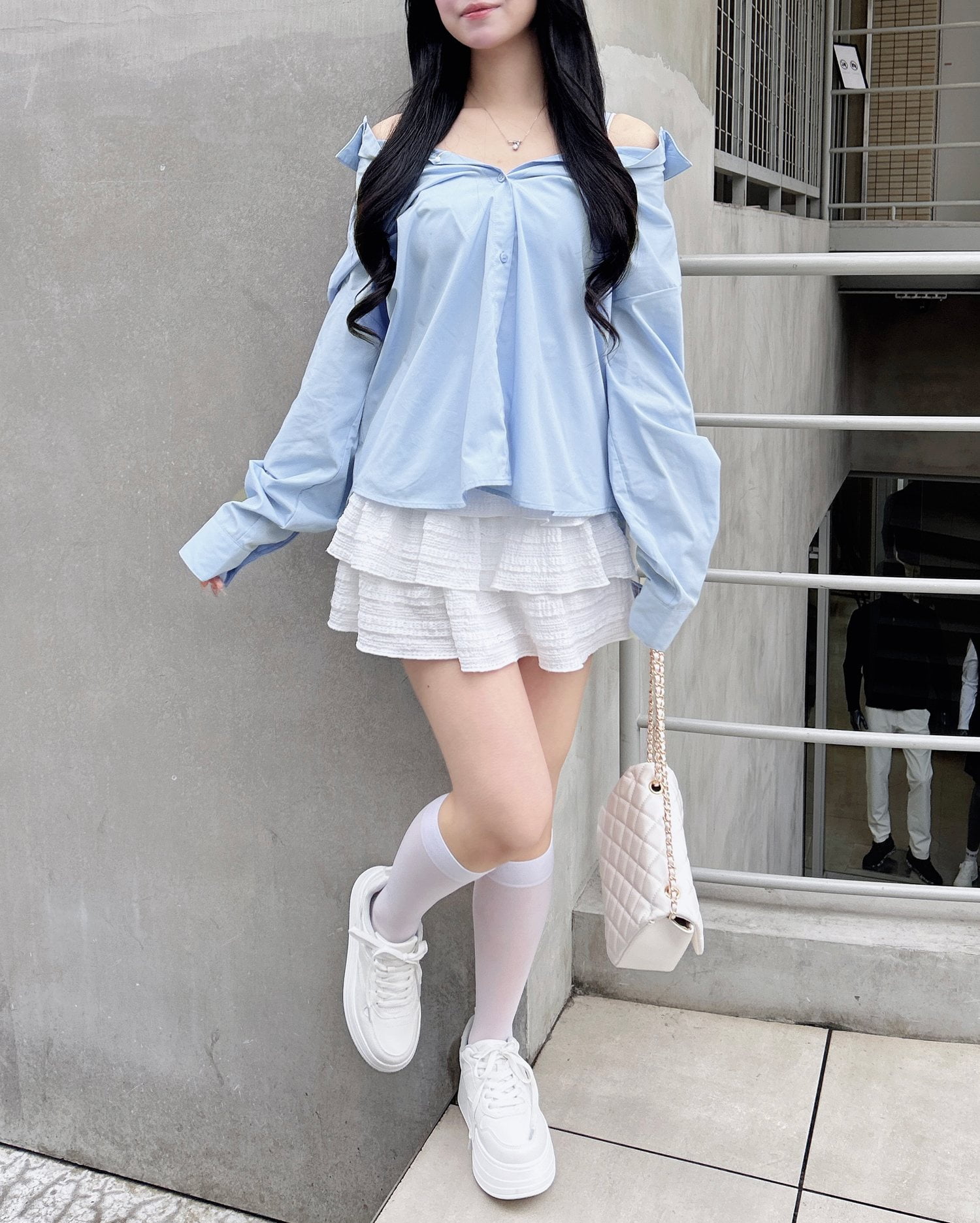 きちんと感のあるシャツをオフショルデザインでトレンドライクに。