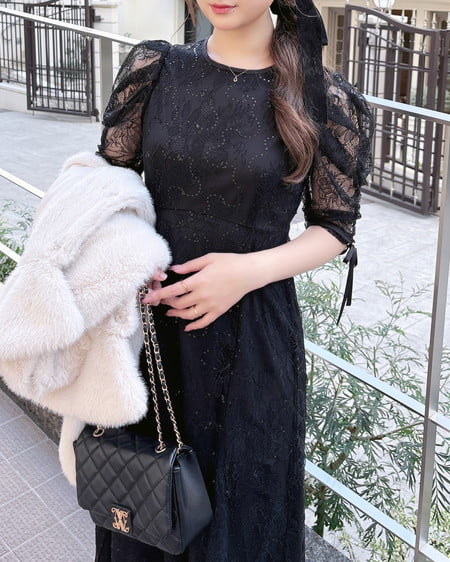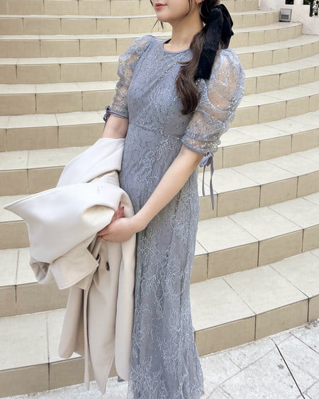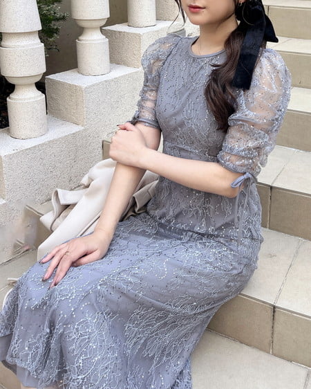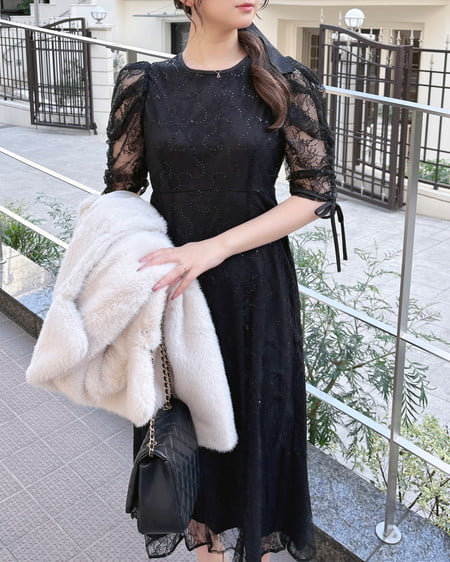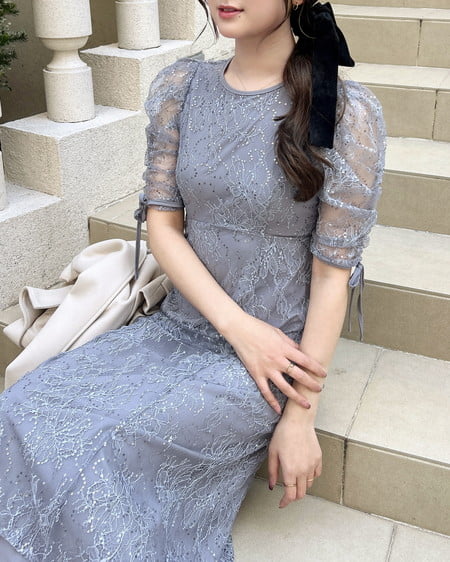 1999-500064 【12/16までの限定価格】【オケージョン】スパンコールレースワンピース