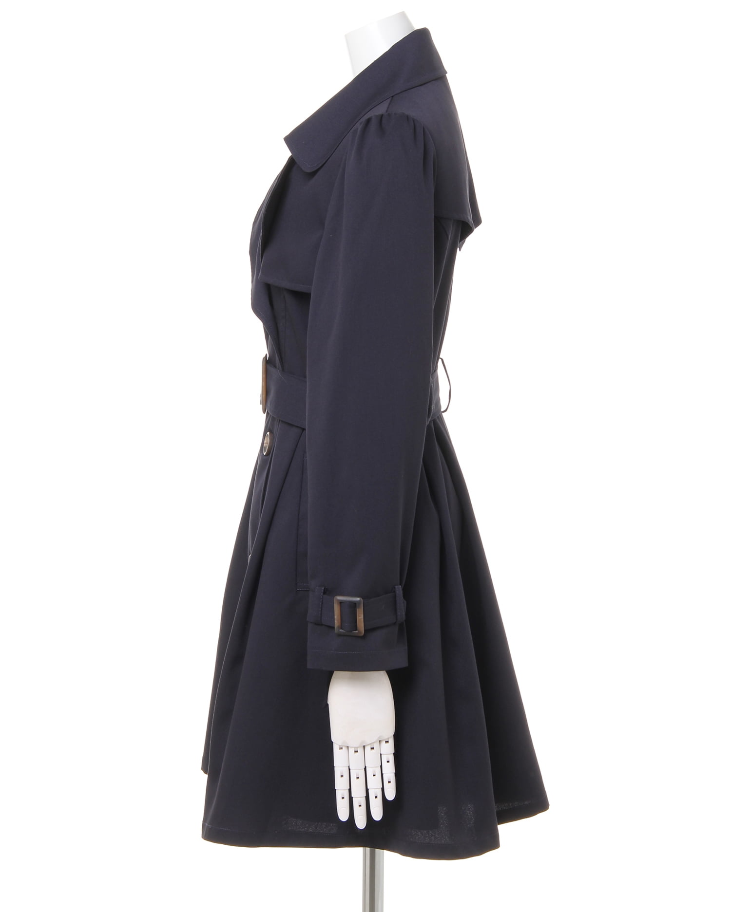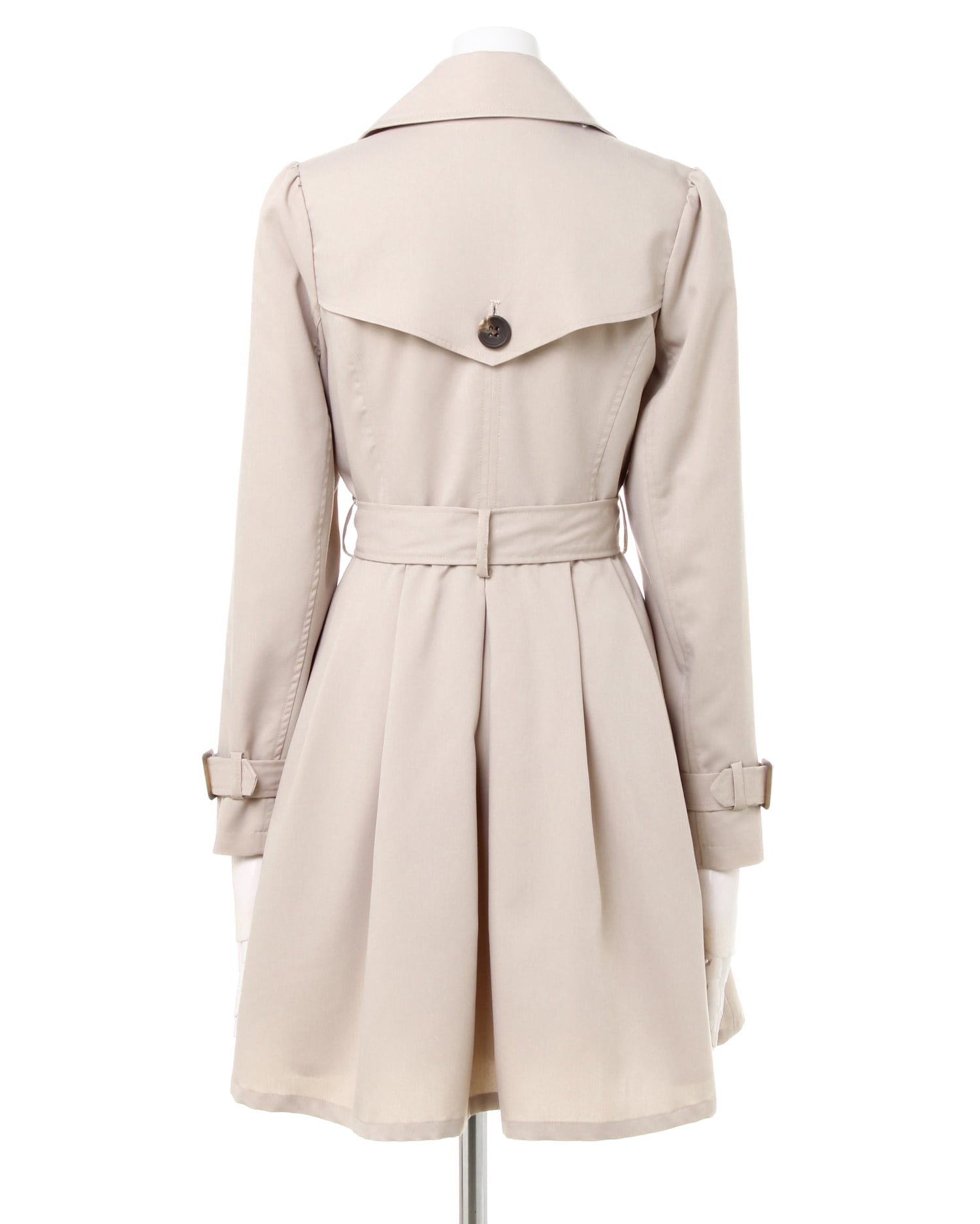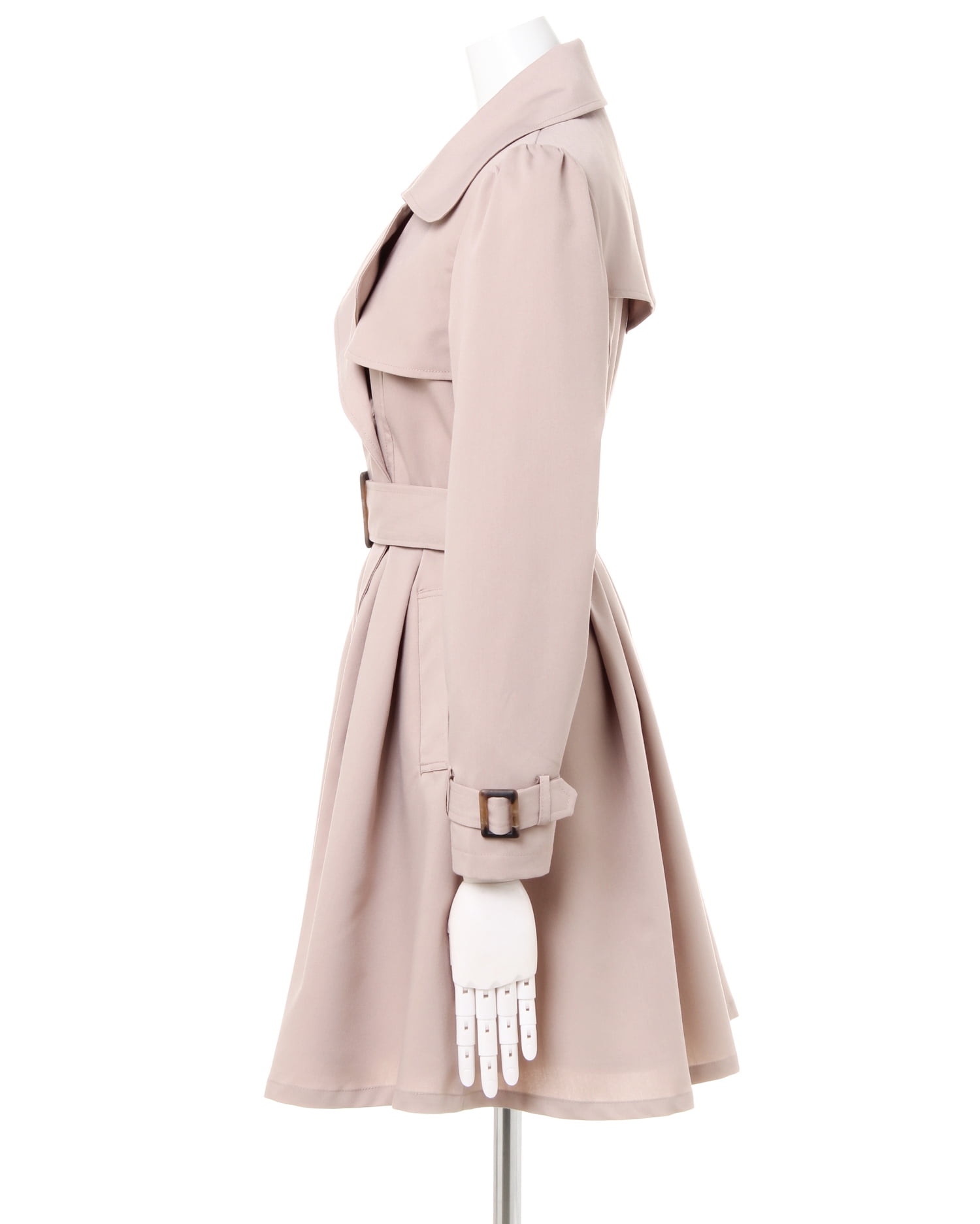 かっちりしすぎないドーリーラインがキュート&フェミニンなトレンチコートは、オンオフ問わずに着回せるオススメの1枚。高めの位置に入れたウエストから裾へ向かってふわりと広がるタック使いがポイントです。ガーリーなパフスリーブデザインが新鮮。ハリ感のある素材は伸縮性もあり、動きやすいのもポイントです。共布ベルト付きなので、ウエストマークしてメリハリシルエットで着こなすのも◎。