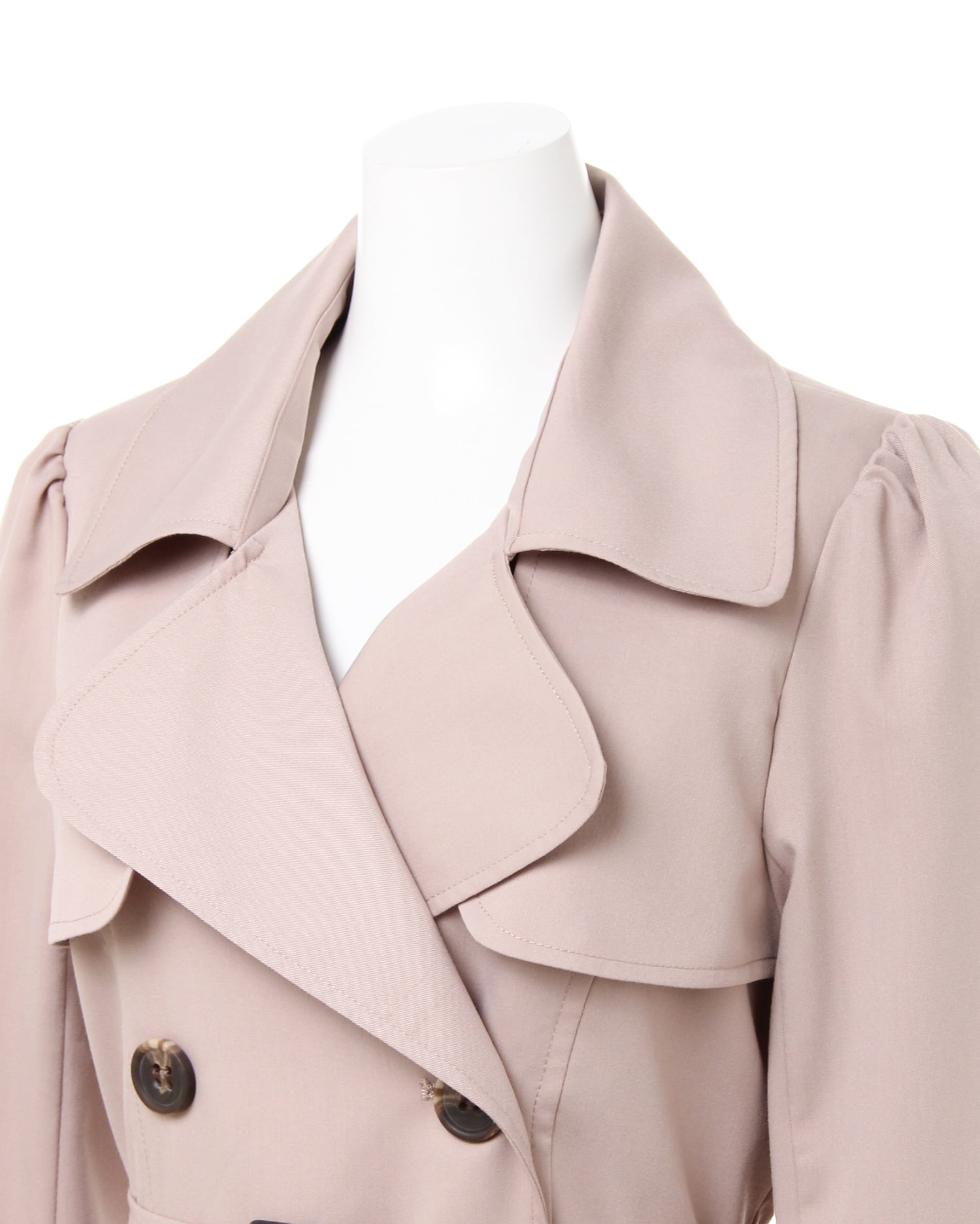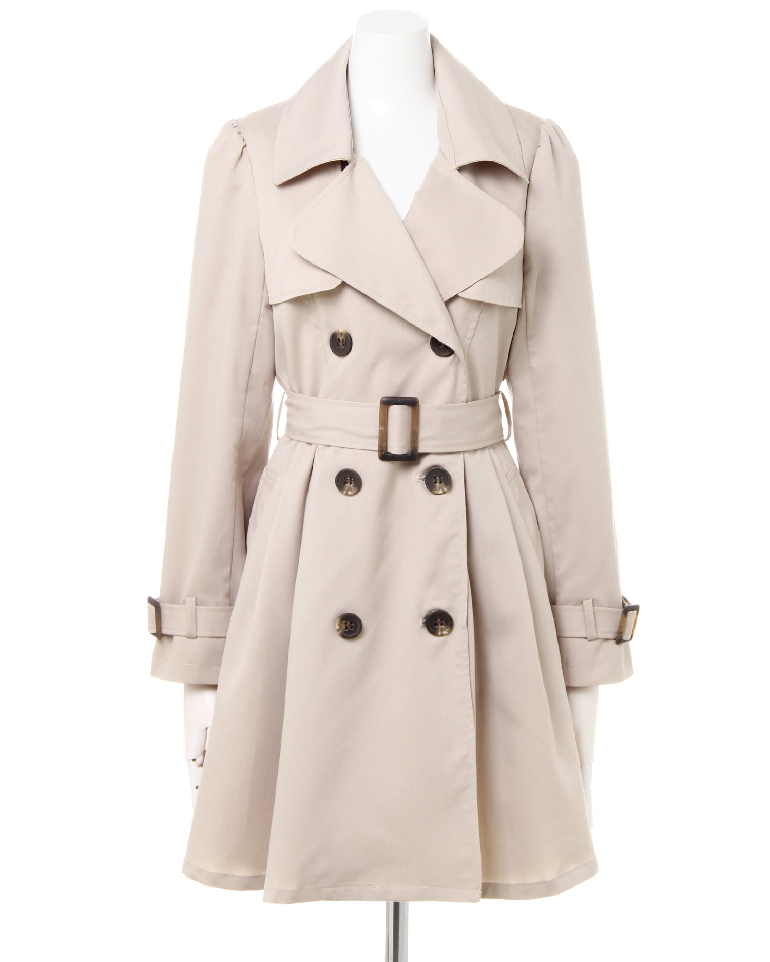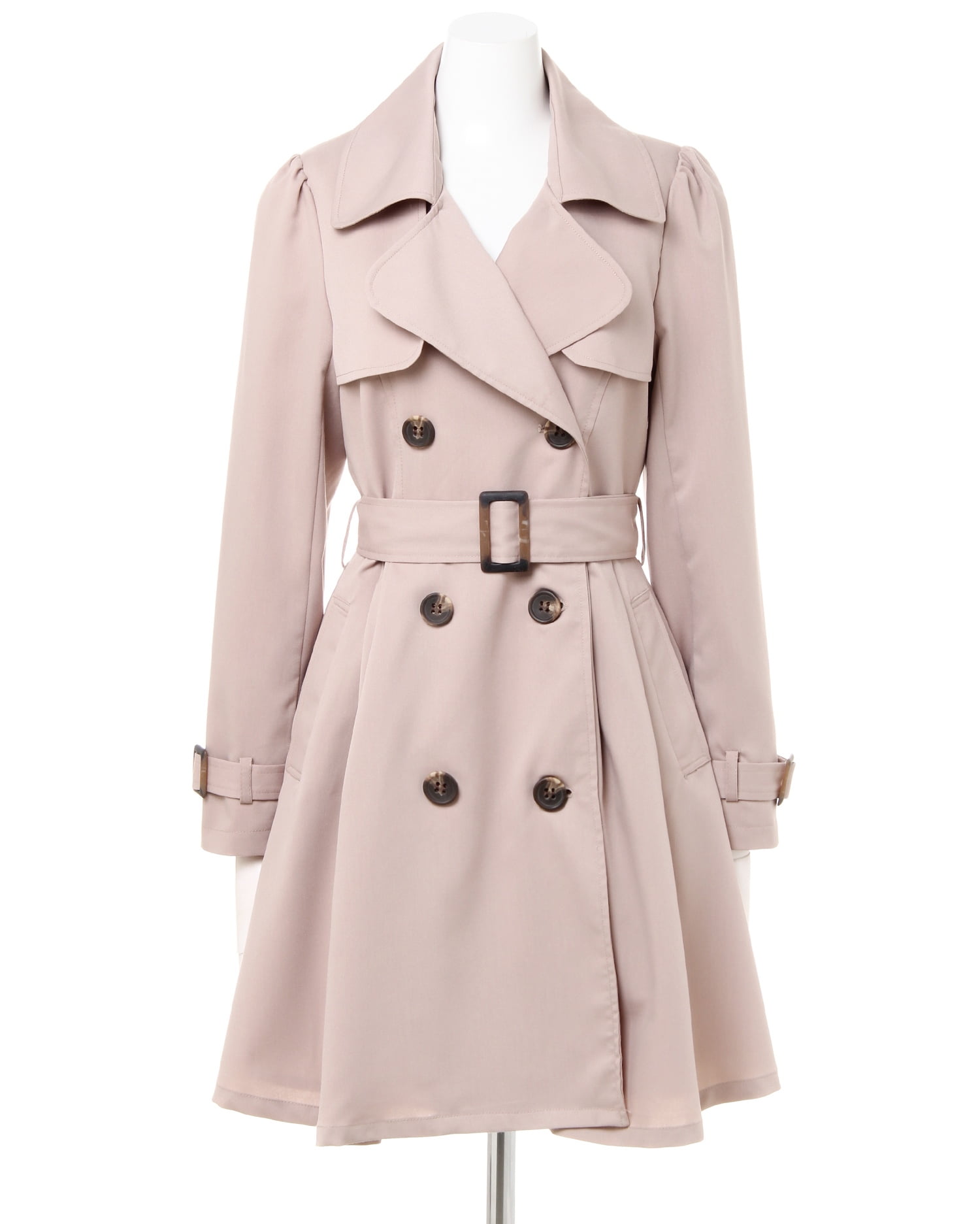 かっちりしすぎないドーリーラインがキュート&フェミニンなトレンチコートは、オンオフ問わずに着回せるオススメの1枚。高めの位置に入れたウエストから裾へ向かってふわりと広がるタック使いがポイントです。ガーリーなパフスリーブデザインが新鮮。ハリ感のある素材は伸縮性もあり、動きやすいのもポイントです。共布ベルト付きなので、ウエストマークしてメリハリシルエットで着こなすのも◎。