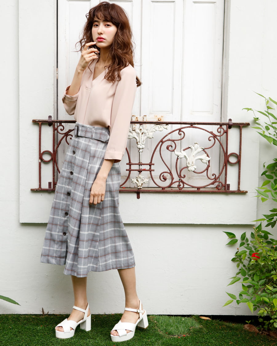 6181-852937 Vネックブラウス+ミディスカート/SET