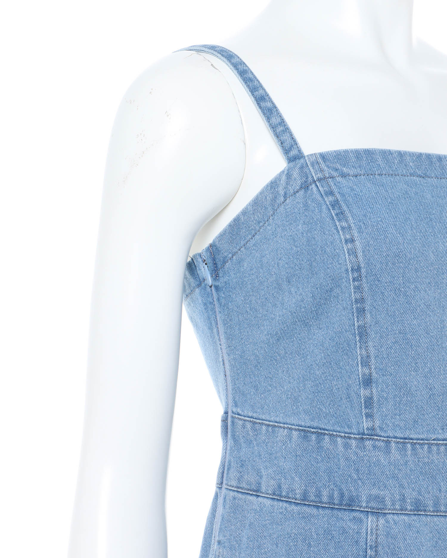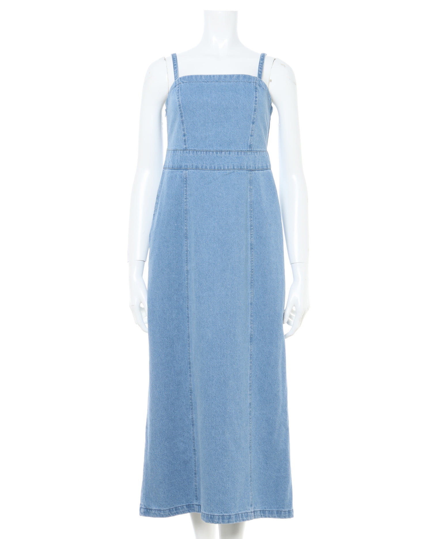 カジュアルなデニムワンピをタイトなシルエットで大人っぽく。華奢なショルダーストラップと高めに入れたウエストラインが上半身をコンパクトに見せ、スタイルアップを狙えます。サイドジップ付きで脱ぎ着も楽ちん。バックにはすりっと入りで足さばきも軽快です。サイドには便利なポケット付き。合わせるインナー次第で様々な着こなしを楽しめます。