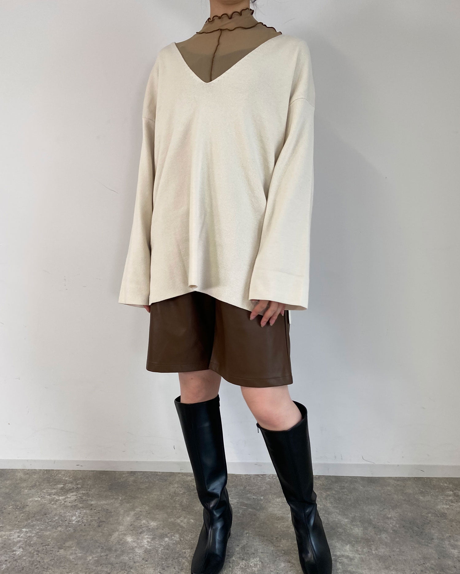 深めに開いたVネックが顔周りをすっきり明るく見せてくれます。
