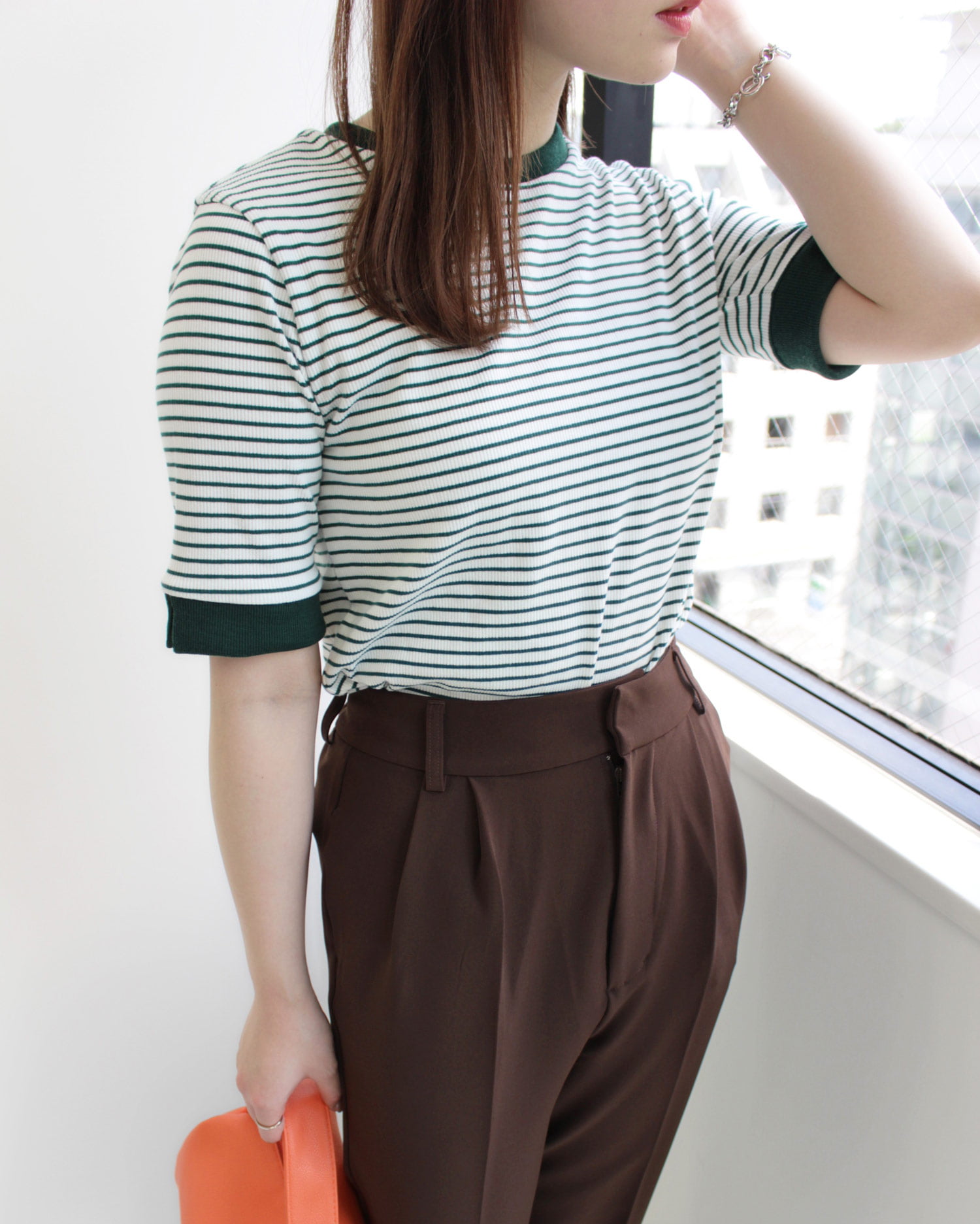 シンプルなデザインのボーダートップスはオンオフ問わず様々なシーンで活躍すること間違いなしなので1枚持っておくと重宝出来ます◎