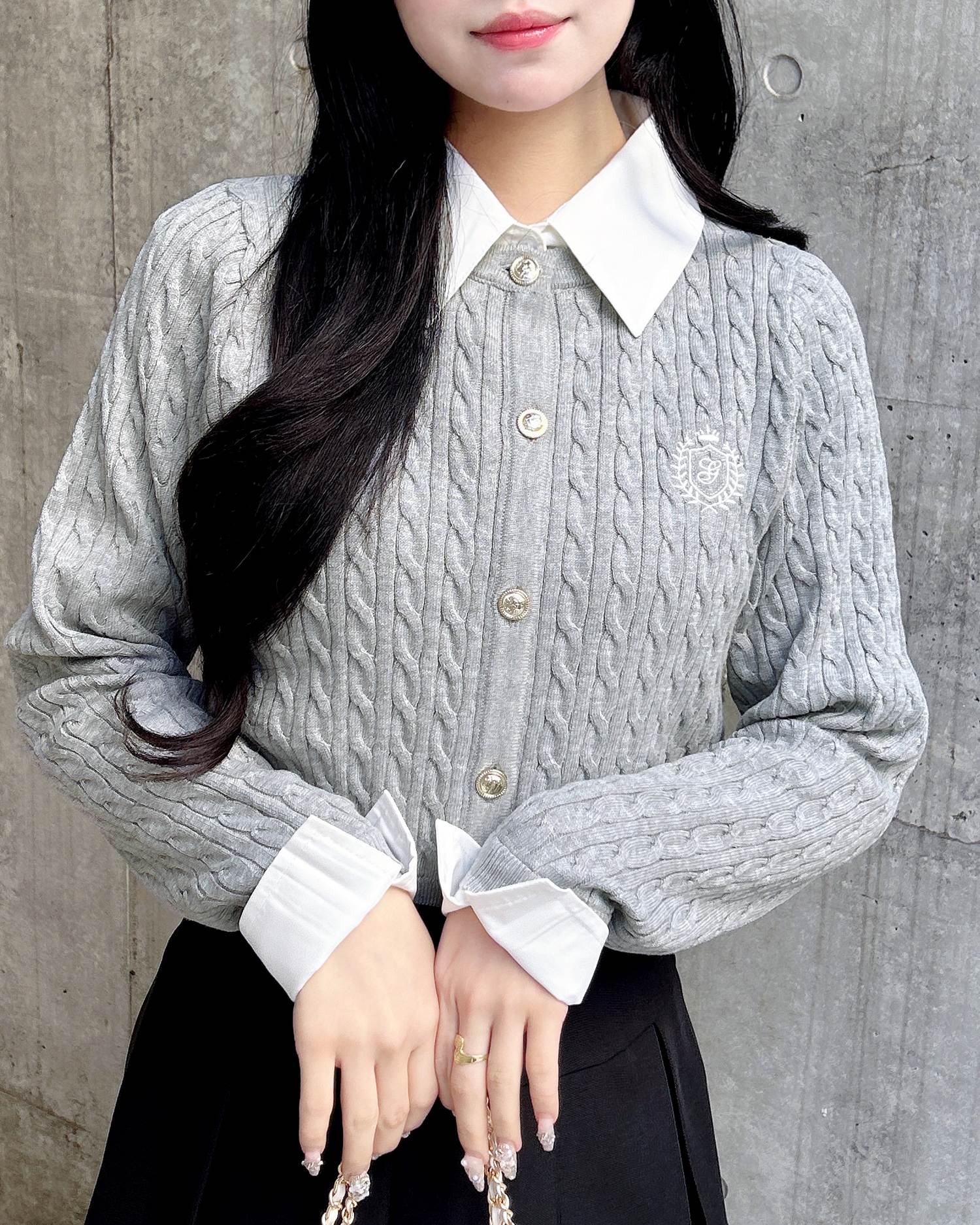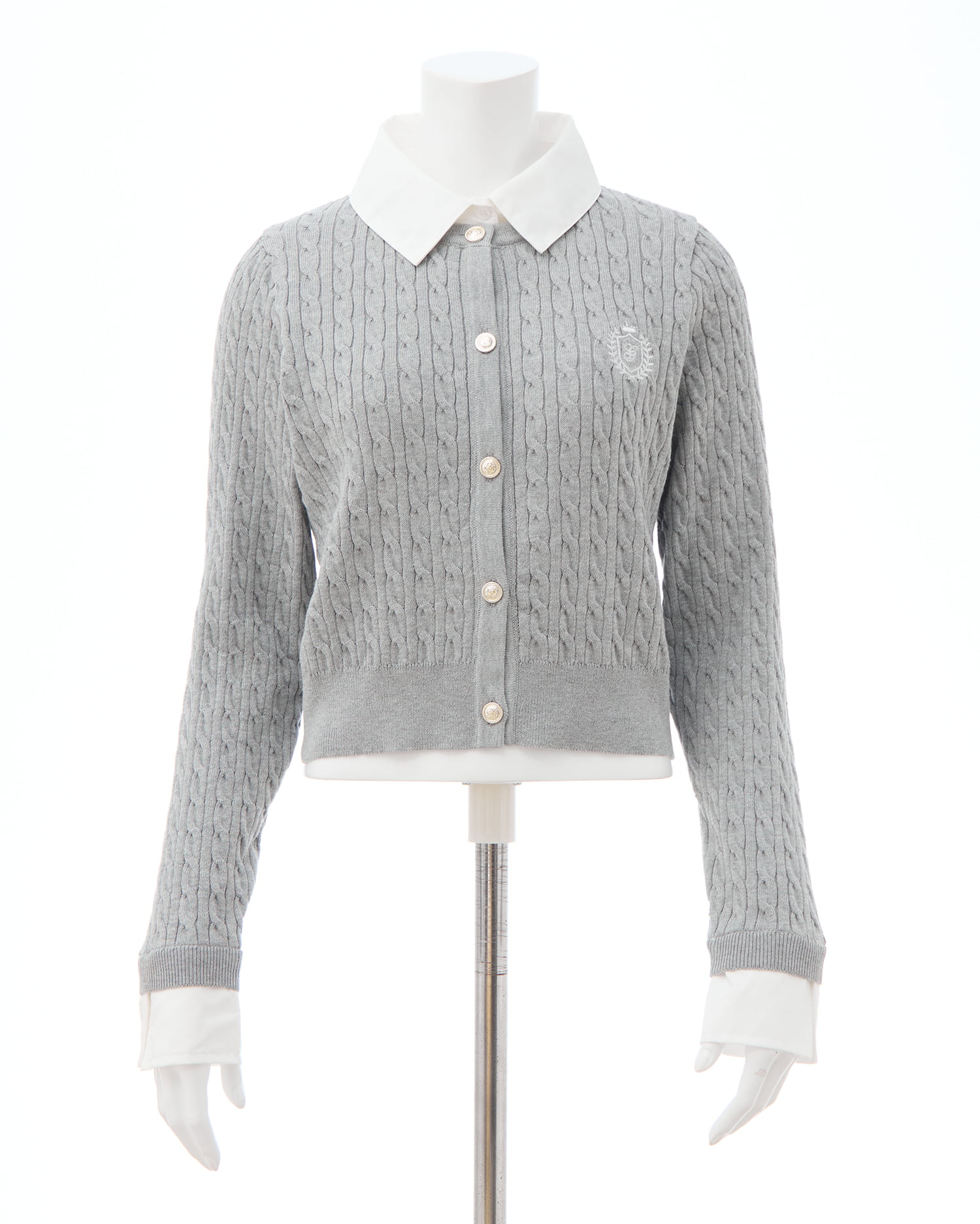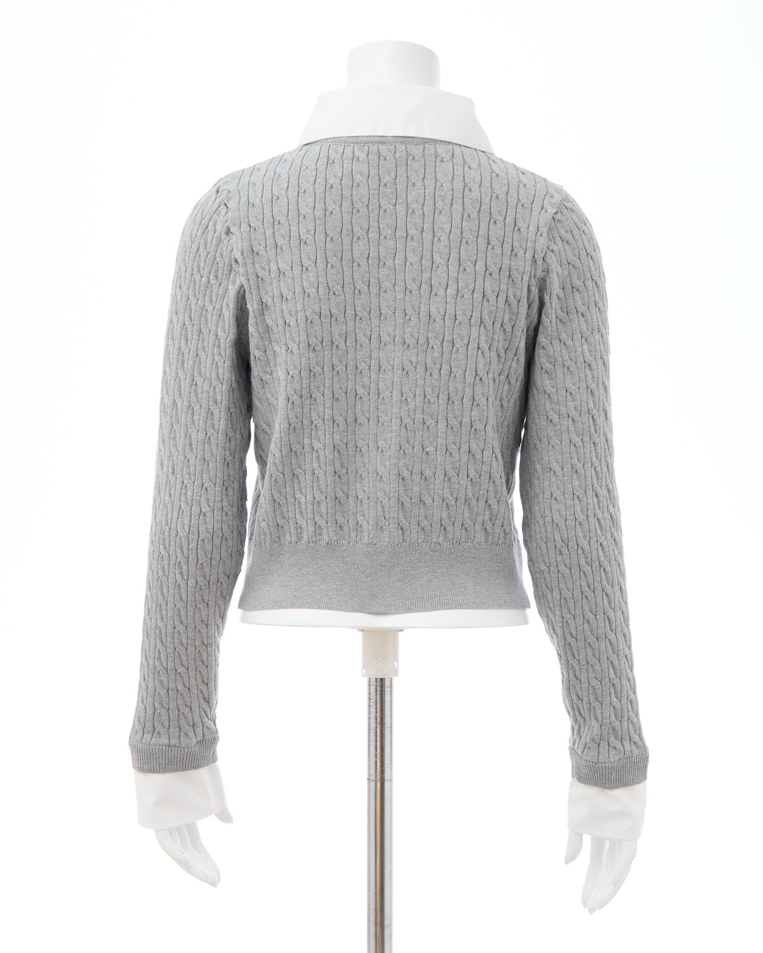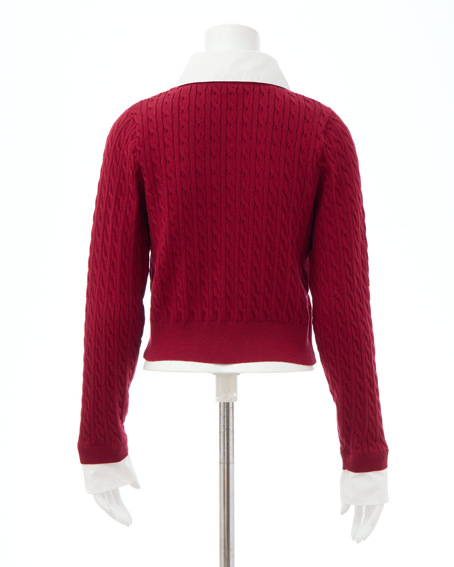 シャツにカーディガンを合わせたかのようなドッキングデザインで、1枚ですっきり着られます。