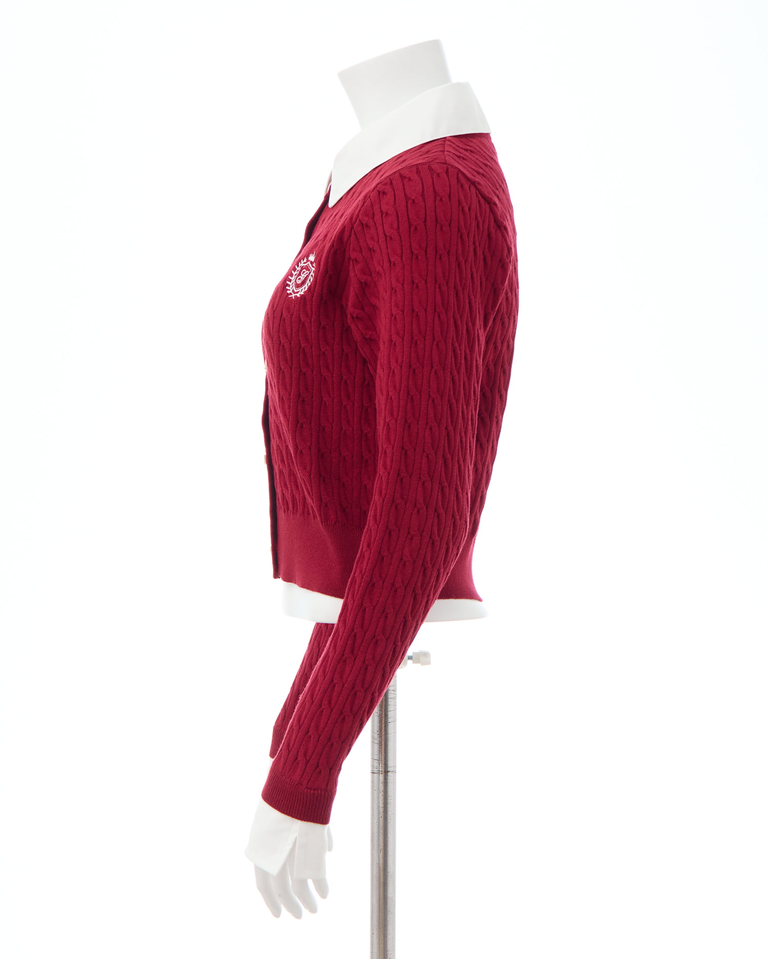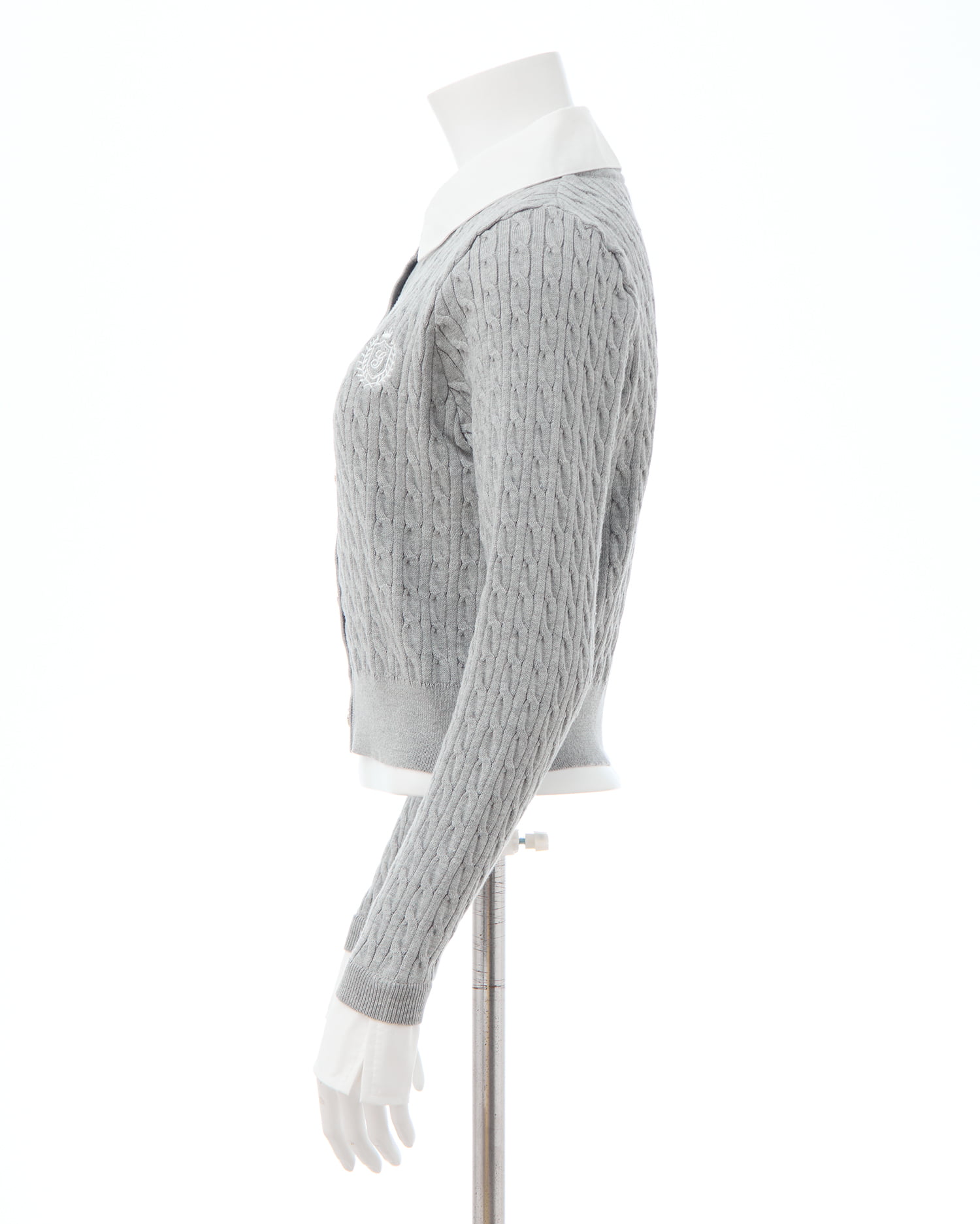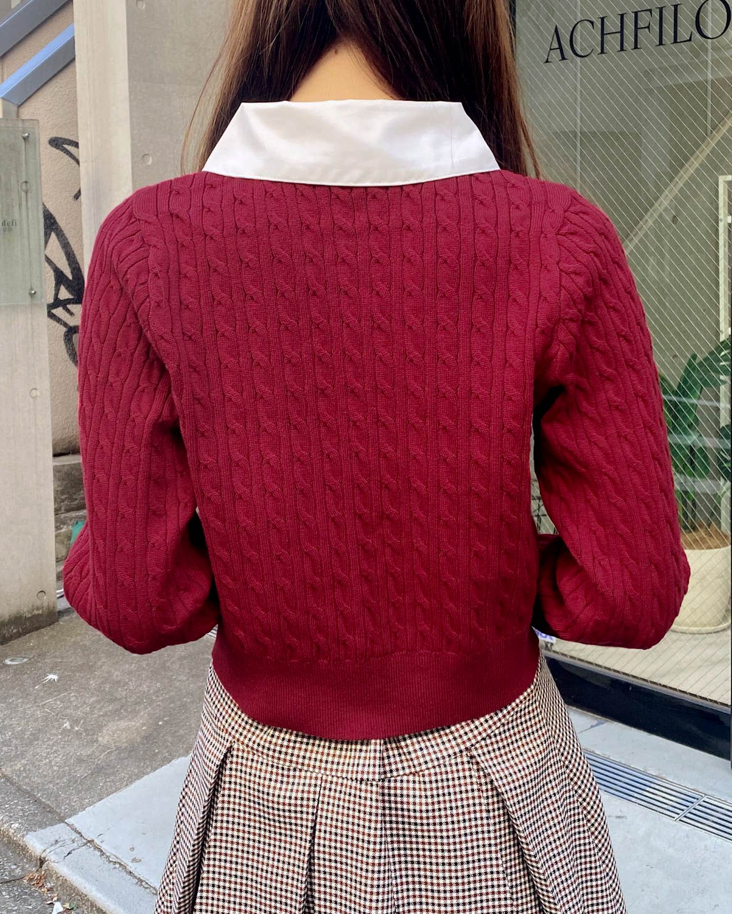 シャツにカーディガンを合わせたかのようなドッキングデザインで、1枚ですっきり着られます。