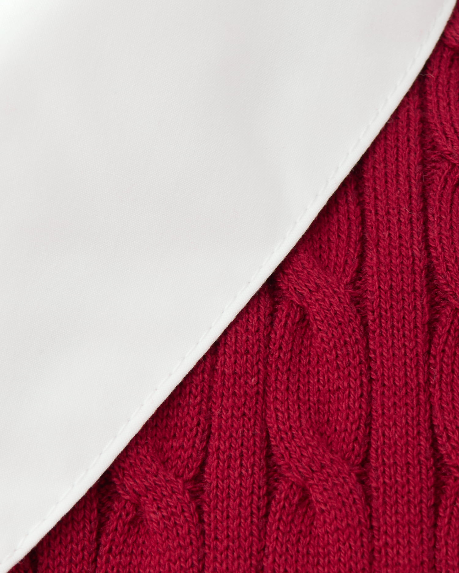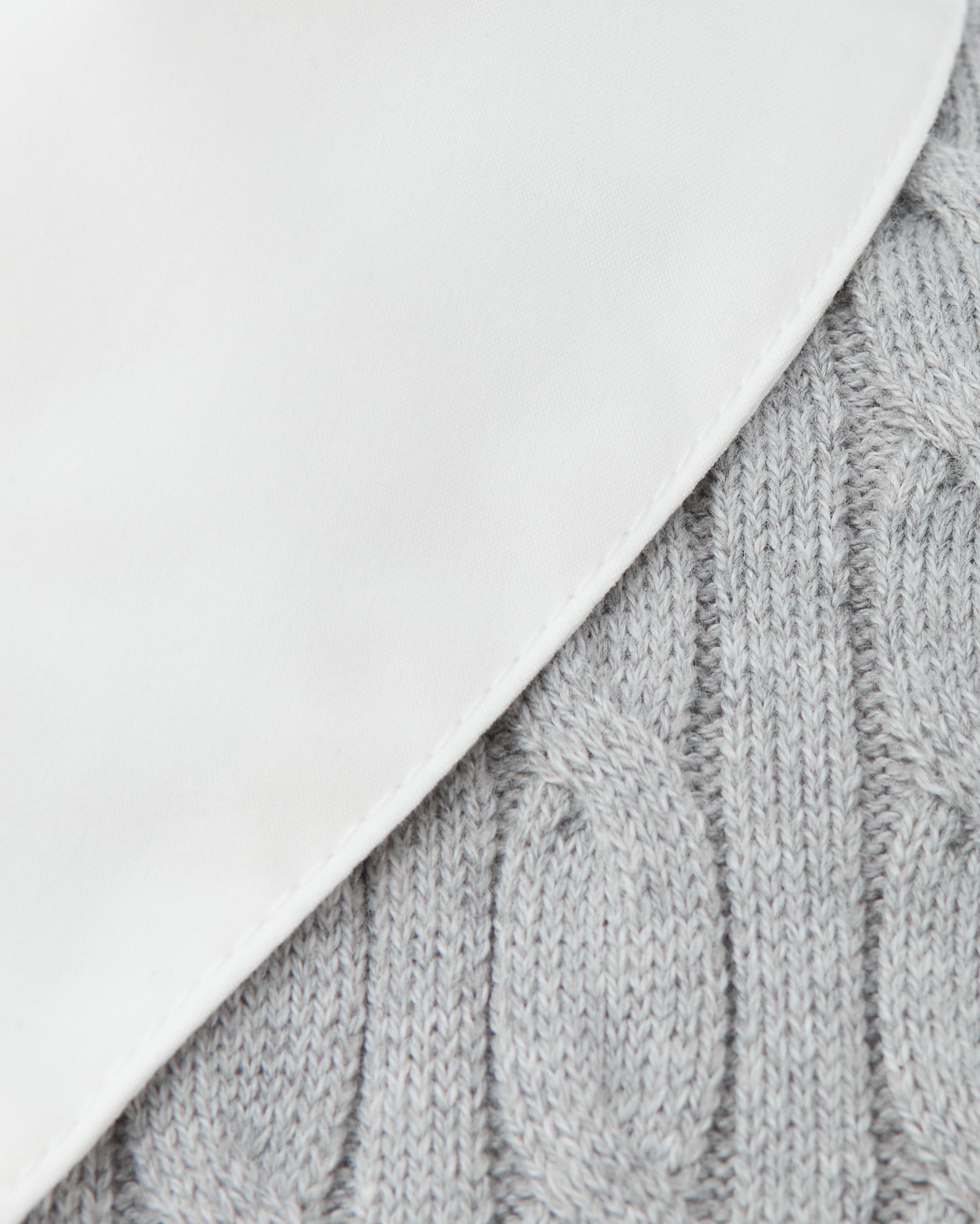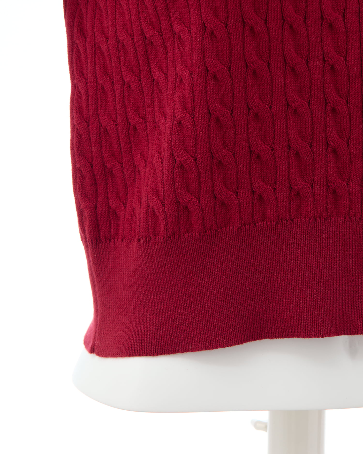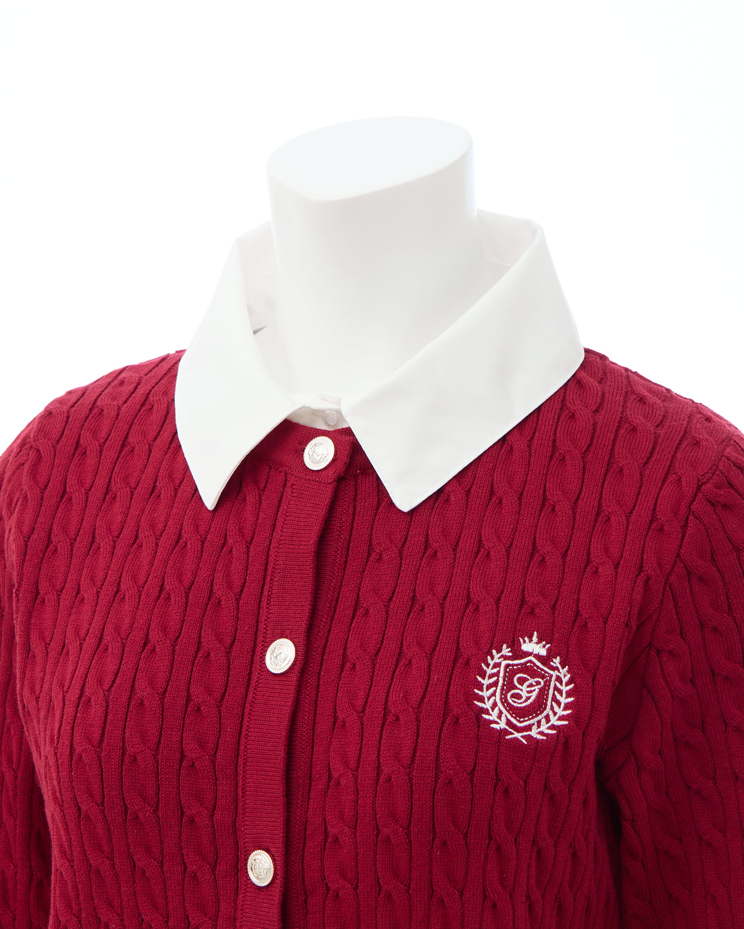 シャツにカーディガンを合わせたかのようなドッキングデザインで、1枚ですっきり着られます。