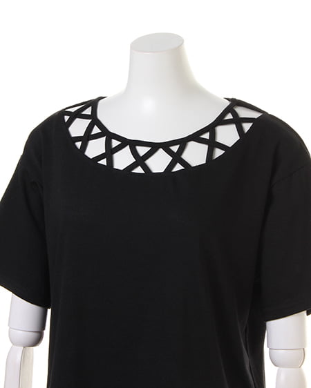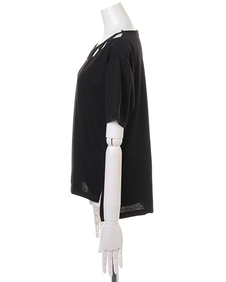ネックラインのスピンドルデザインが、クール&カジュアルな印象のTシャツ。ゆったりとした身頃で、リラックスした着心地を楽しめます。使いやすいカラーをラインナップしているので、1枚持っていると重宝。デコルテラインをキレイに見せ、アクセいらずで表情あるスタイルに仕上がります。