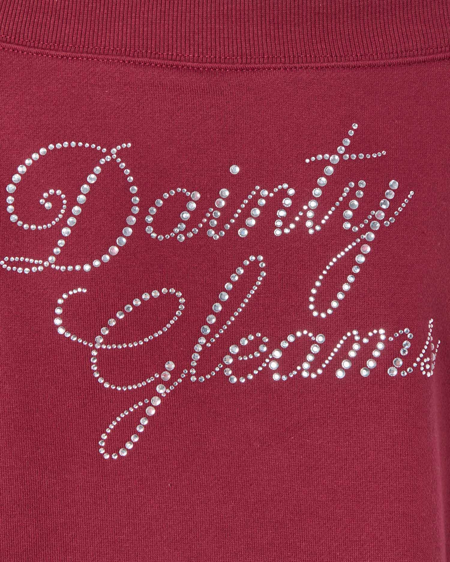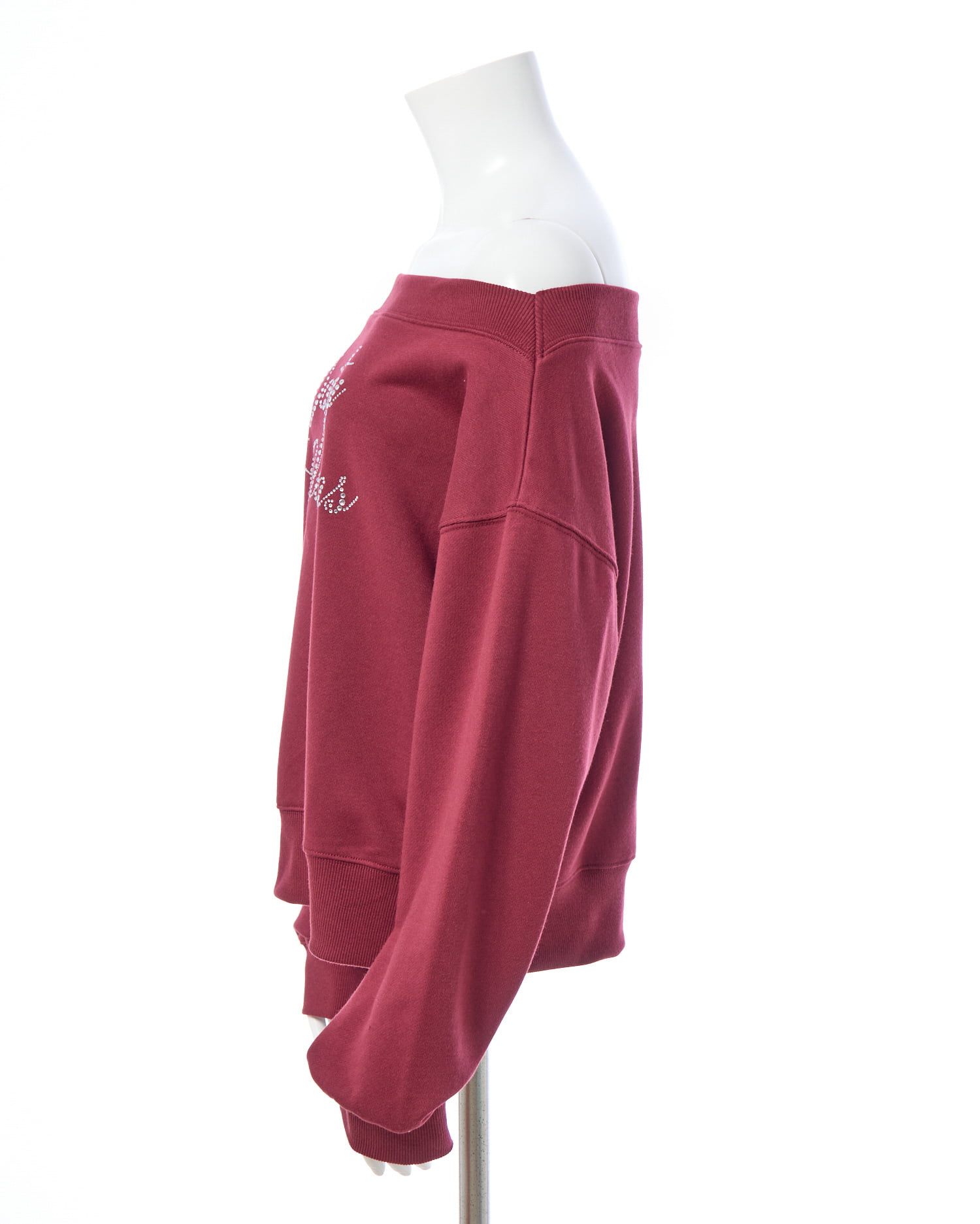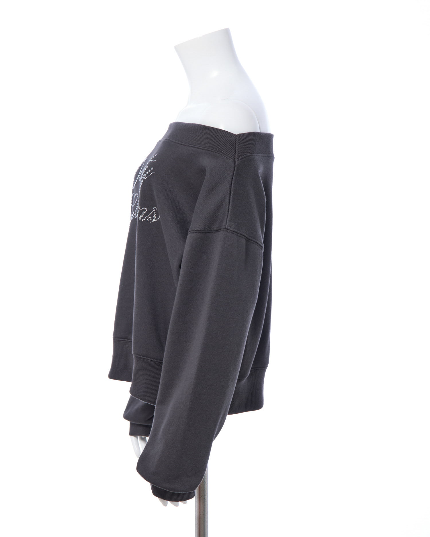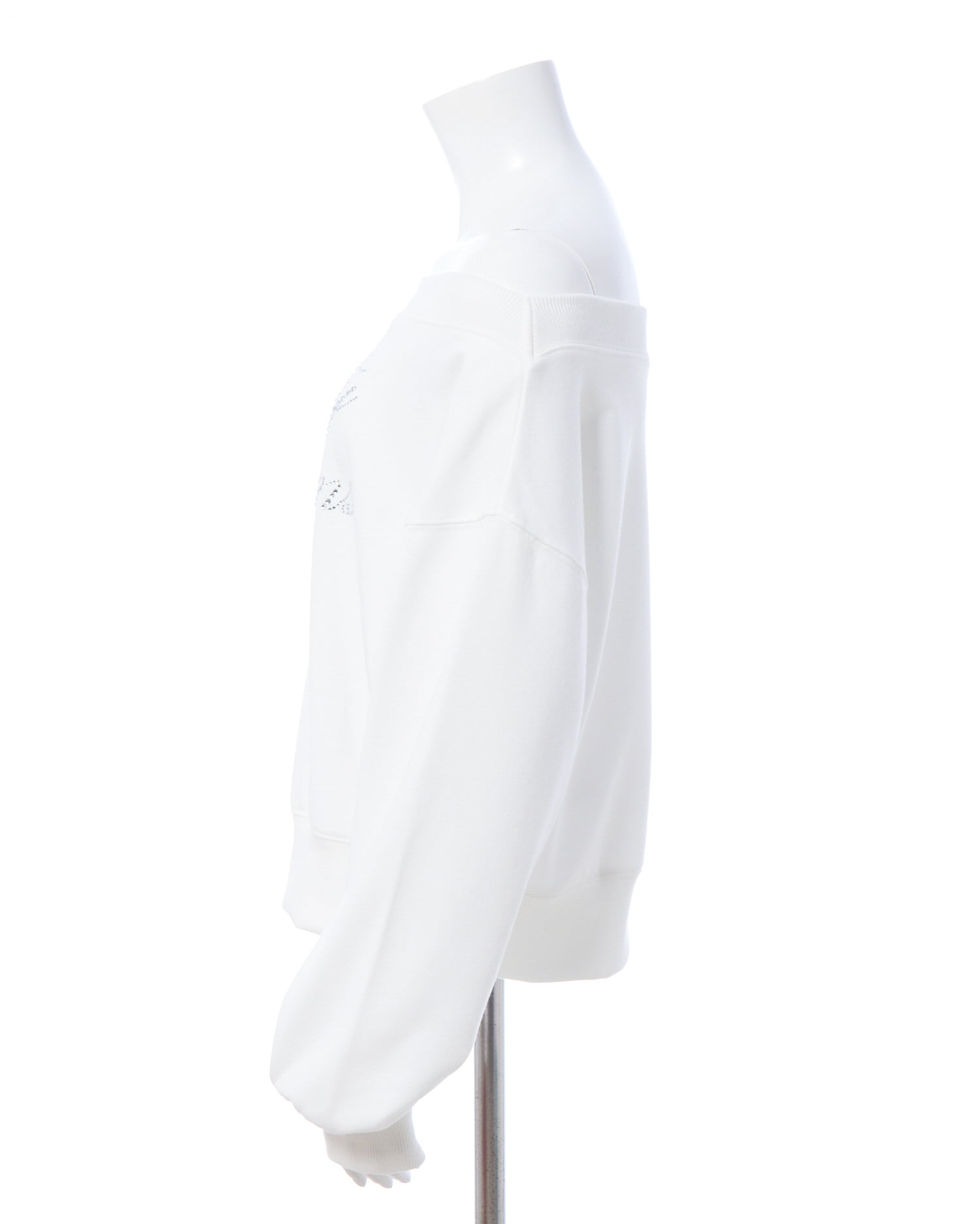 トレンドのラインストーンロゴがあしらわれたトップス。
