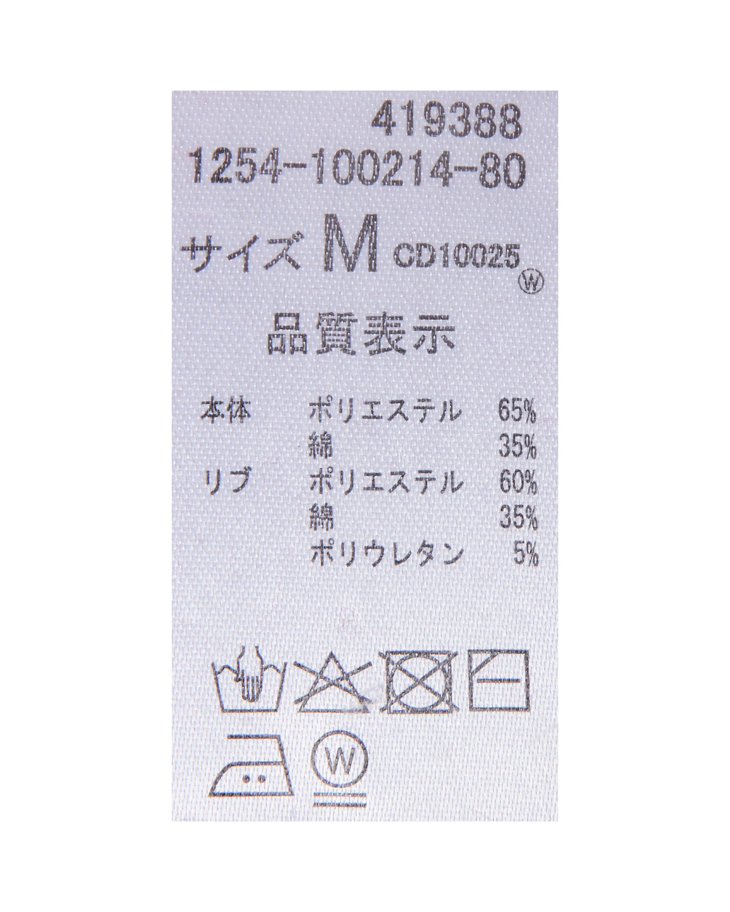 原産国 中国 本体 ポリエステル65% 本体 綿35% リブ ポリエステル60% リブ 綿35% リブ ポリウレタン5%