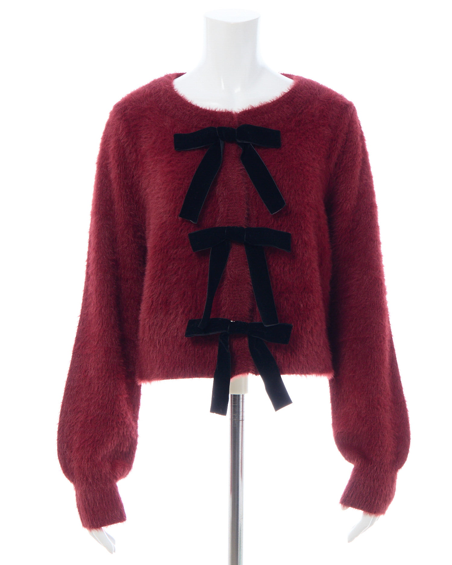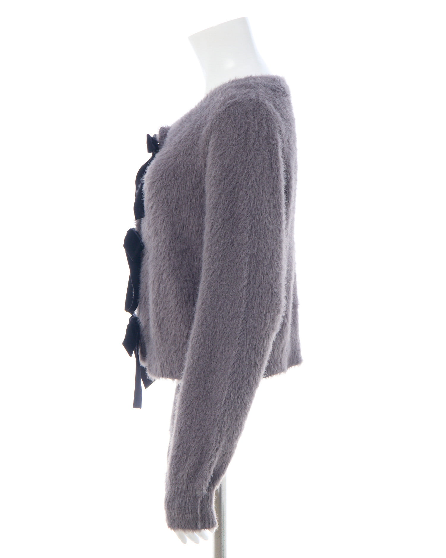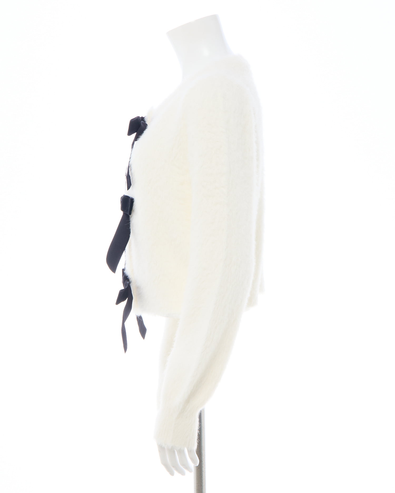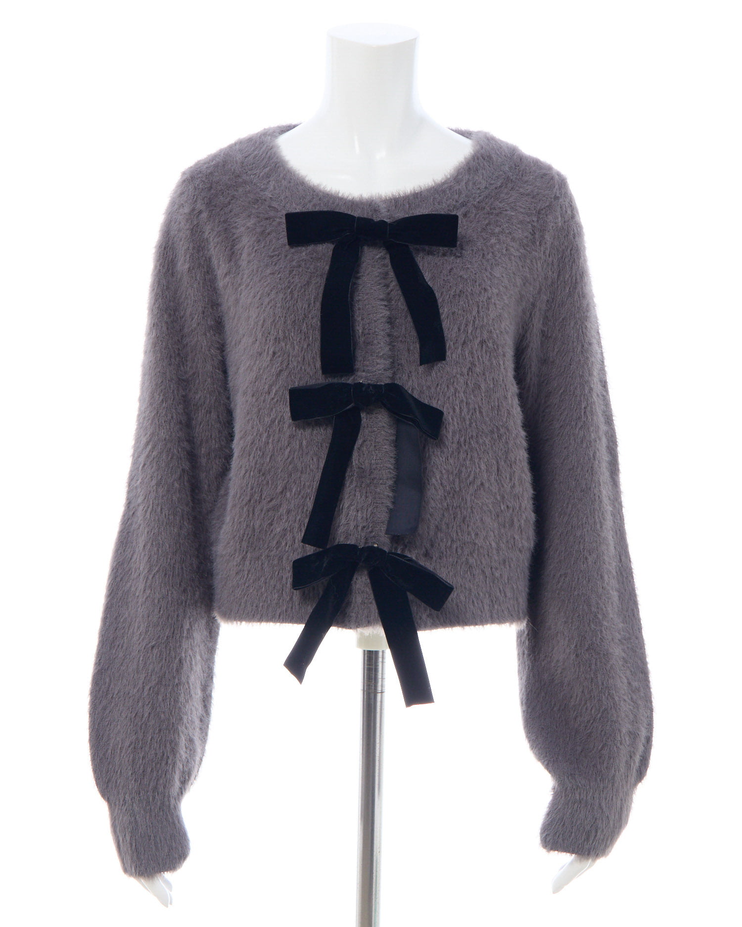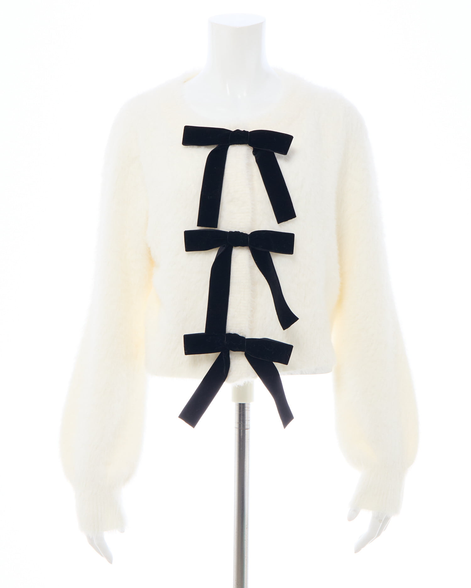 【贅沢にあしらわれたベロアリボンがキュートなフェザーニットカーデ♡】