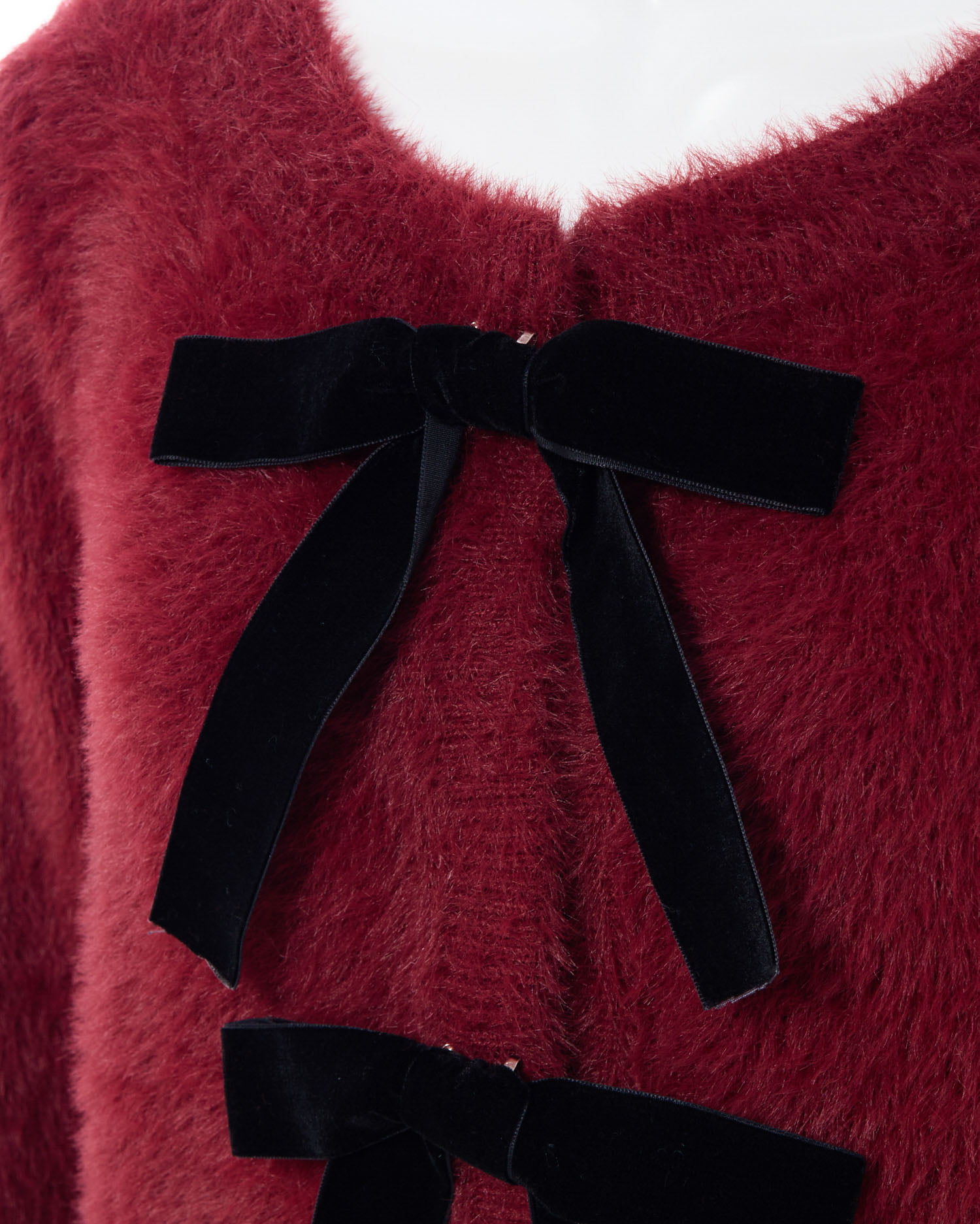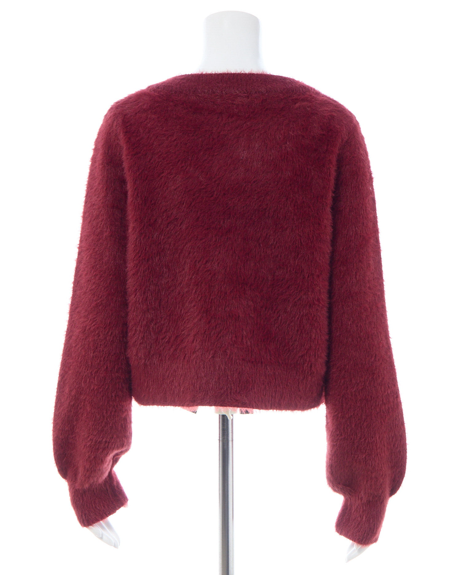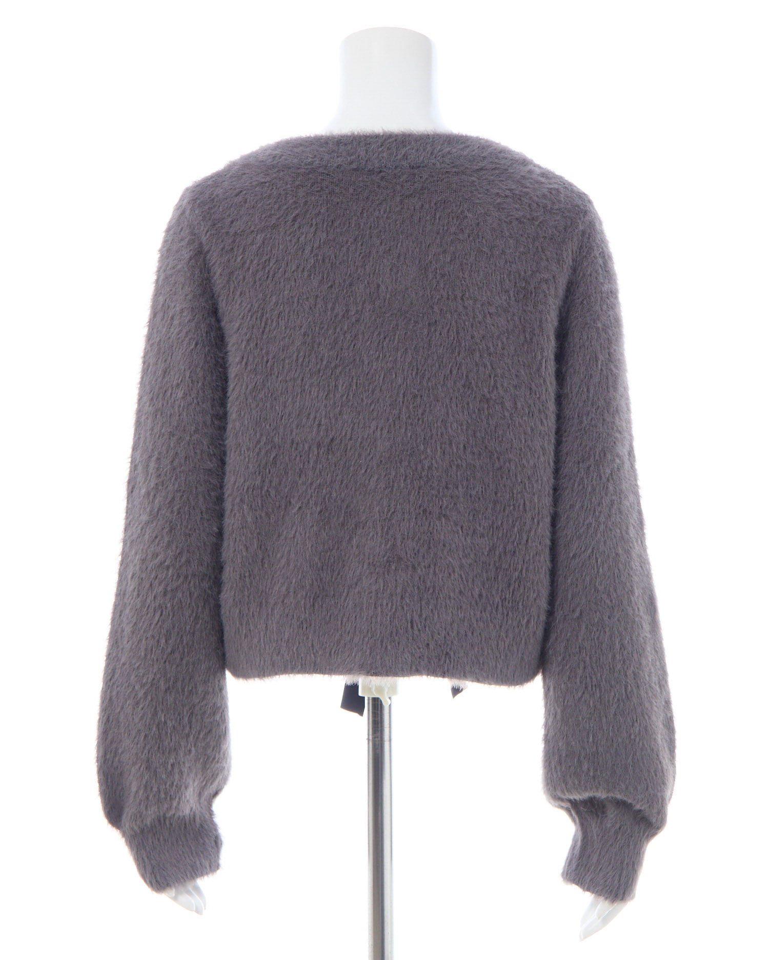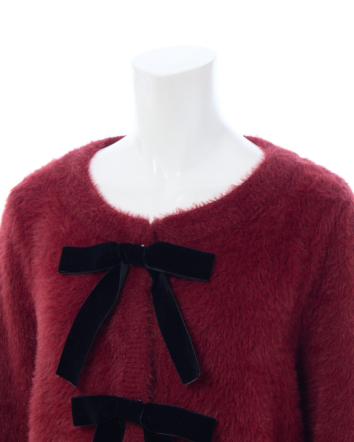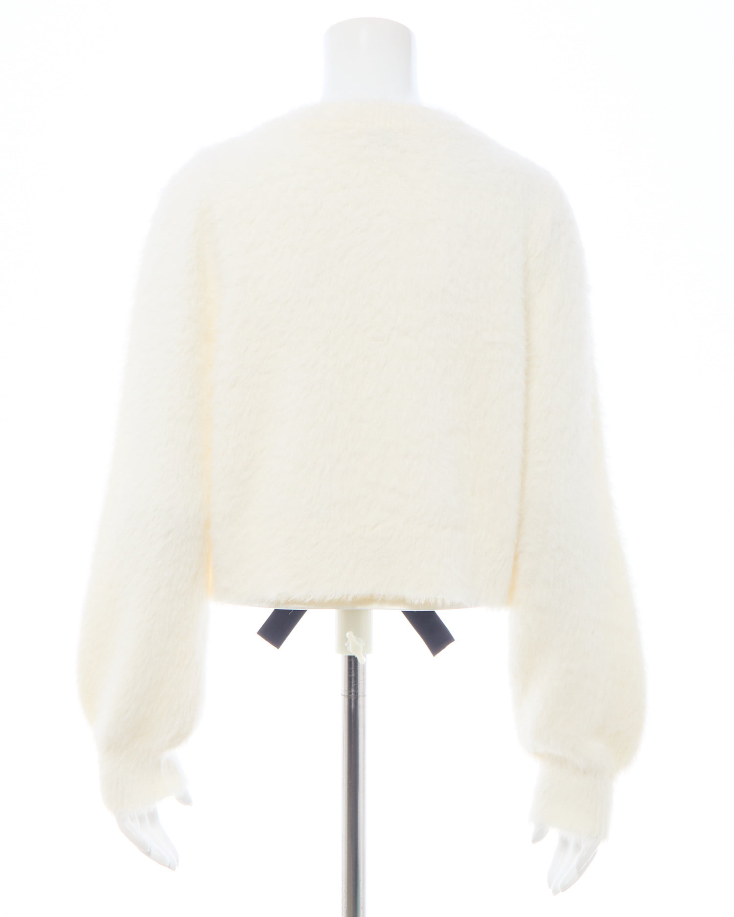 【贅沢にあしらわれたベロアリボンがキュートなフェザーニットカーデ♡】