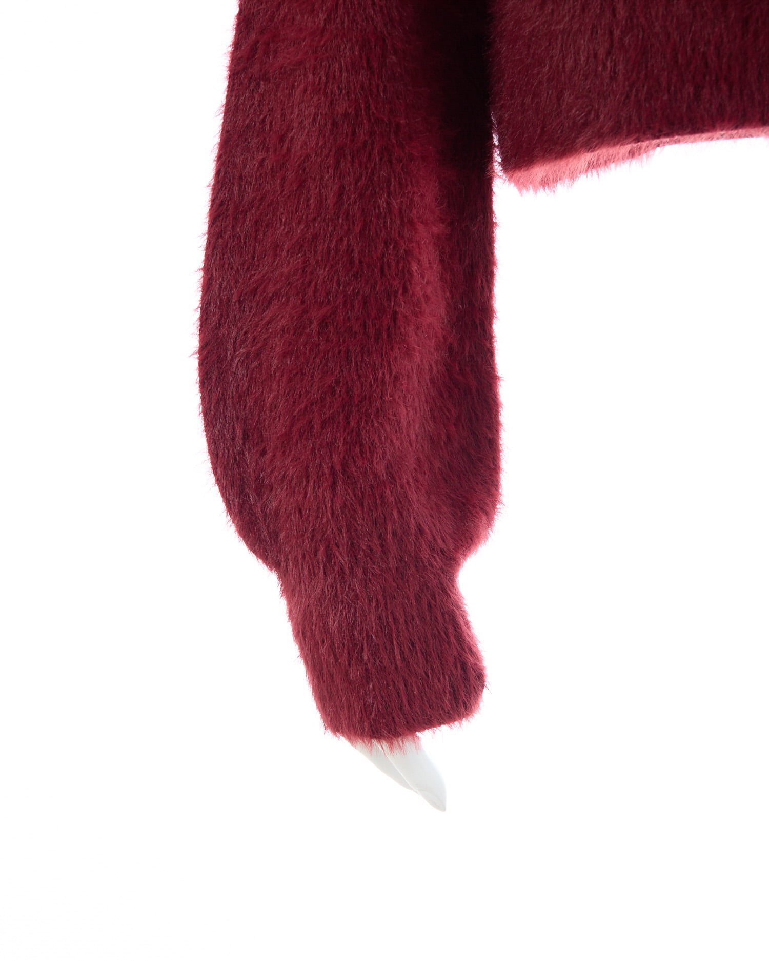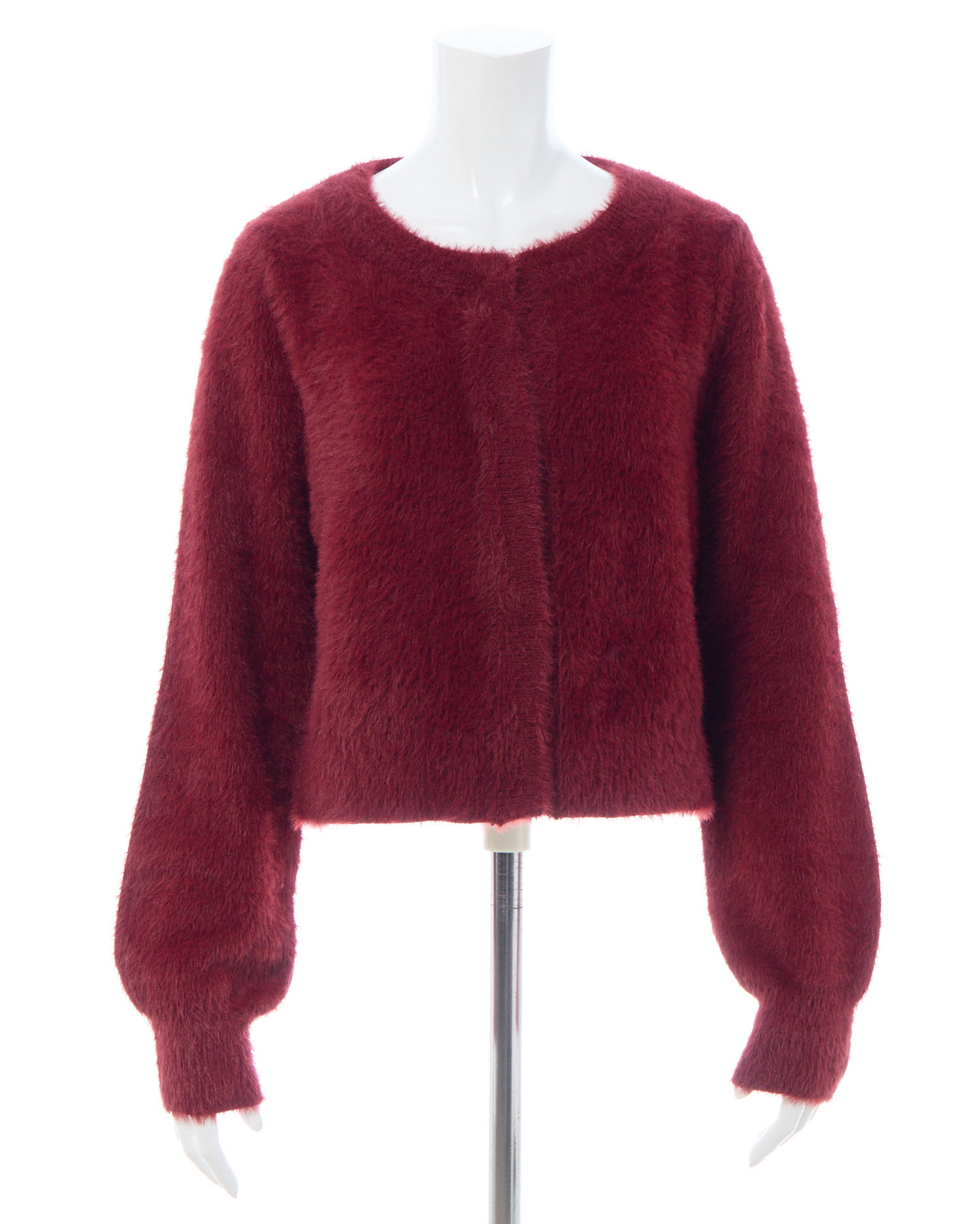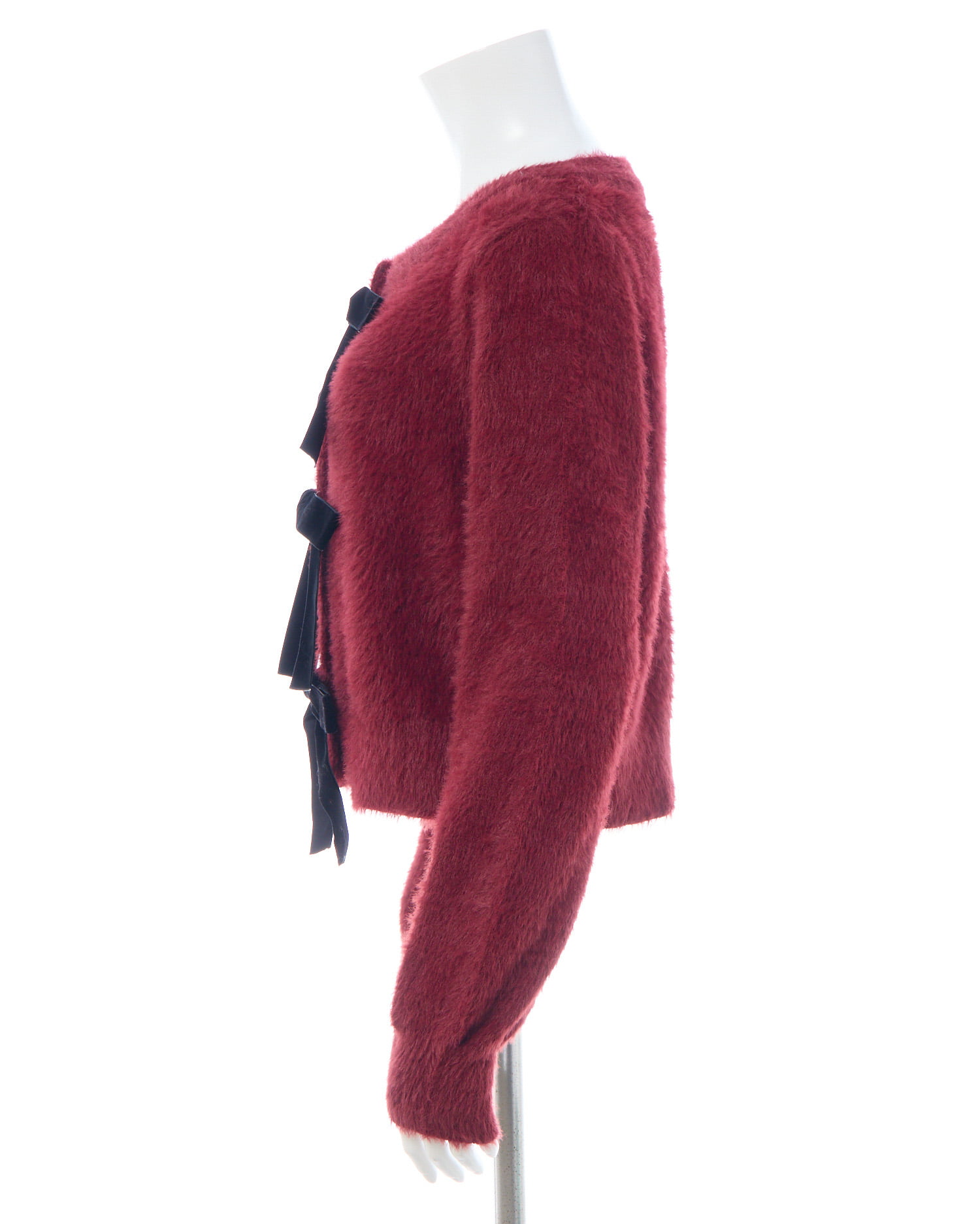 • INGNI(イング) ベロアリボンフェザーニットカーディガン ボルドー