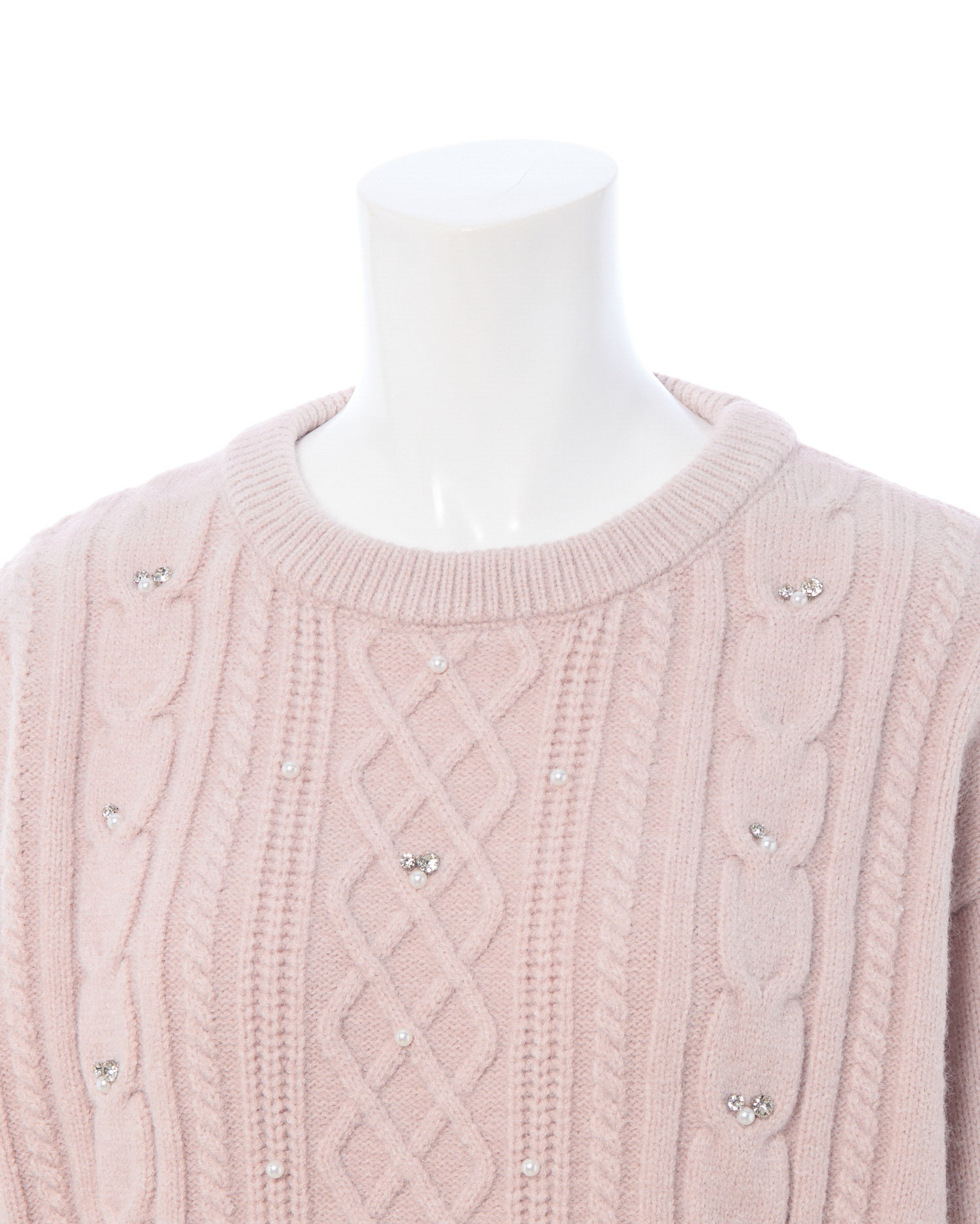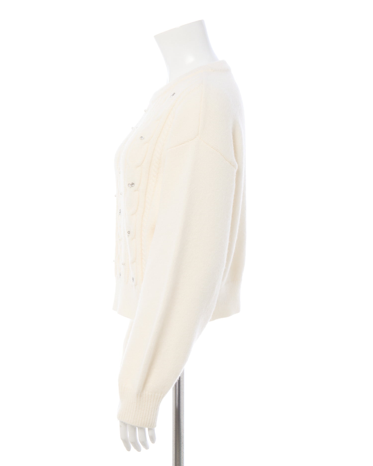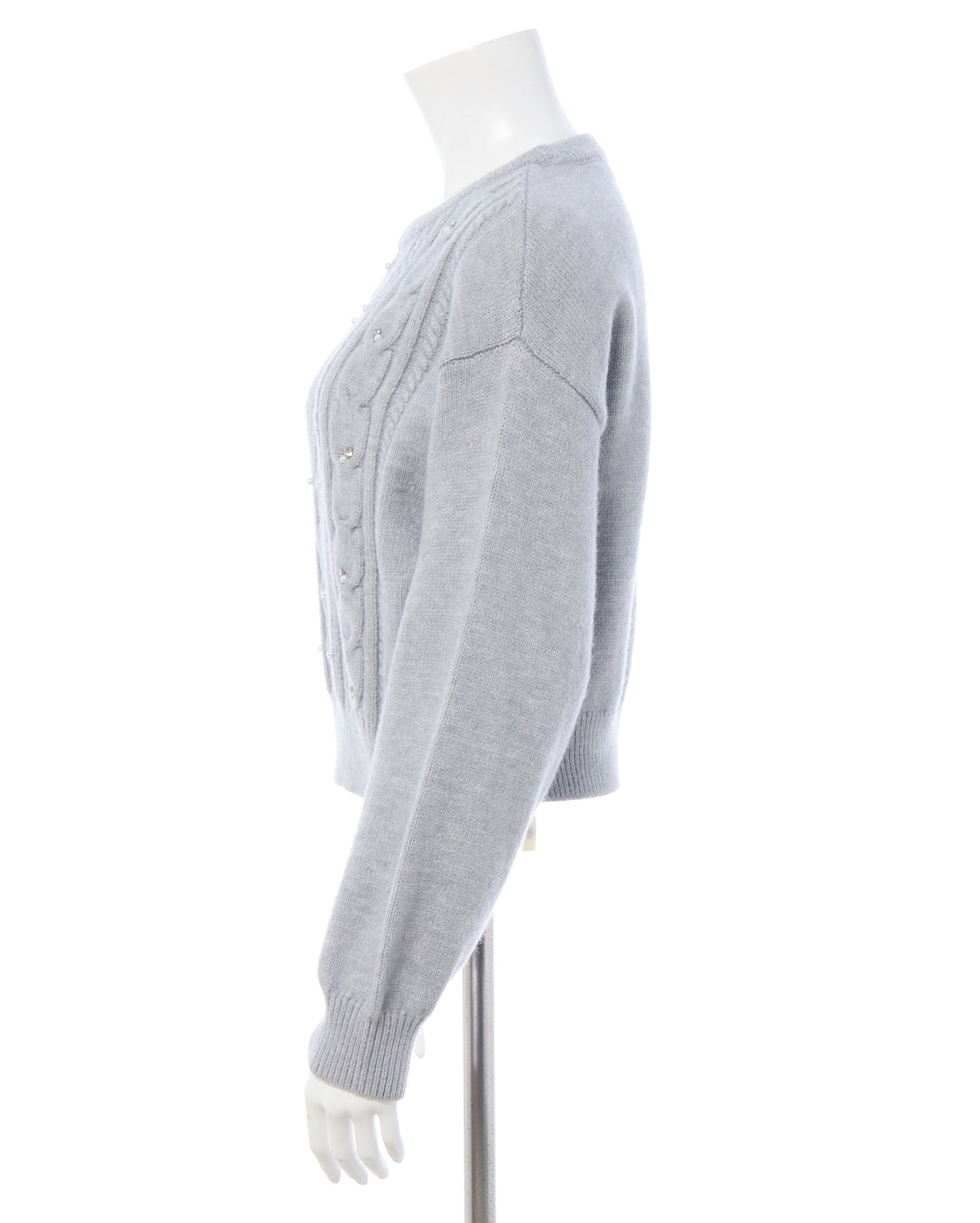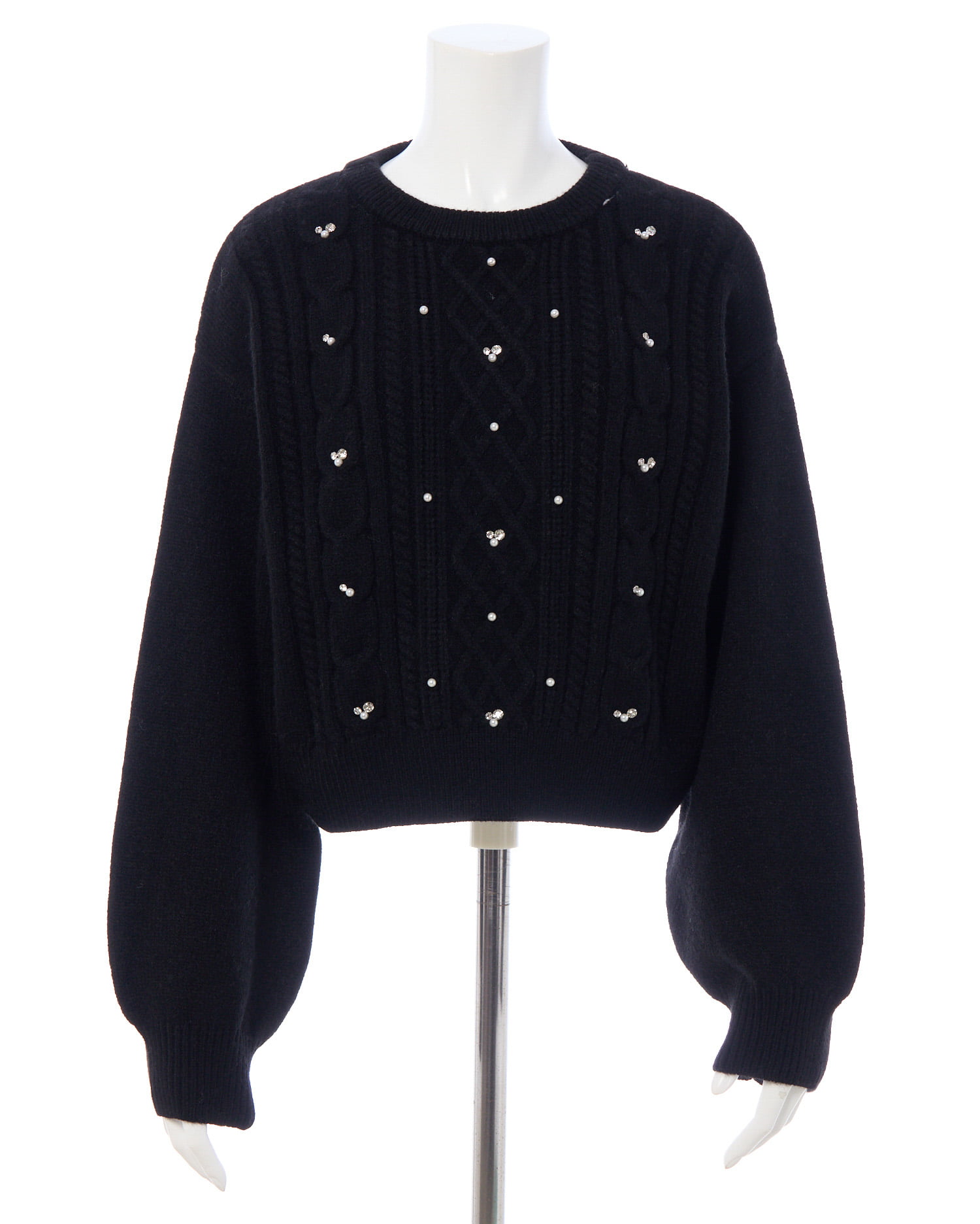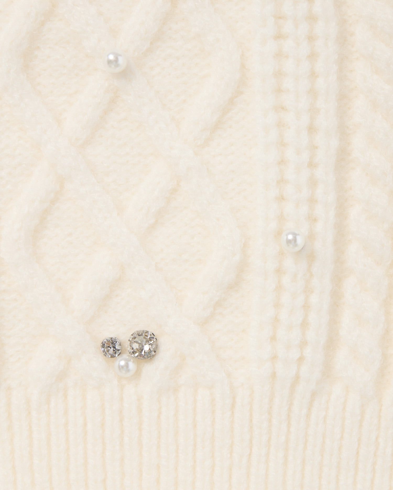【ナチュラルなケーブル編みニットにビジューをあしらって華やかに】