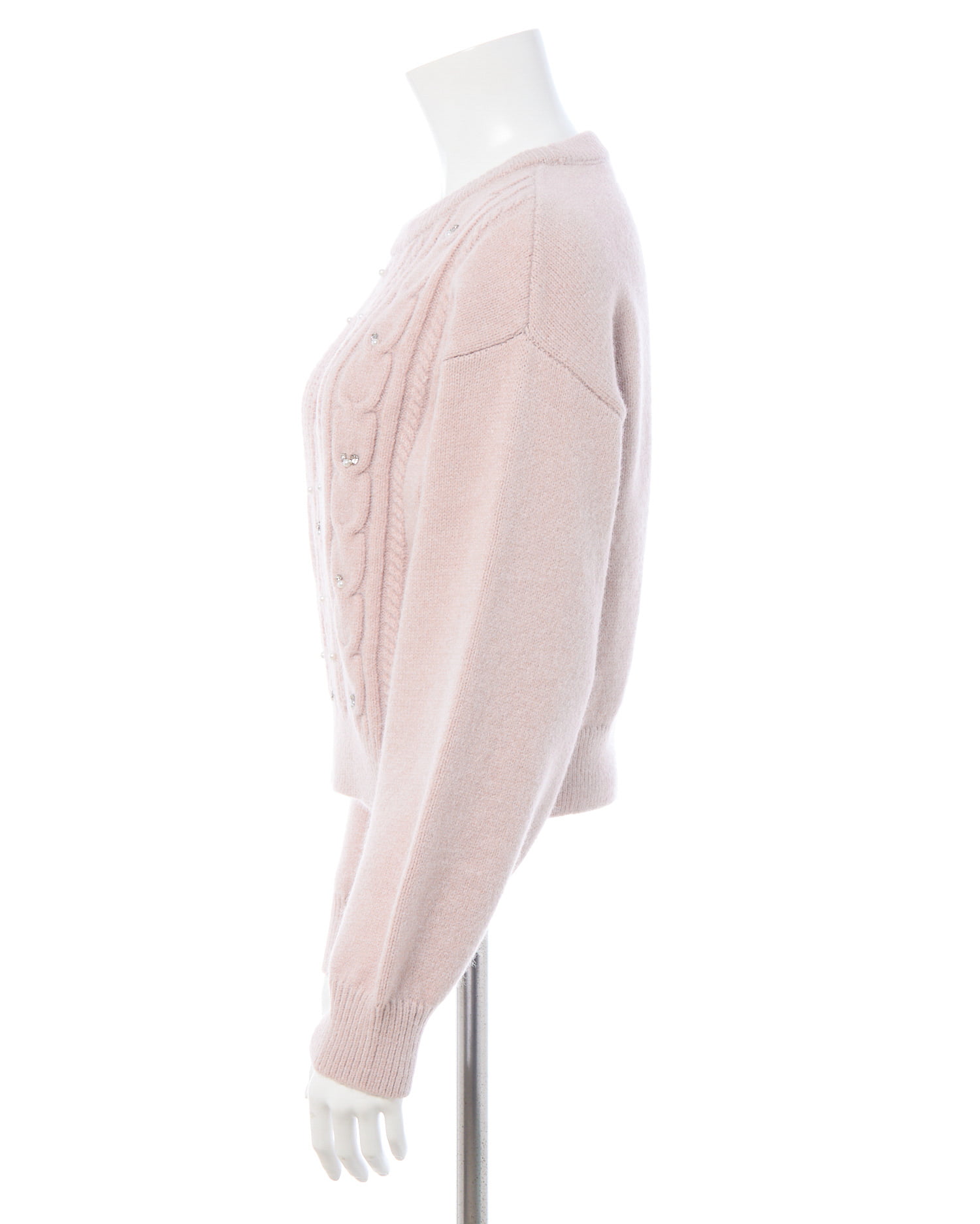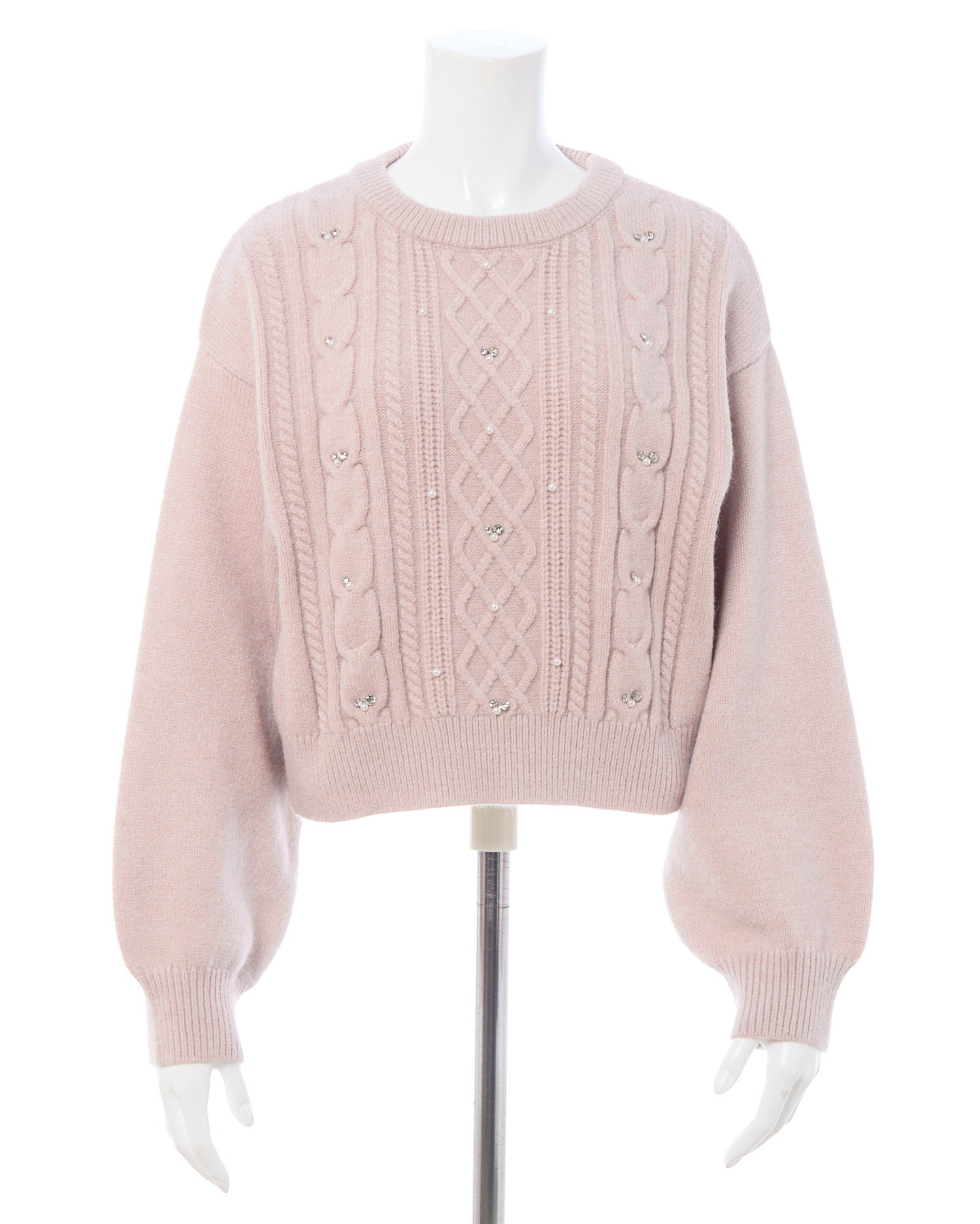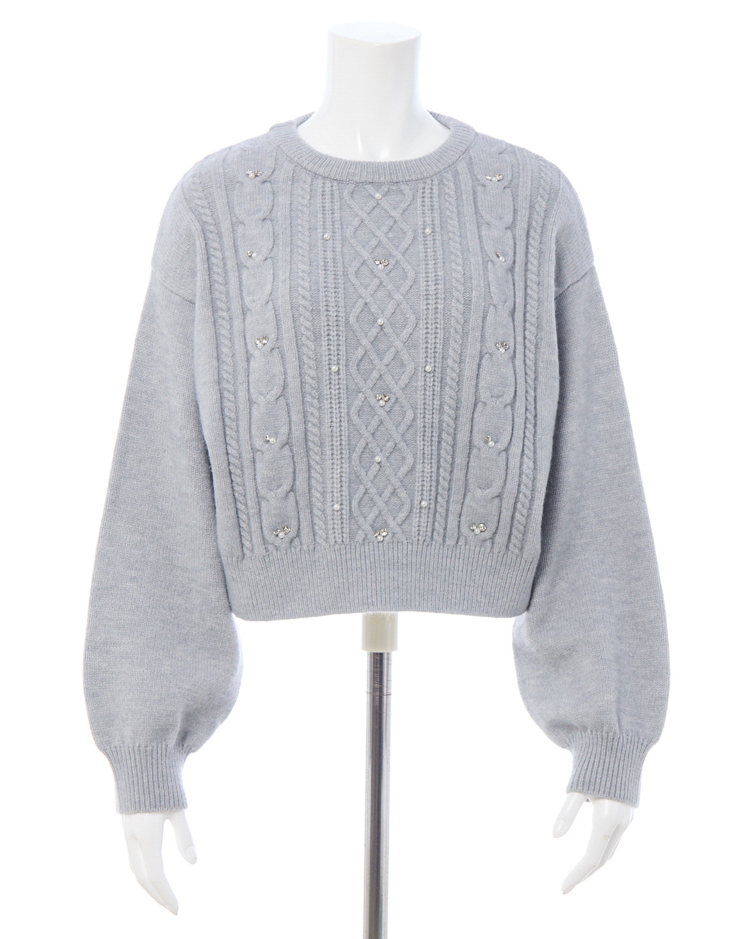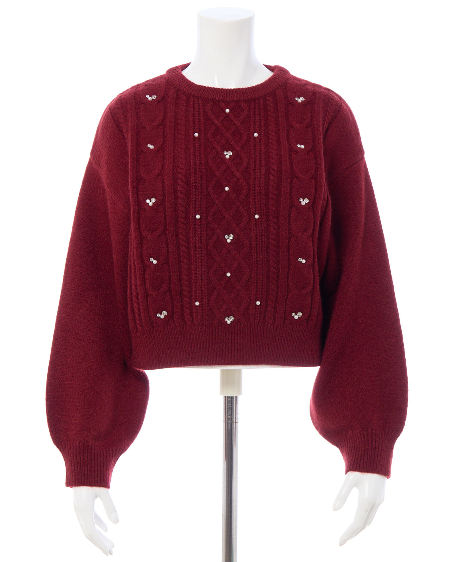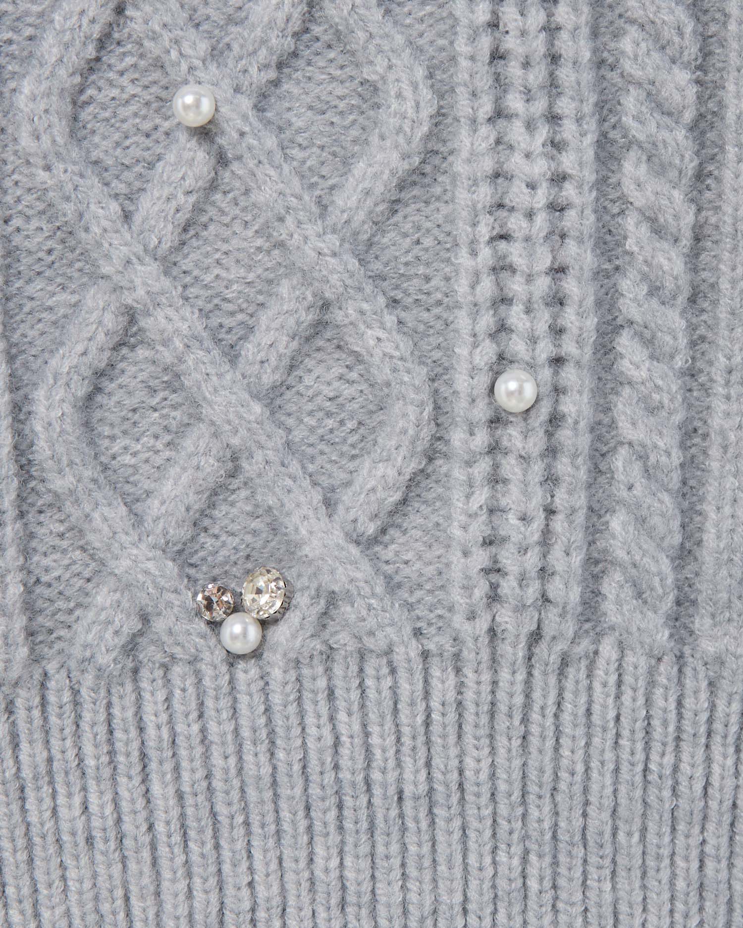 【ナチュラルなケーブル編みニットにビジューをあしらって華やかに】