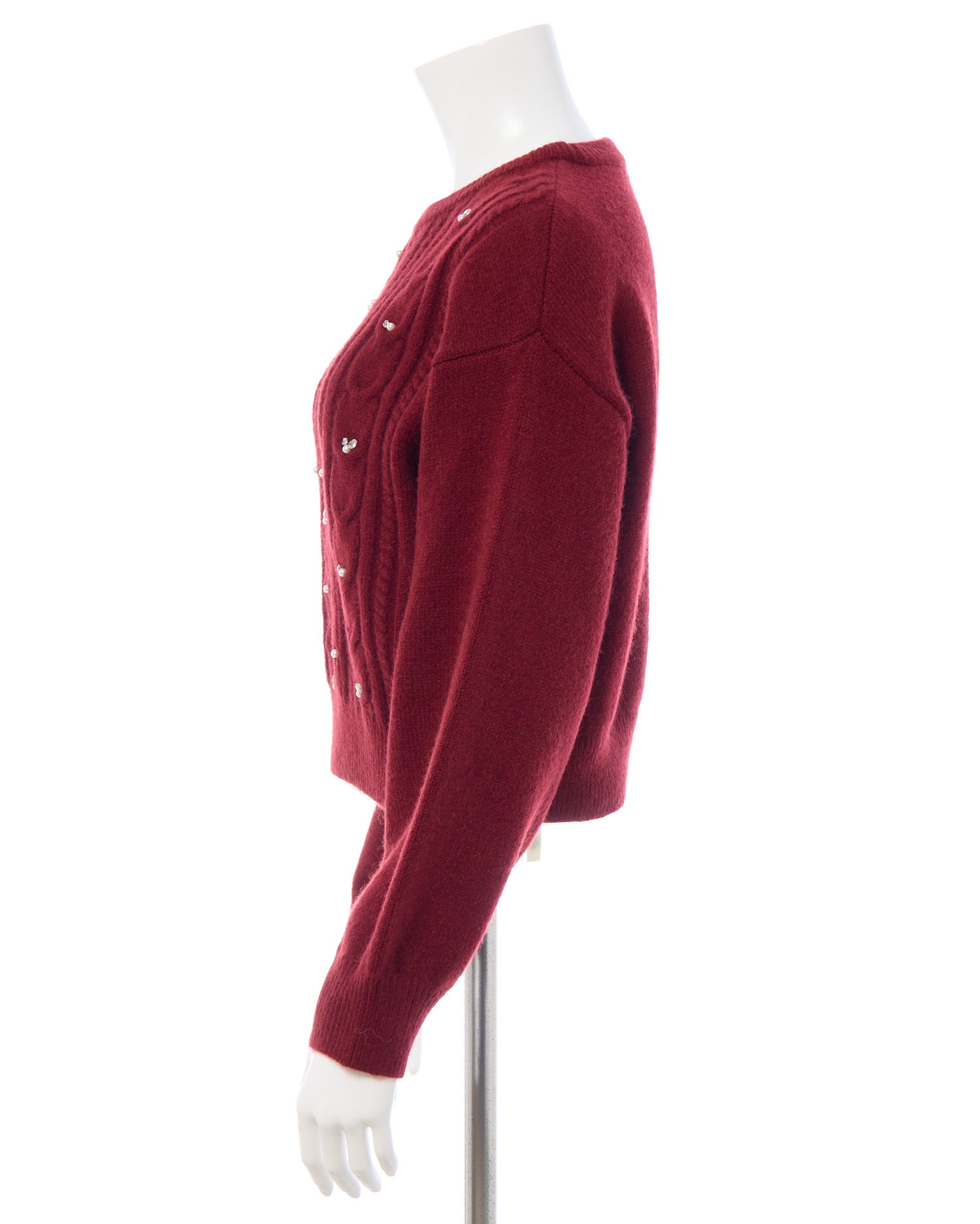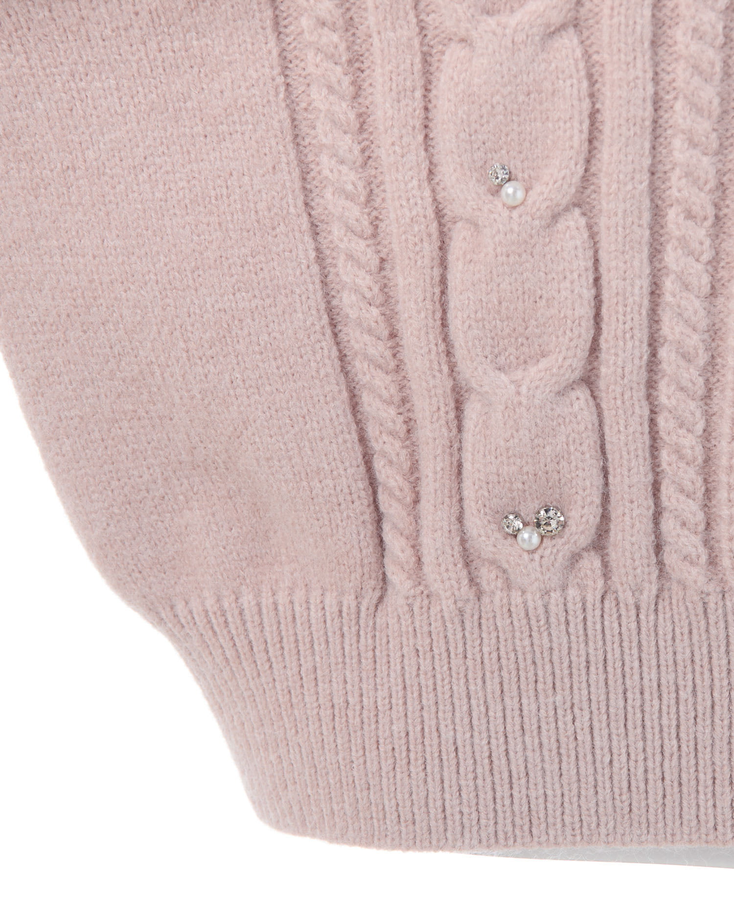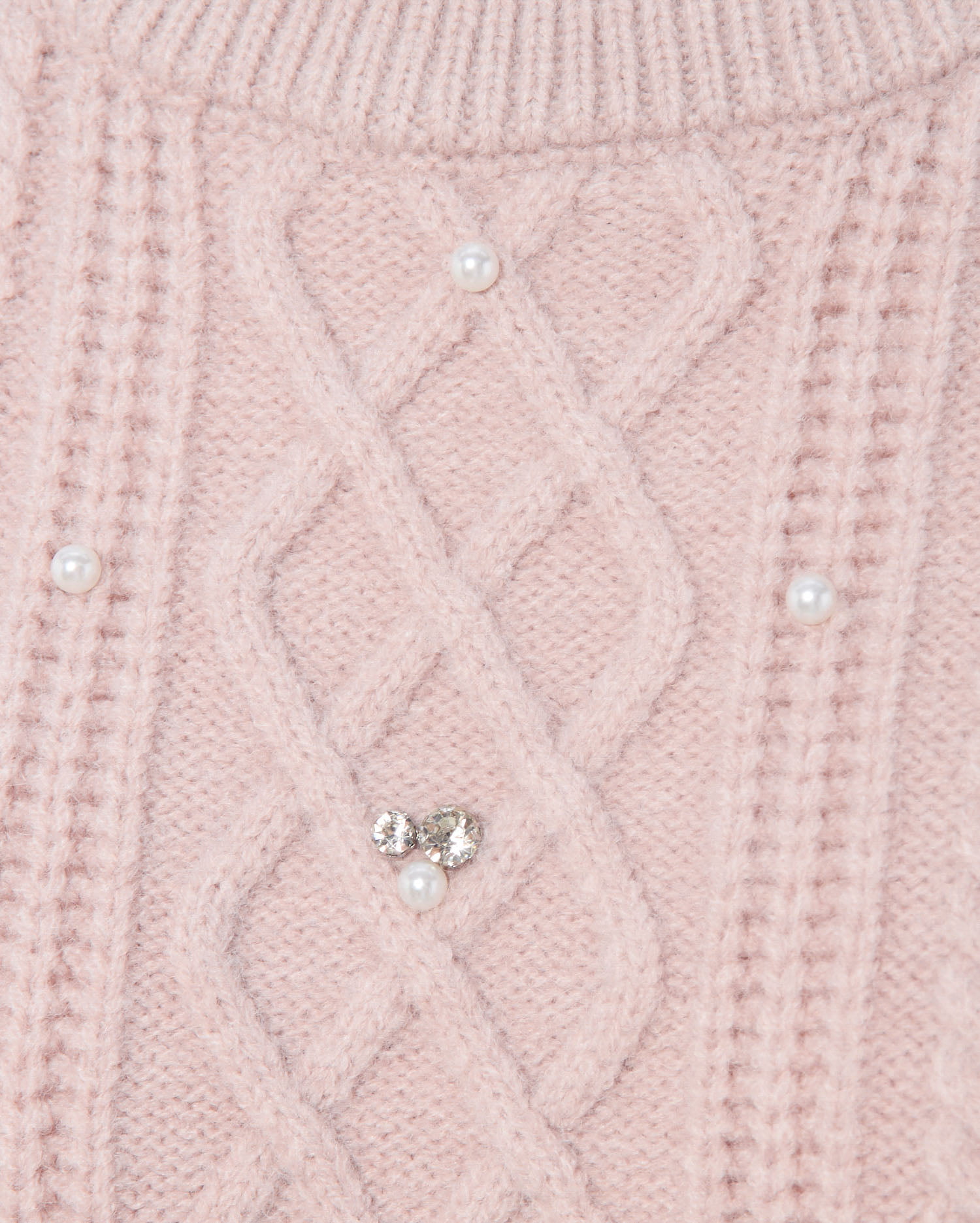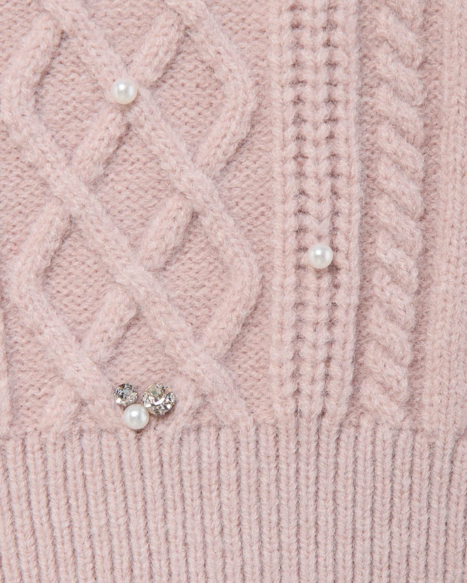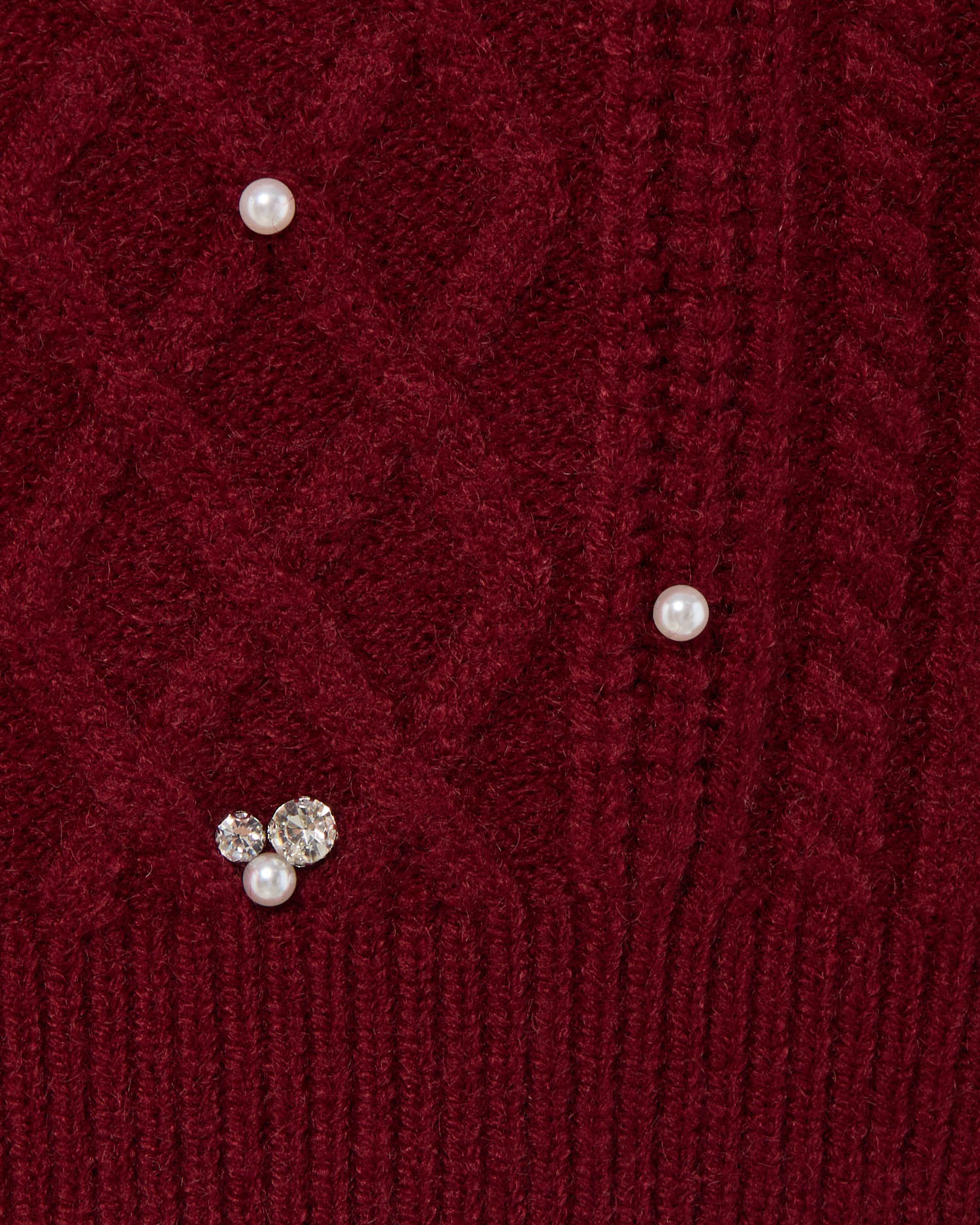【ナチュラルなケーブル編みニットにビジューをあしらって華やかに】