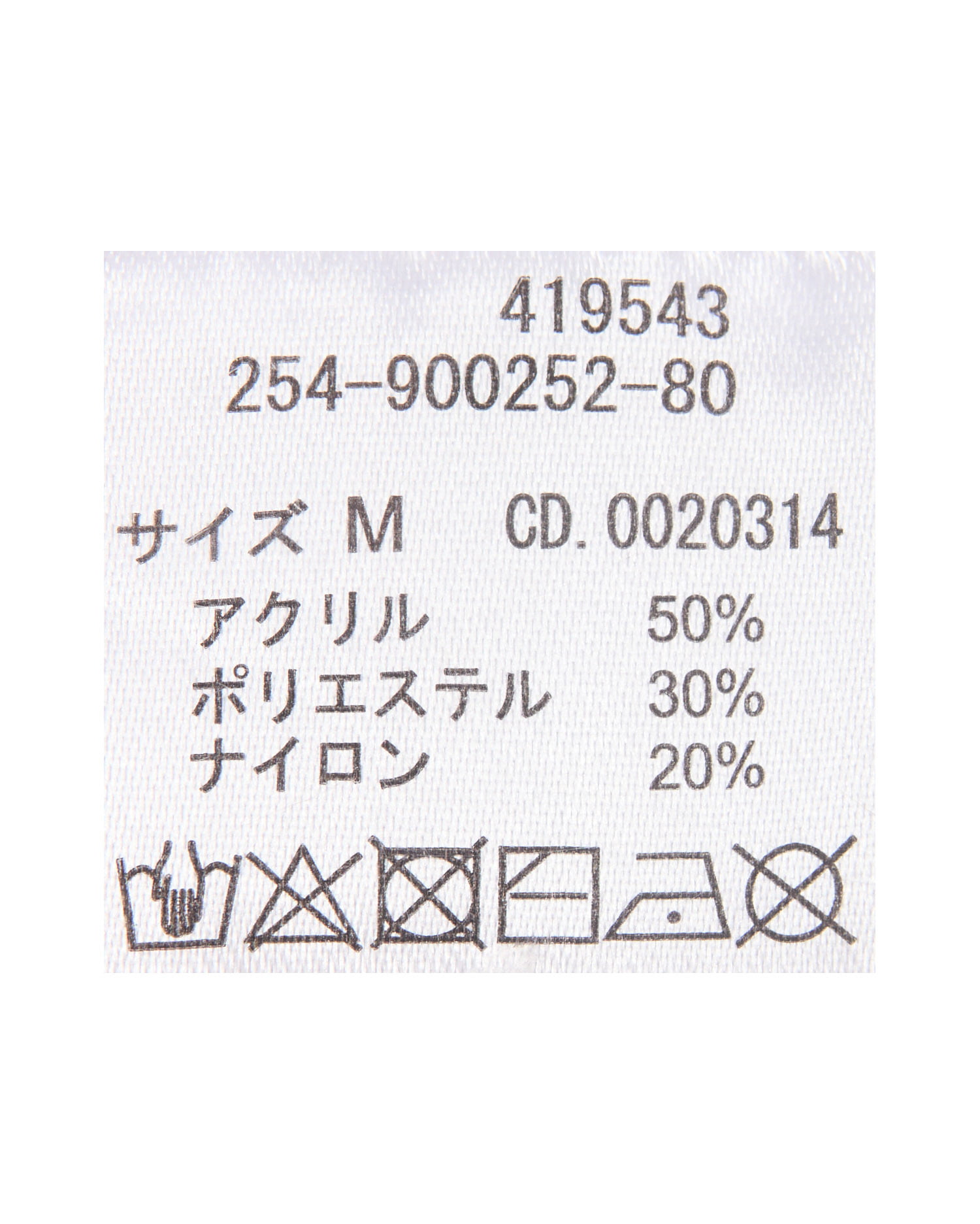 アクリル50% ポリエステル30% ナイロン20%
