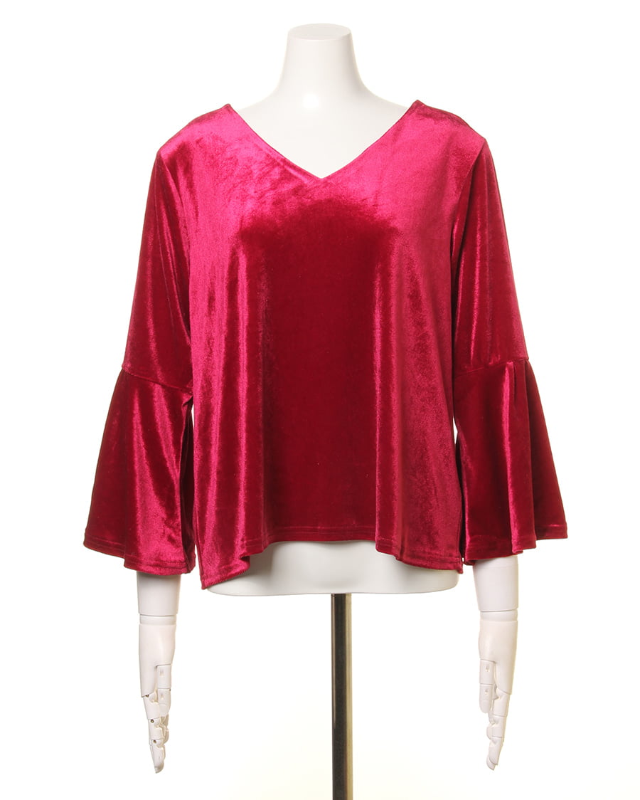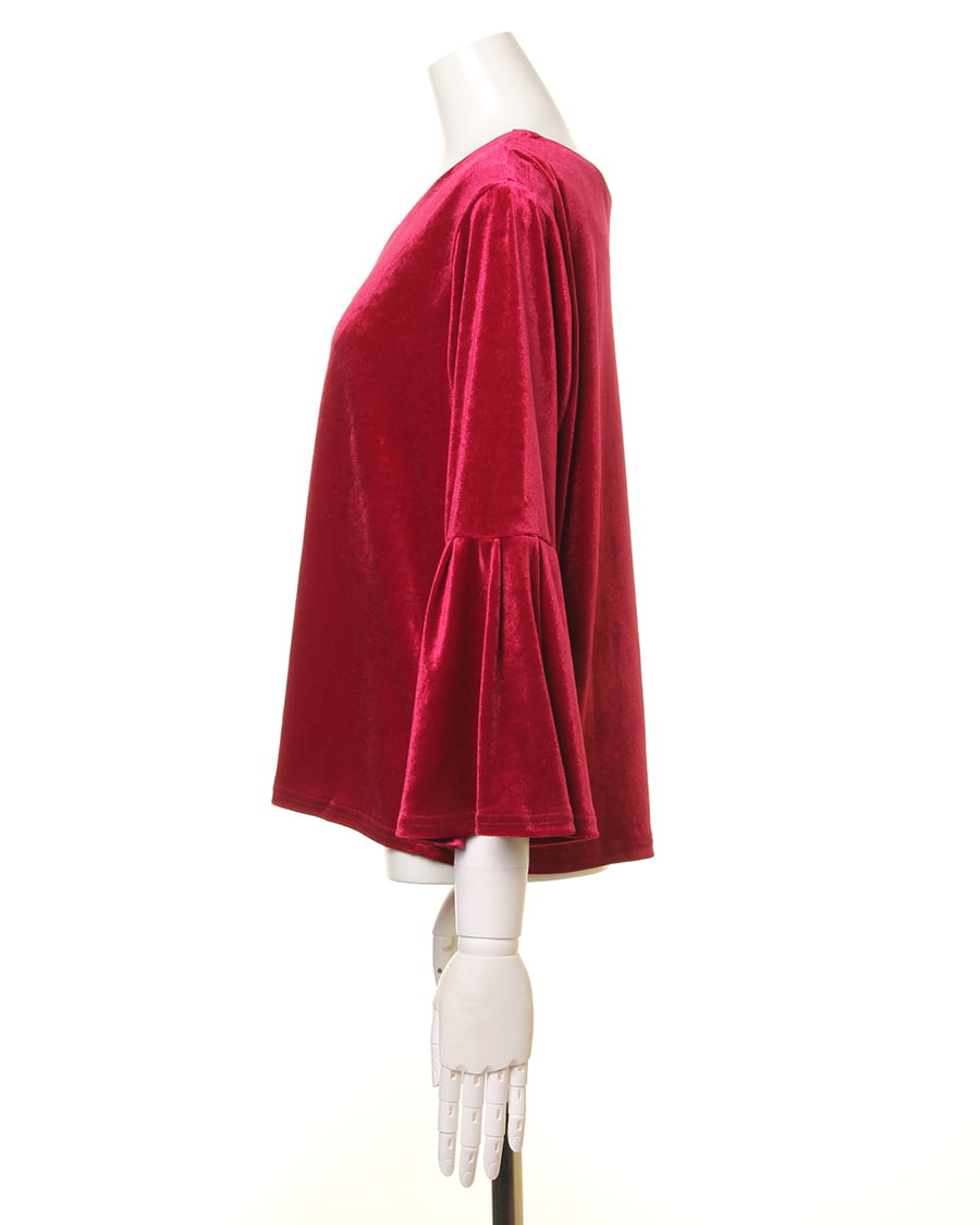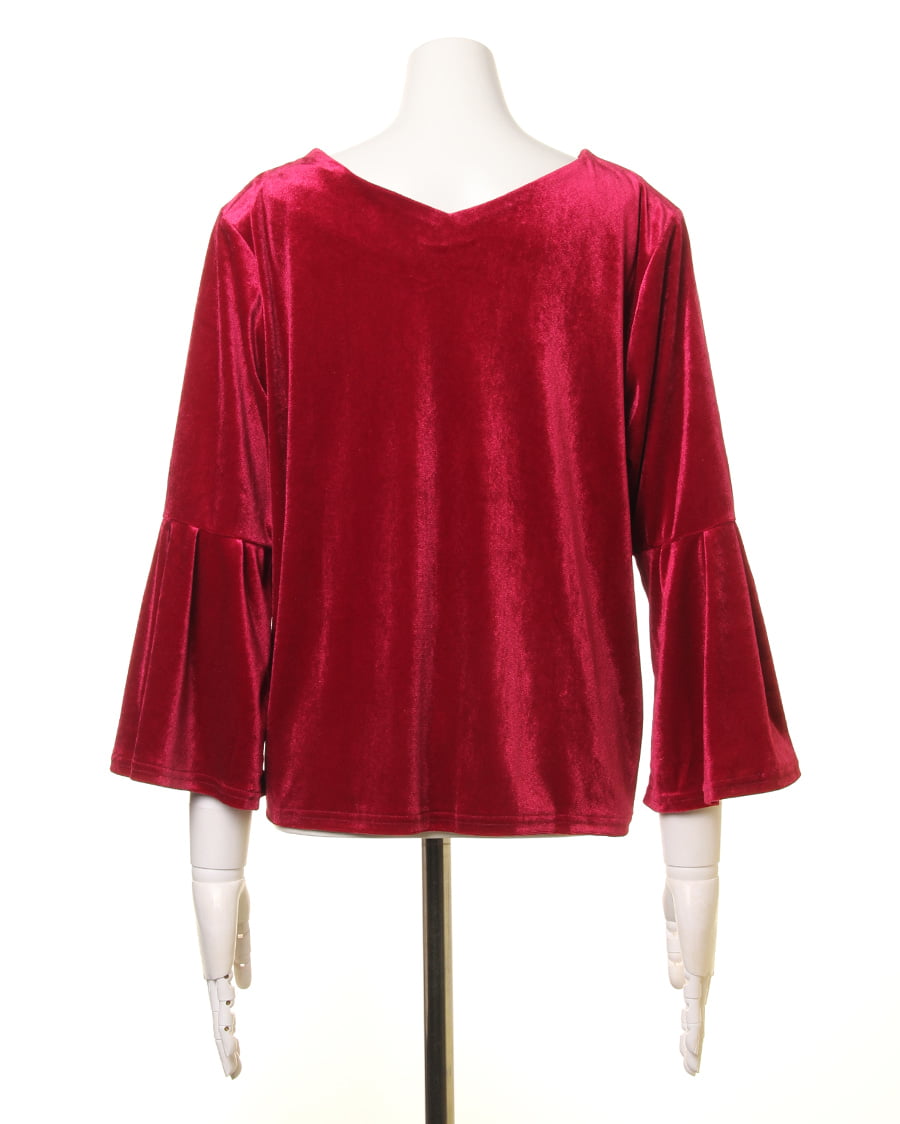 【1174-142255 ブライトベロア袖タックフレアー/TOPS】