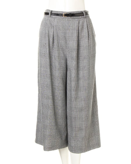 【1174-342130 ベルト付グレンチェック柄ガウチョ/パンツ】