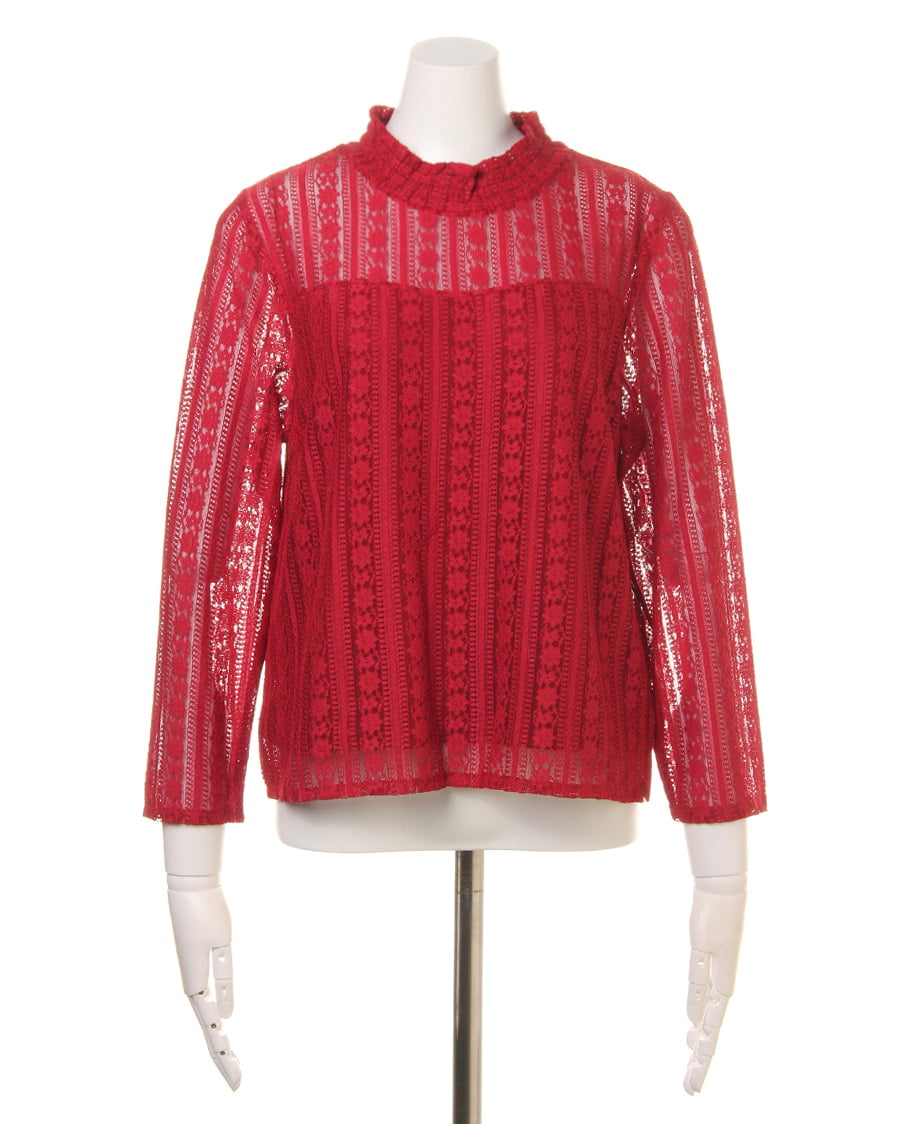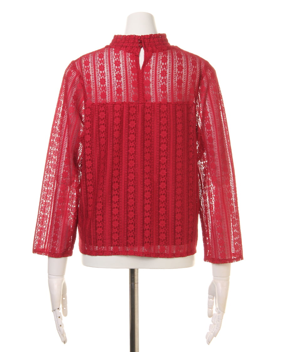 シャーリングハイネックストライプレース9分袖とサッシュ付TRイレヘムスカートのSET☆