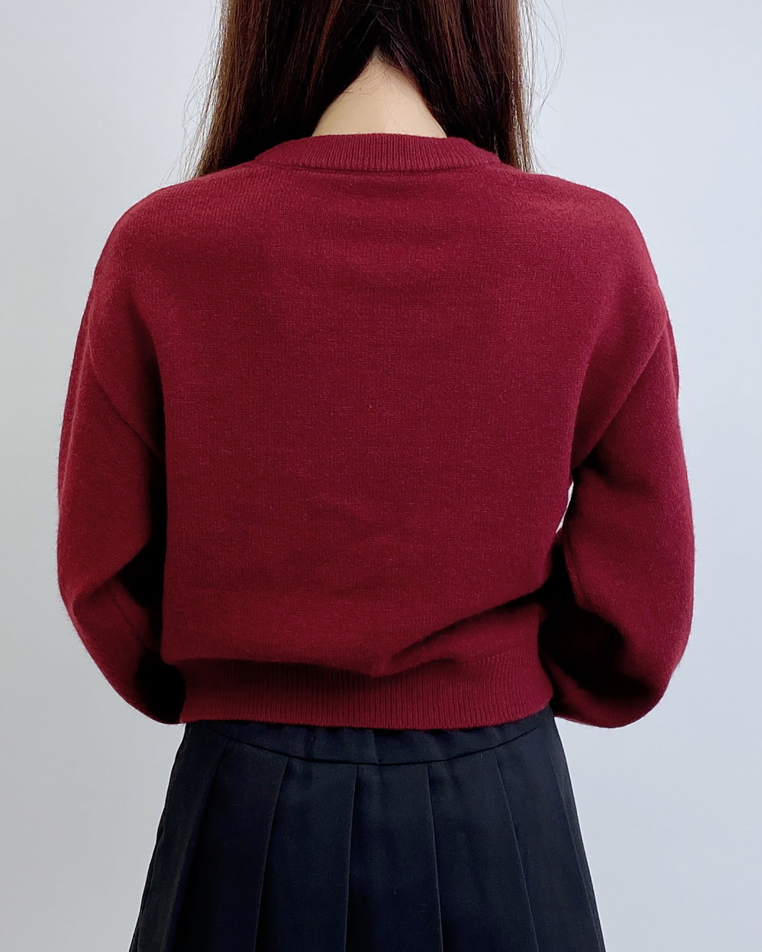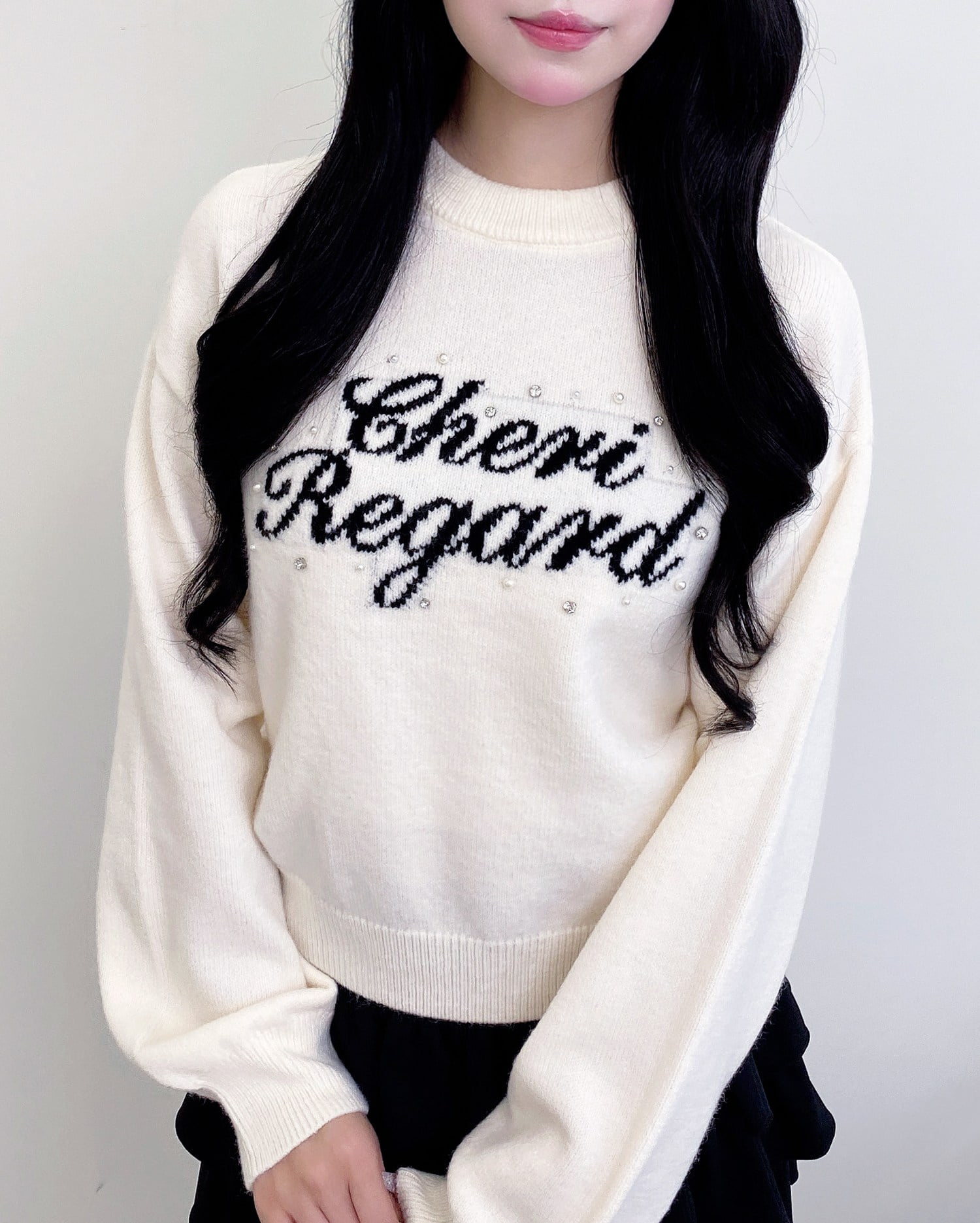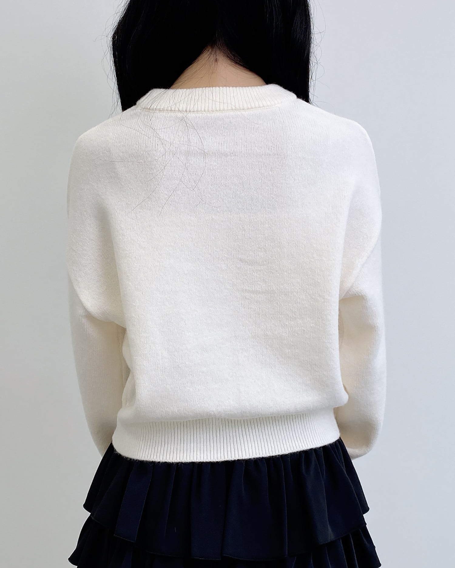 クルーネックなのでシャツやブラウスを合わせたレイヤードスタイルも◎