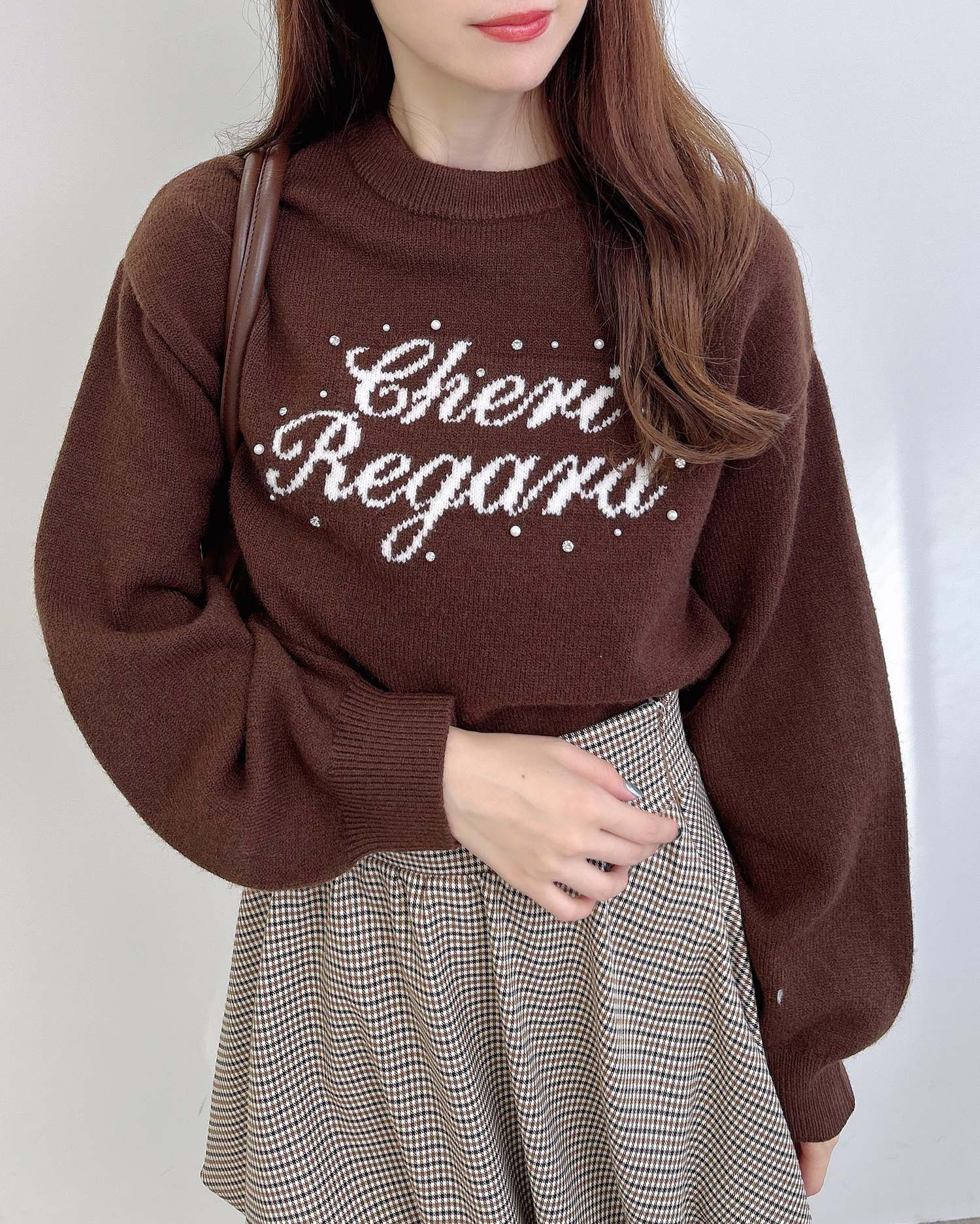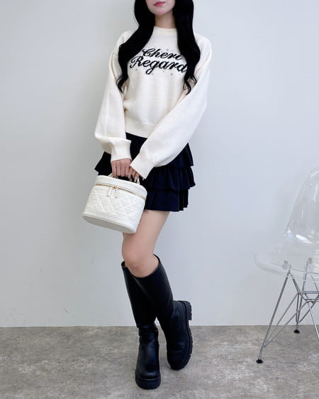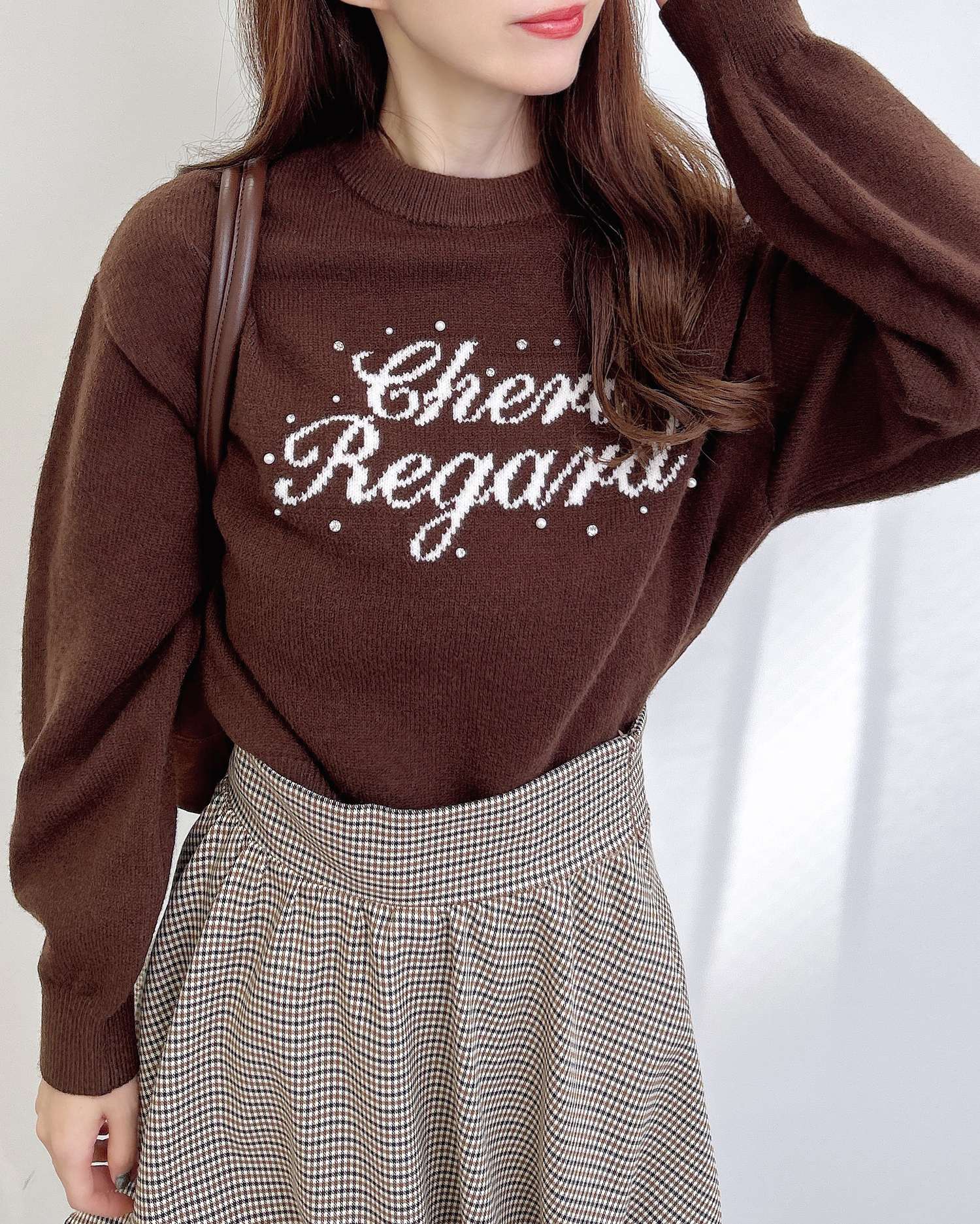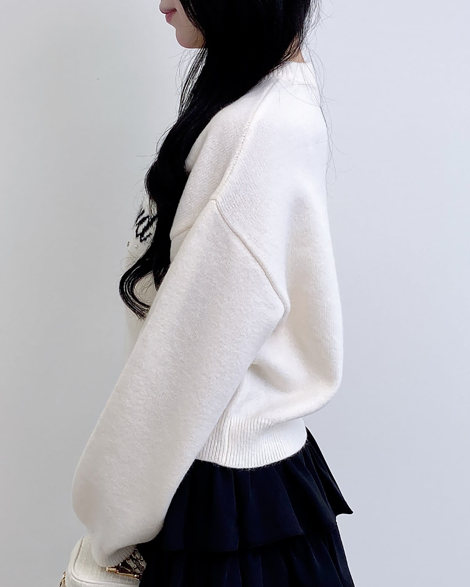 クルーネックなのでシャツやブラウスを合わせたレイヤードスタイルも◎