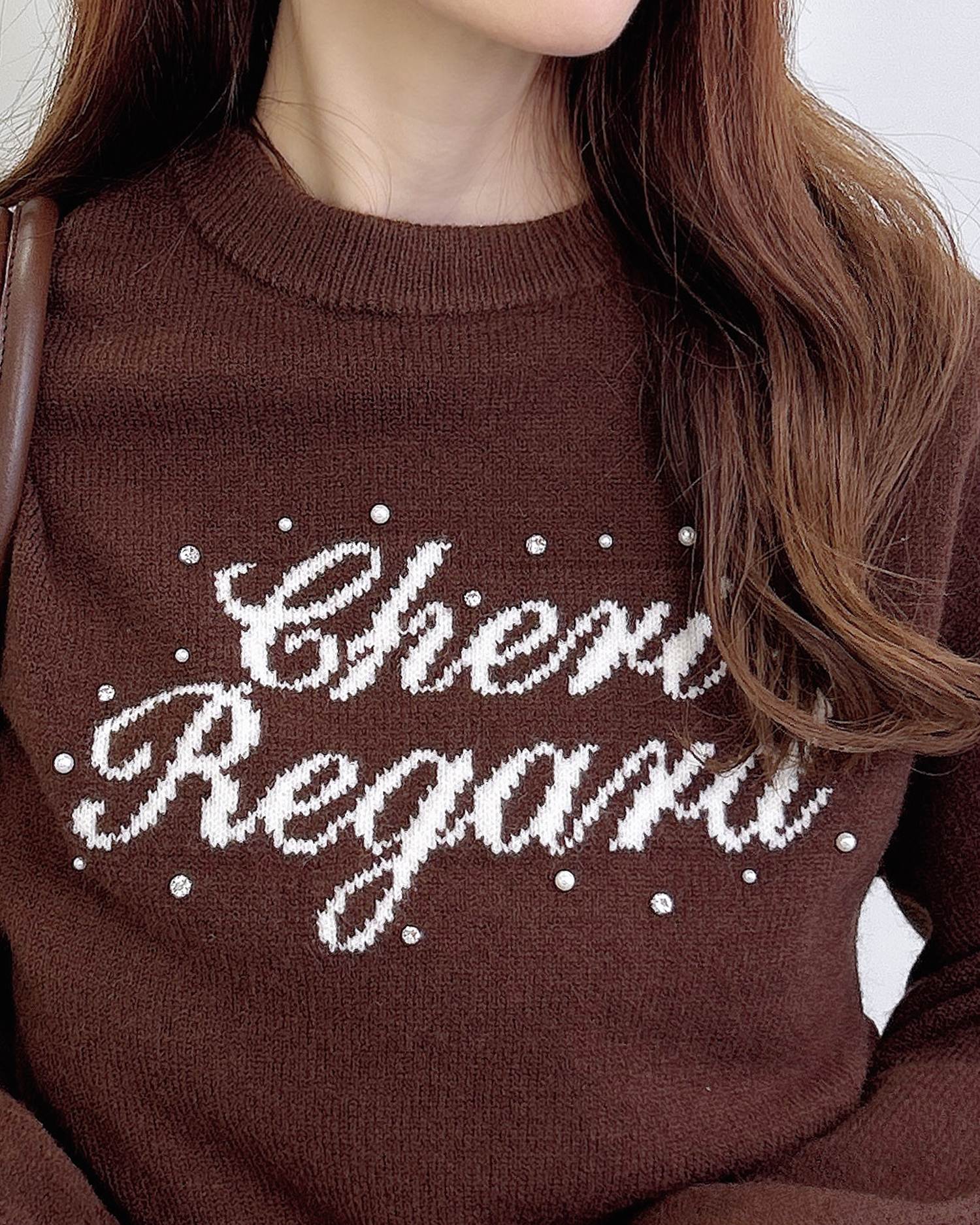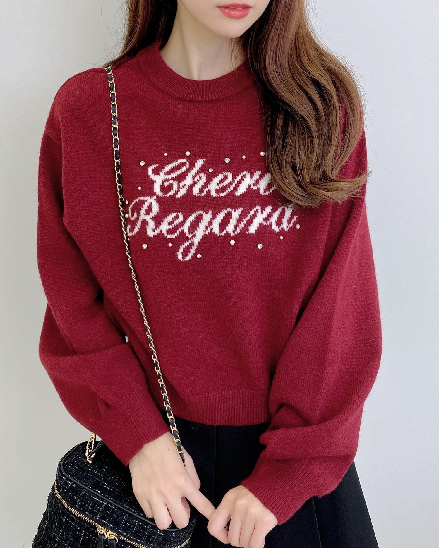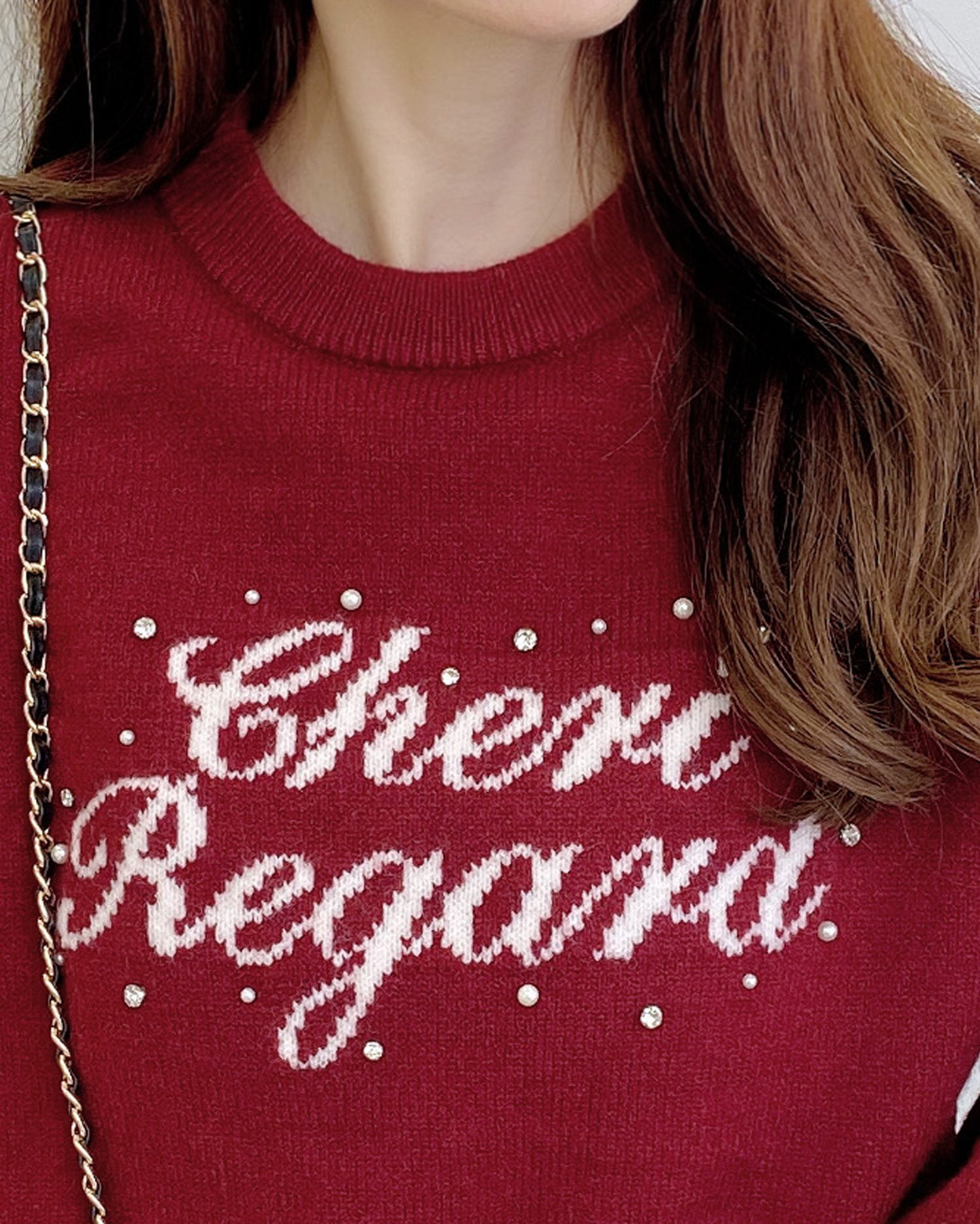 【フロントにあしらったパールビジュー&ラインストーンが華やか】