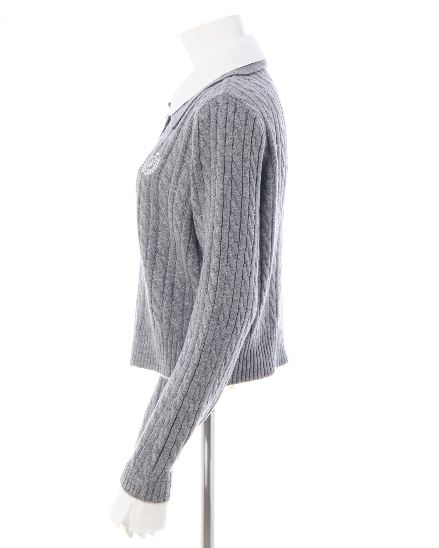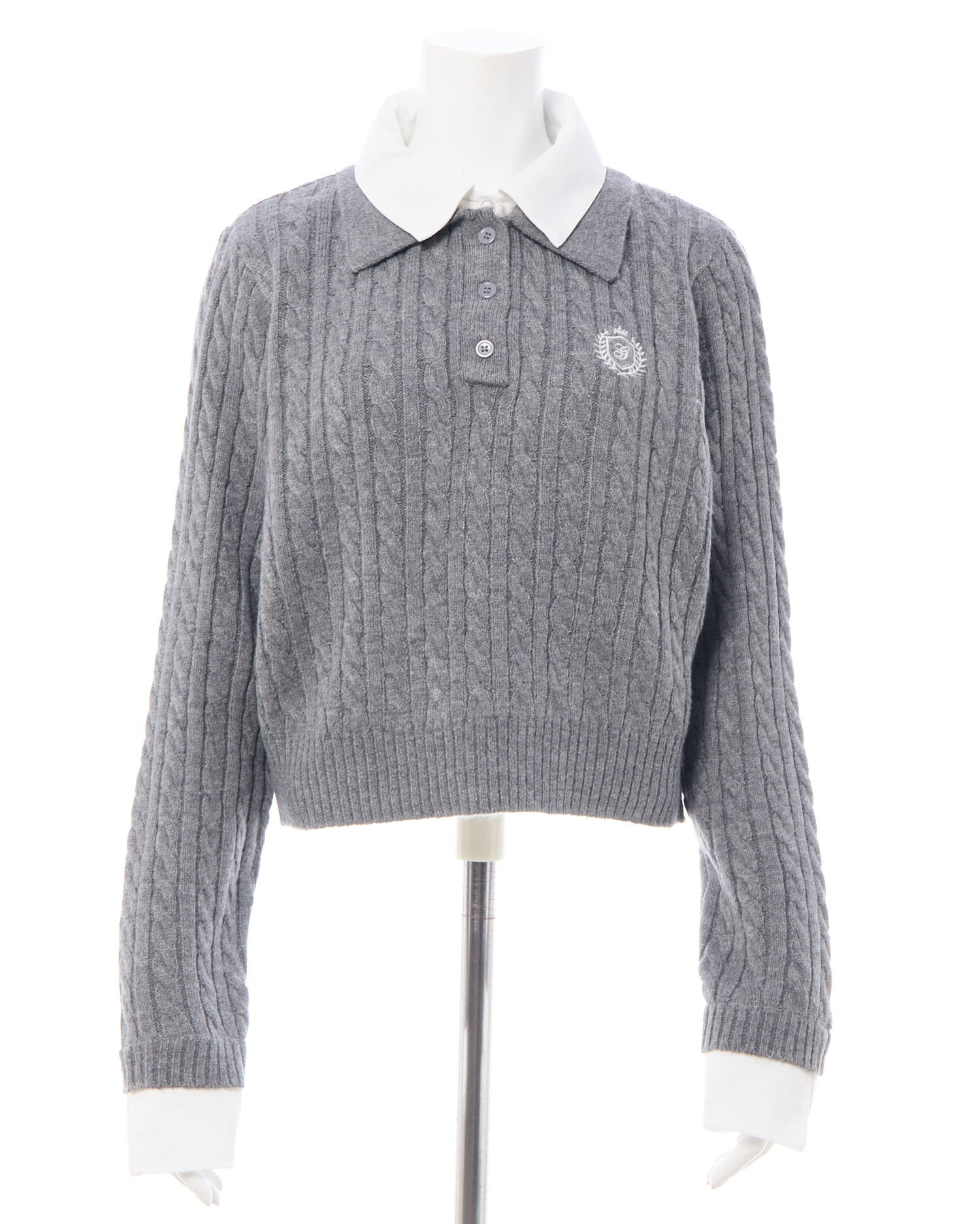 • INGNI(イング) ダブルカラーケーブルポロニット グレー/オフホワイト