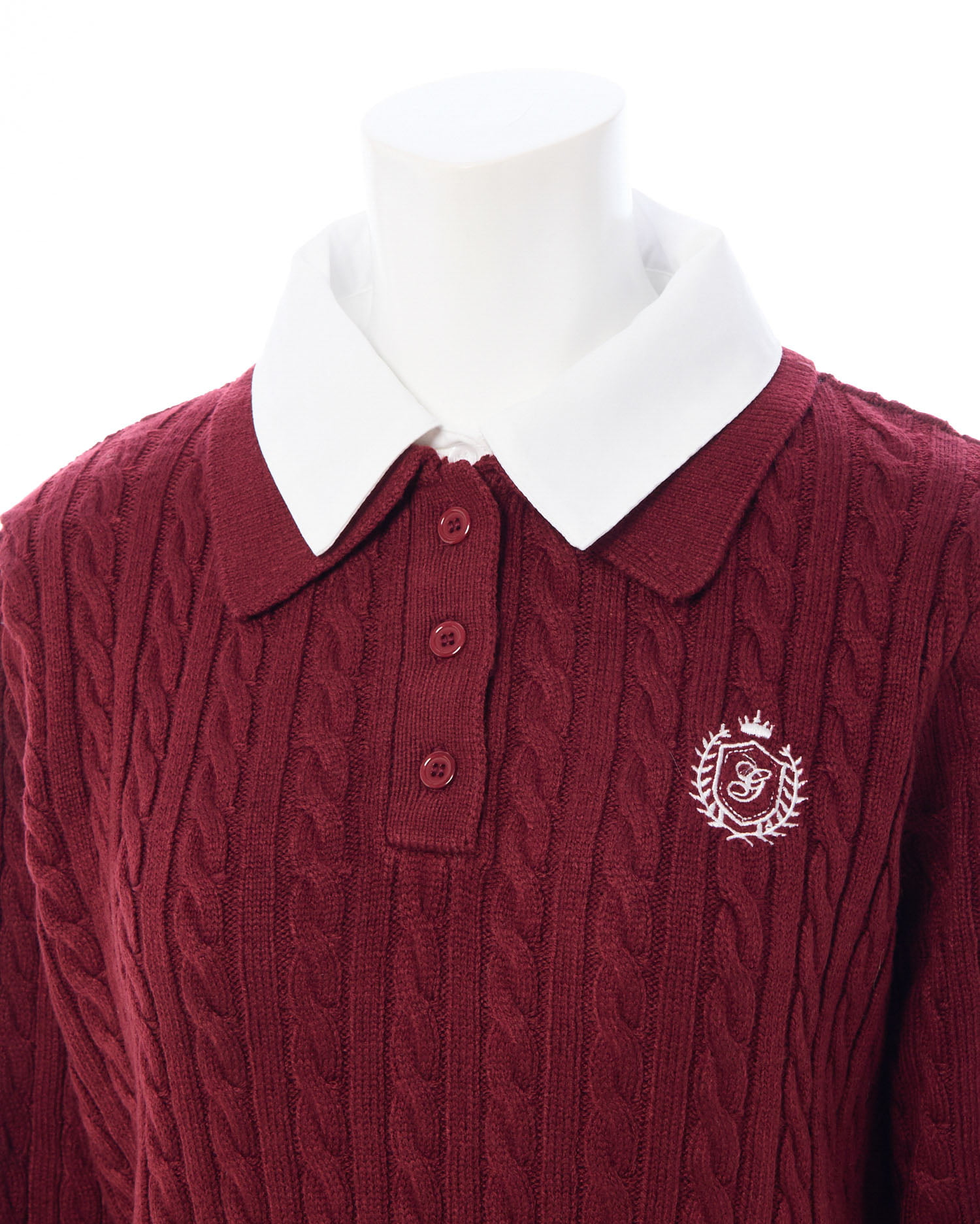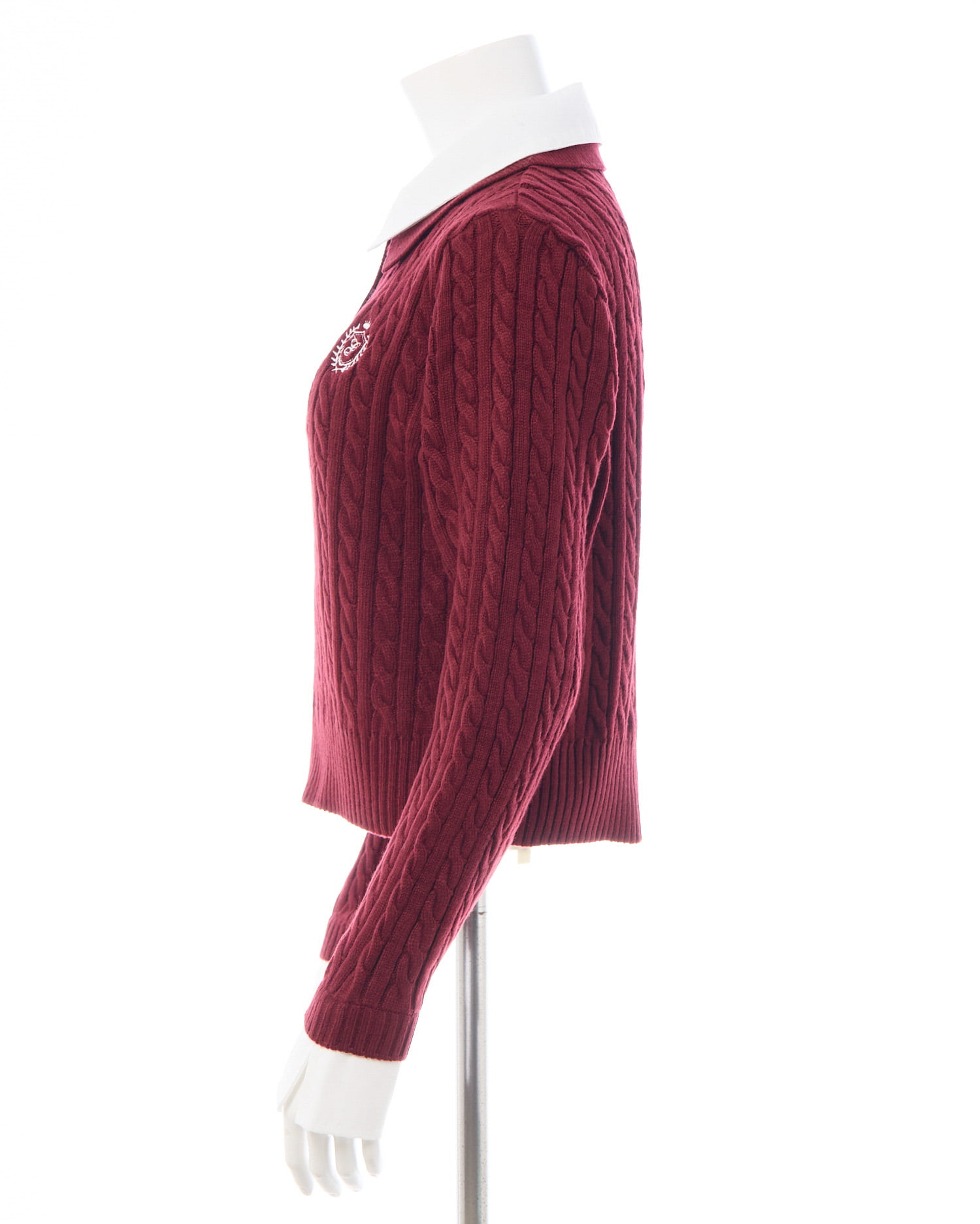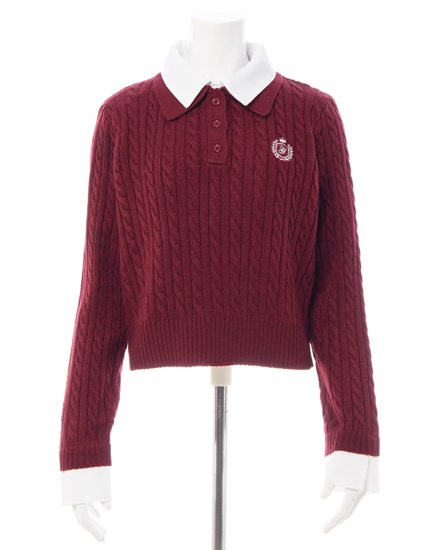 • INGNI(イング) ダブルカラーケーブルポロニット ボルドー/オフホワイト