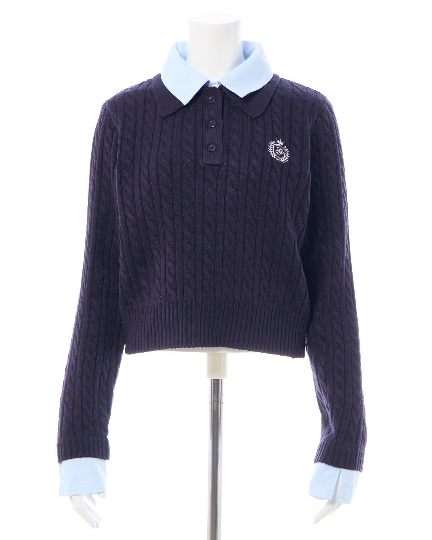 • INGNI(イング) ダブルカラーケーブルポロニット コン/ブルー