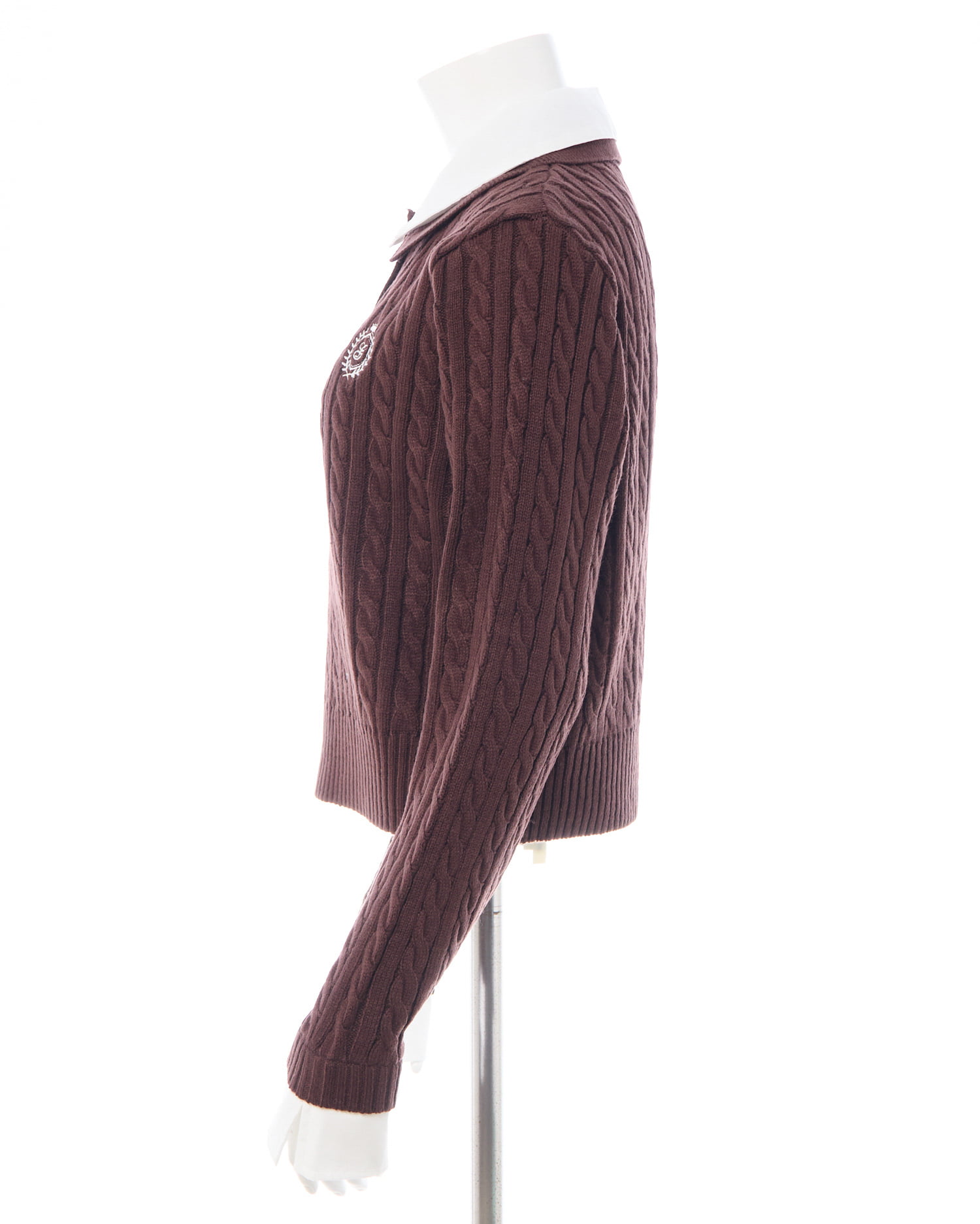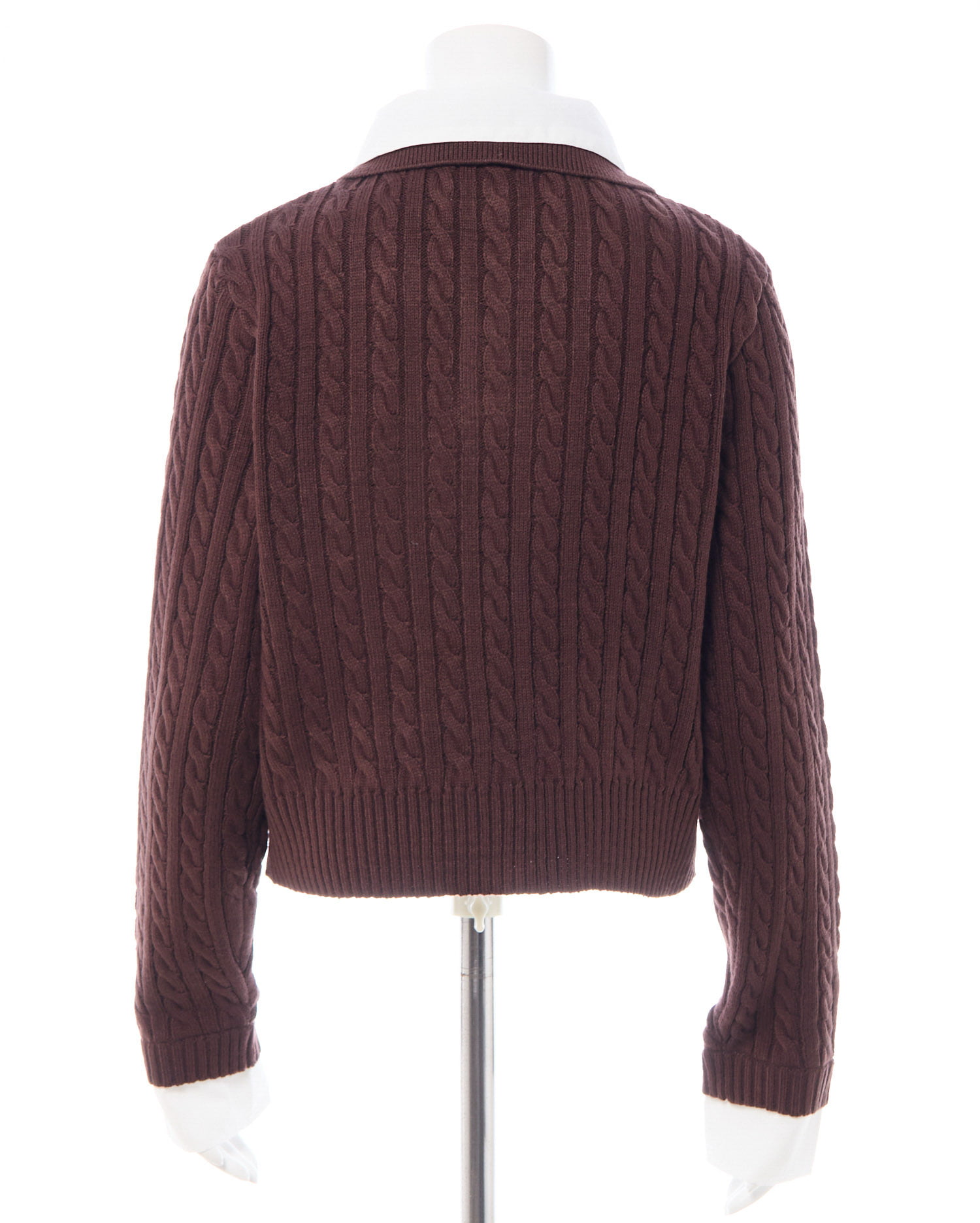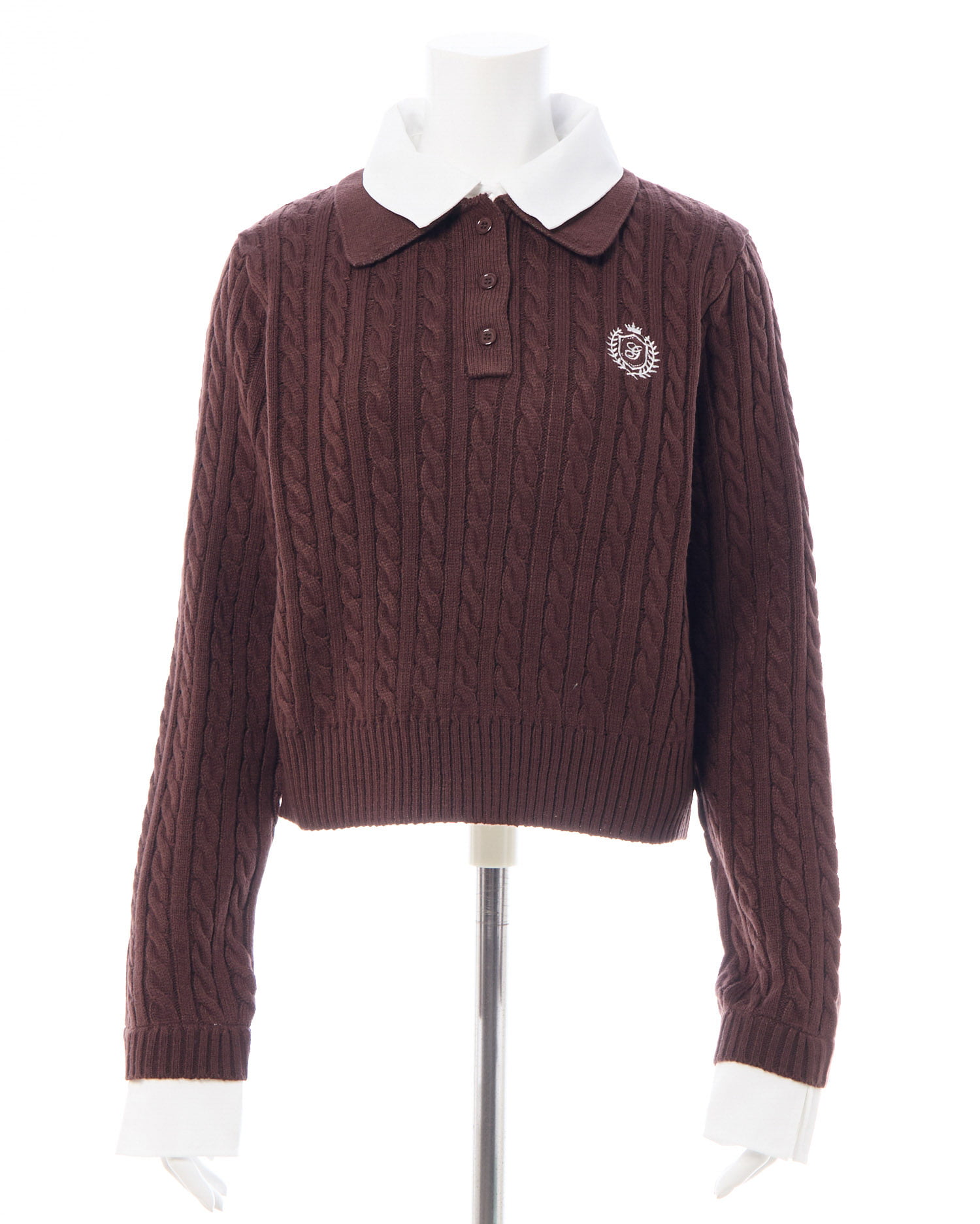 • INGNI(イング) ダブルカラーケーブルポロニット ブラウン/オフホワイト