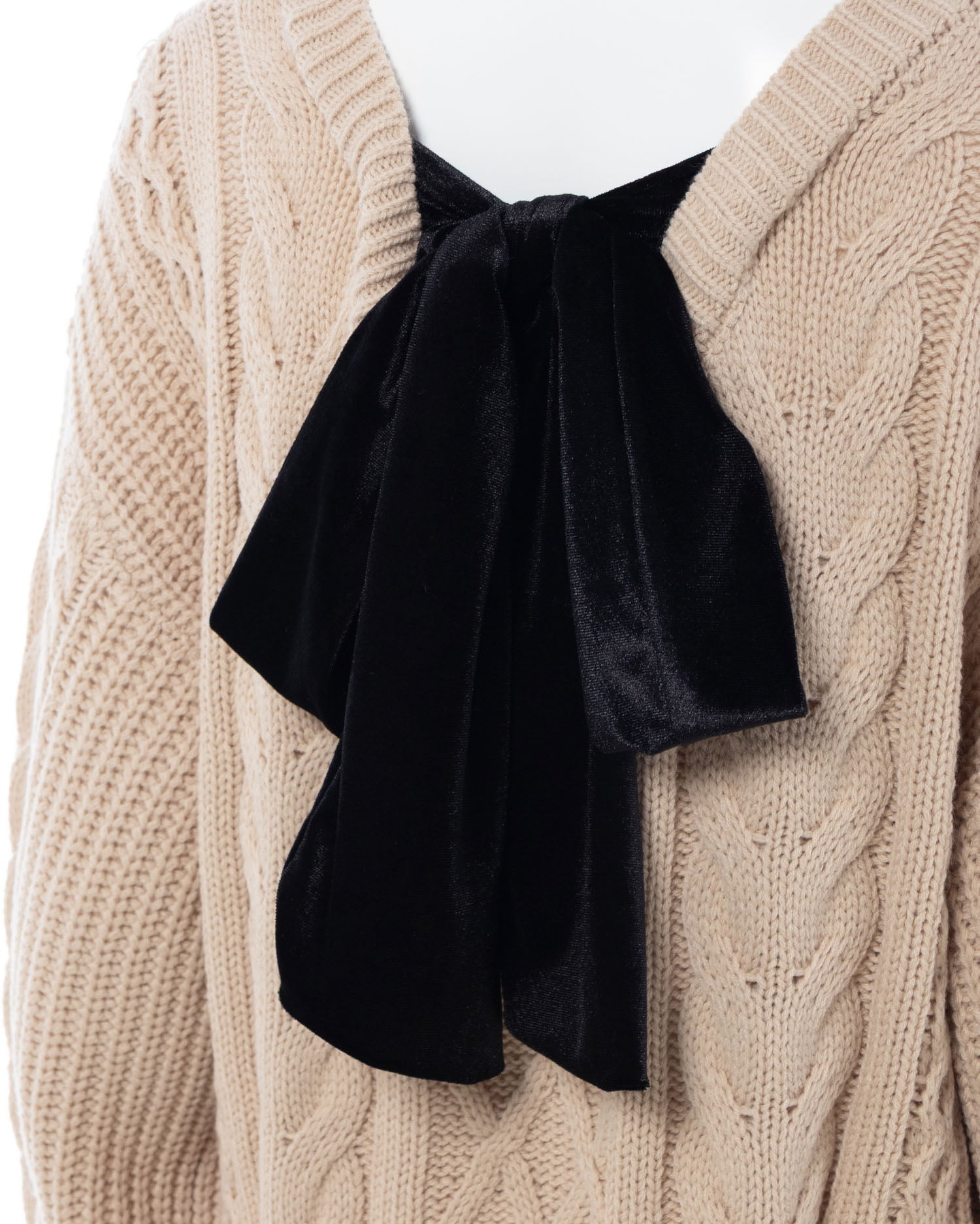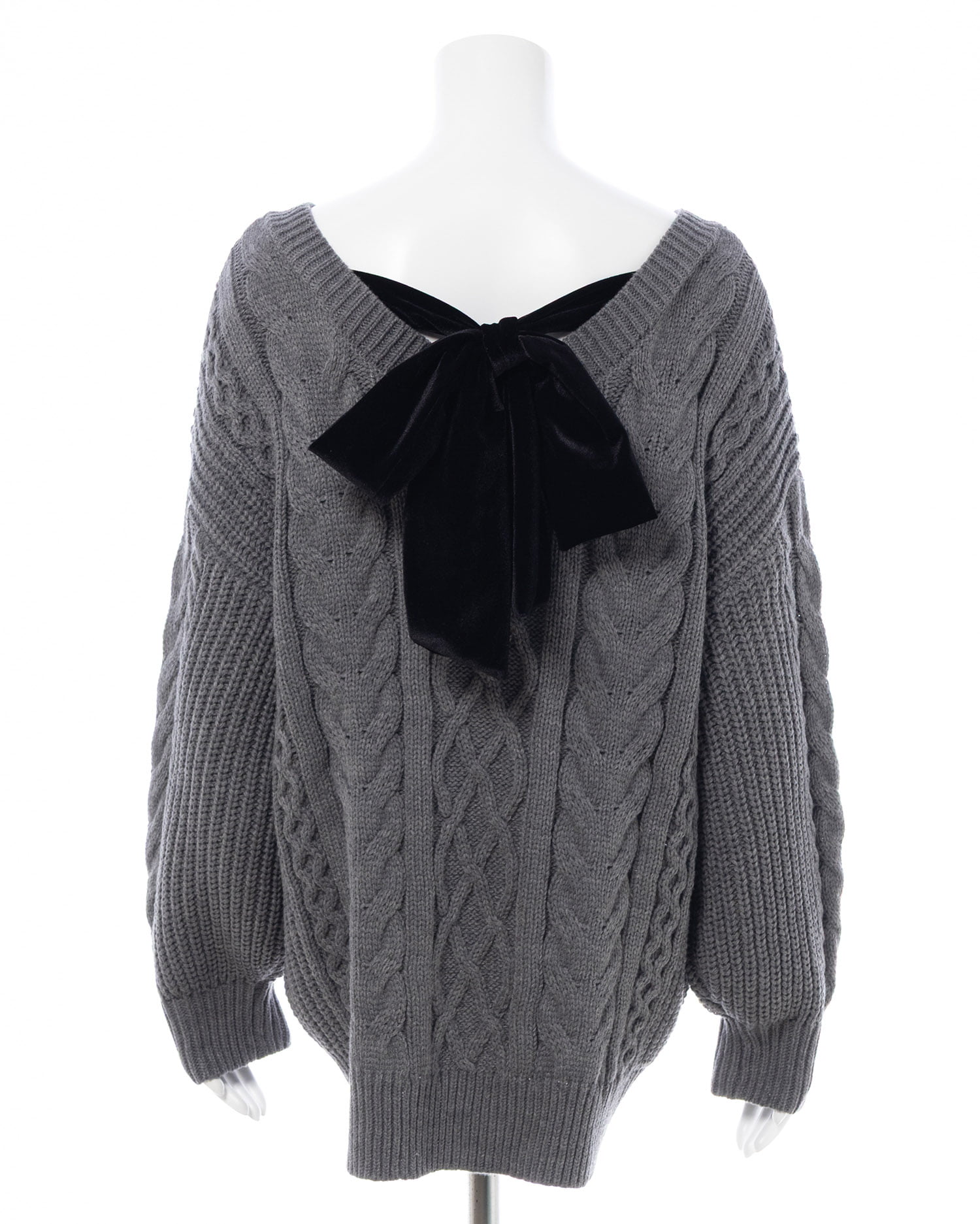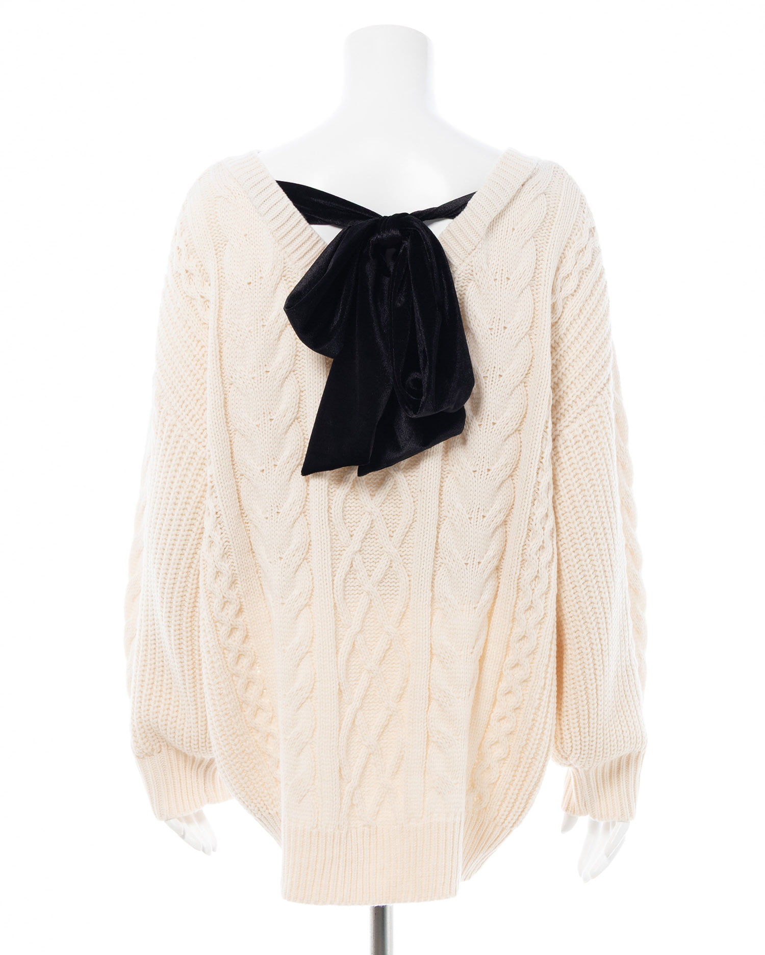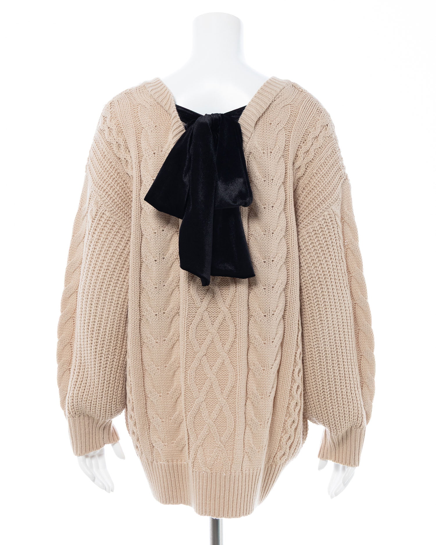 【12/16までの限定価格】バックベロアリボンケーブルチュニックニット